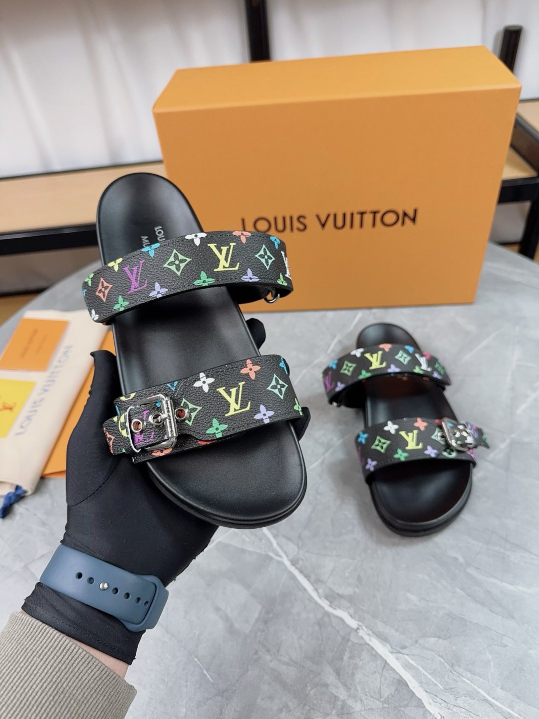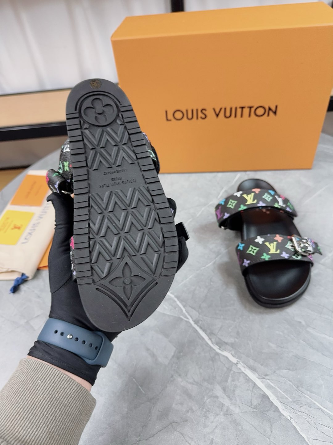 这款鞋子是AAAAA 1:1 质量 (非常棒). 使用了和原版一模一样的材料. 商标部分也保持了和路易威登/Louis Vuitton一样. 图片拍摄是实物鞋子拍摄, 您所收到的实物保证和我们图片一模一样.