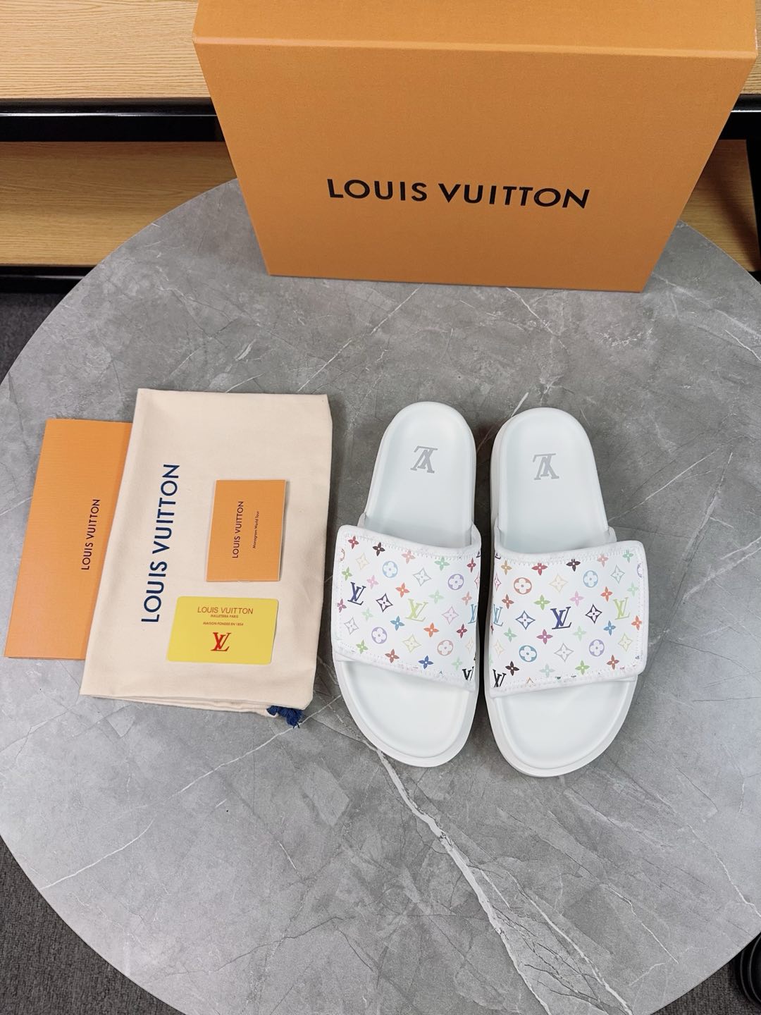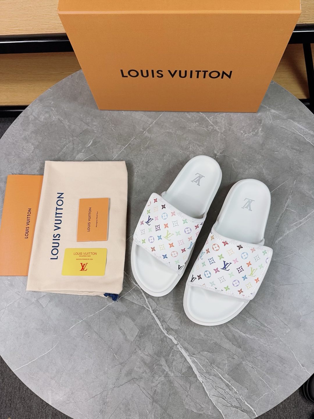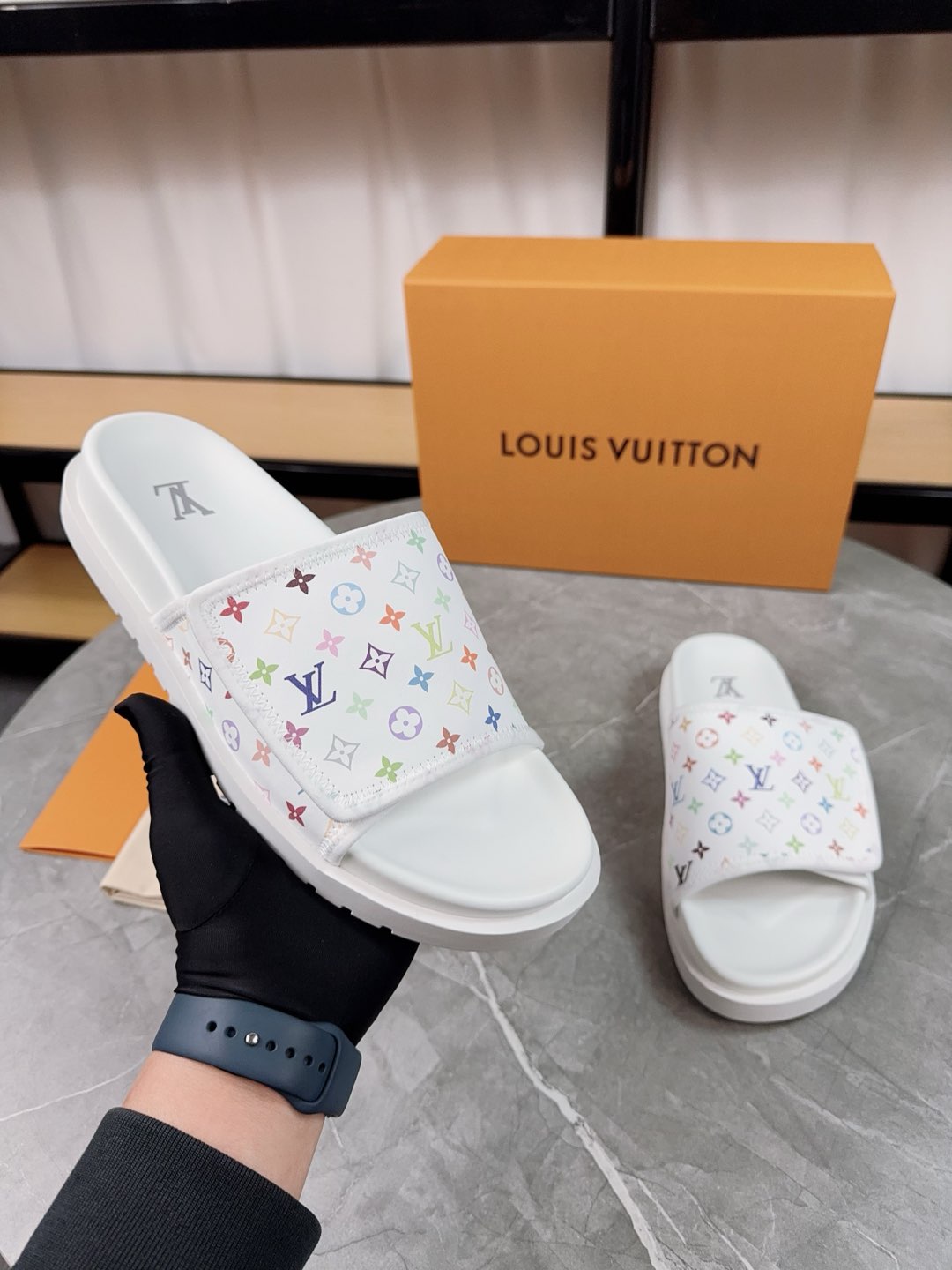 这款鞋子是AAAAA 1:1 质量 (非常棒). 使用了和原版一模一样的材料. 商标部分也保持了和路易威登/Louis Vuitton一样. 图片拍摄是实物鞋子拍摄, 您所收到的实物保证和我们图片一模一样.