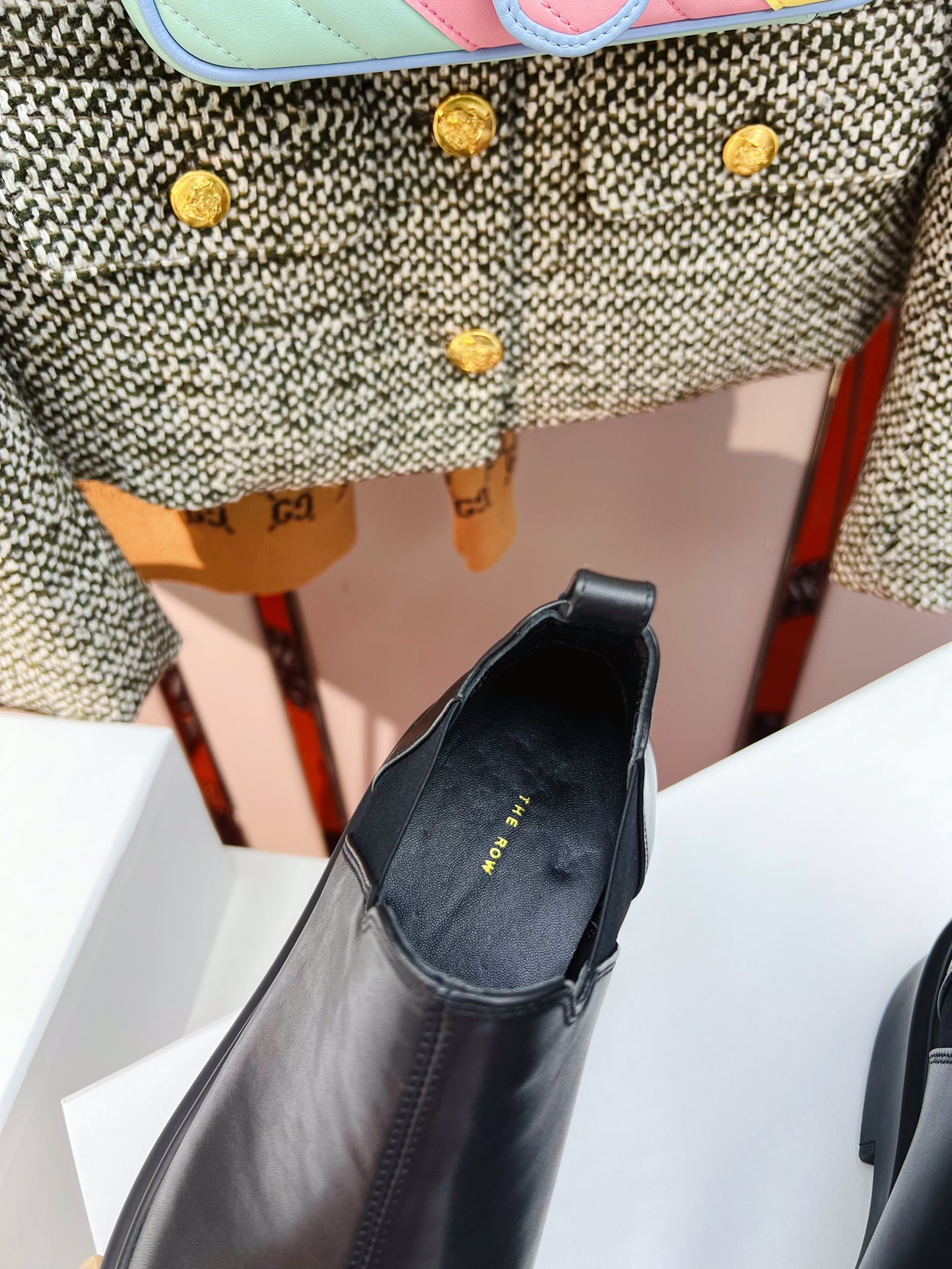 这款鞋子是AAAAA 1:1 质量 (非常棒). 使用了和原版一模一样的材料. 商标部分也保持了和The Row一样. 图片拍摄是实物鞋子拍摄, 您所收到的实物保证和我们图片一模一样.