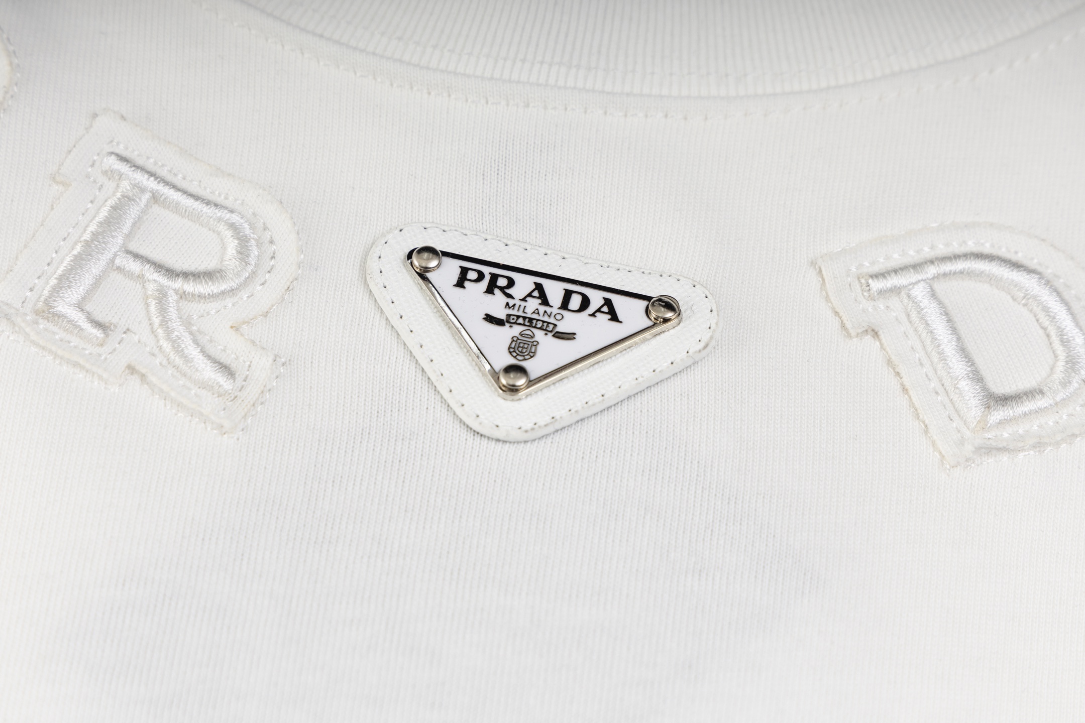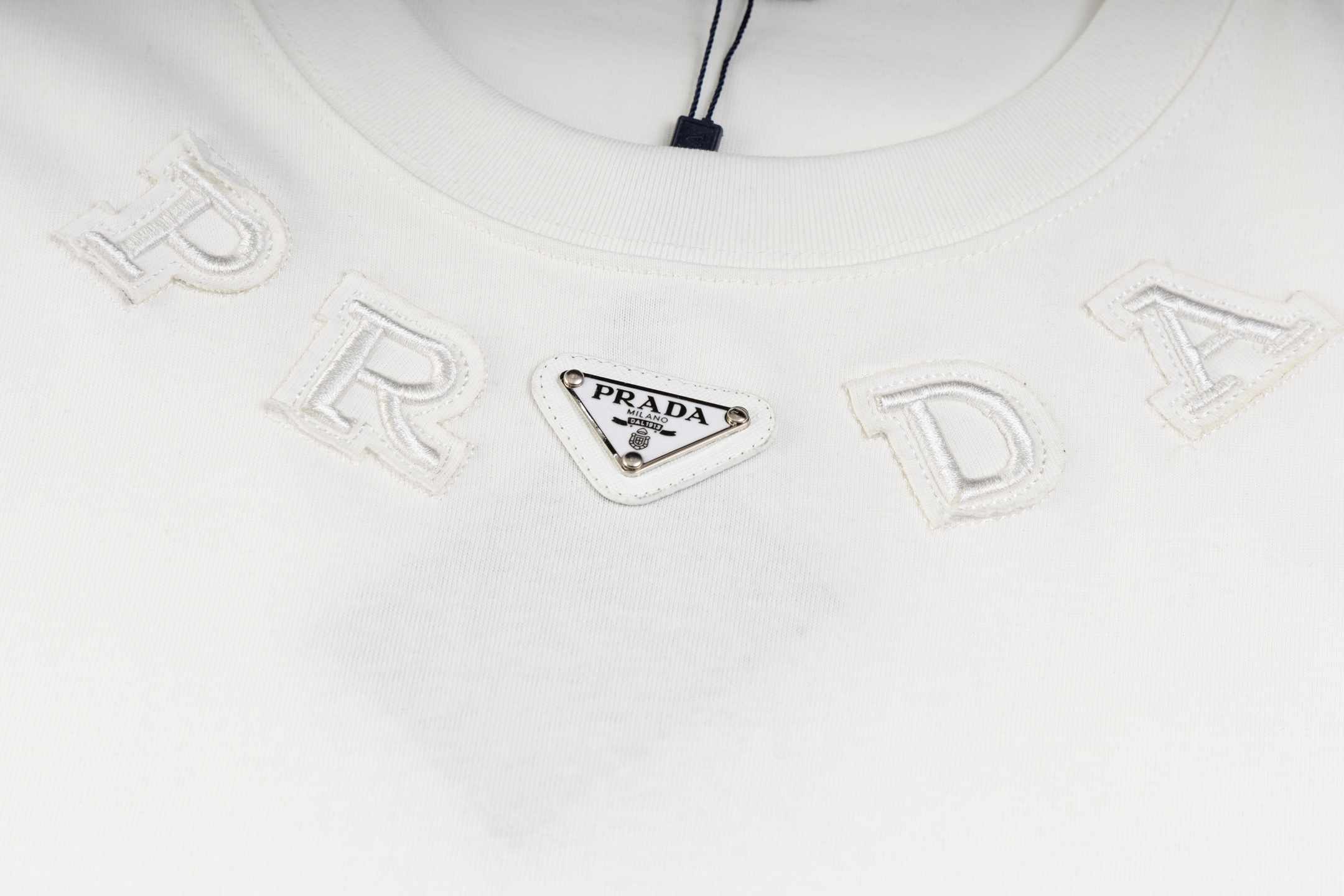 这款衣服是AAAAA 1:1 质量 (非常棒). 使用了和原版一模一样的材料. 商标部分也保持了和普拉达/Prada一样. 图片拍摄是实物衣服拍摄, 您所收到的实物保证和我们图片一模一样.