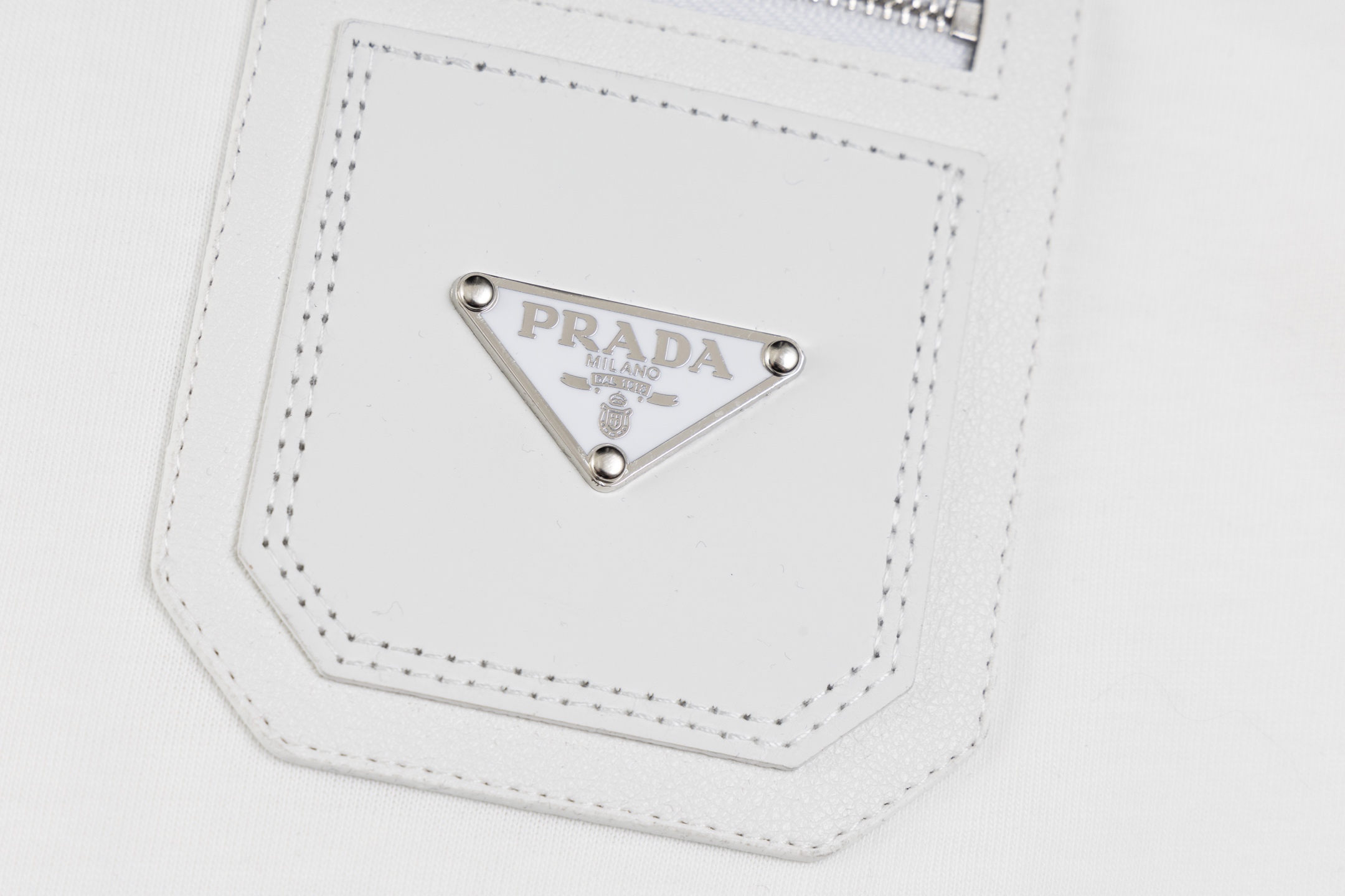 这款衣服是AAAAA 1:1 质量 (非常棒). 使用了和原版一模一样的材料. 商标部分也保持了和普拉达/Prada一样. 图片拍摄是实物衣服拍摄, 您所收到的实物保证和我们图片一模一样.
