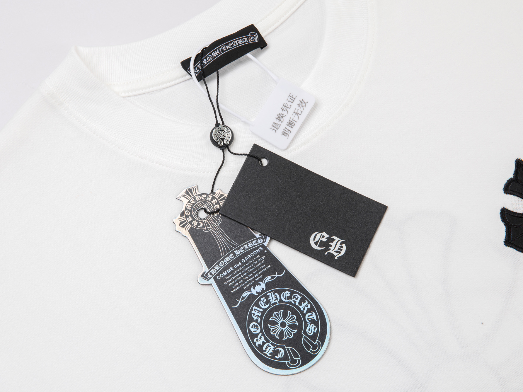 这款衣服是AAAAA 1:1 质量 (非常棒). 使用了和原版一模一样的材料. 商标部分也保持了和克罗心/Chrome Hearts一样. 图片拍摄是实物衣服拍摄, 您所收到的实物保证和我们图片一模一样.