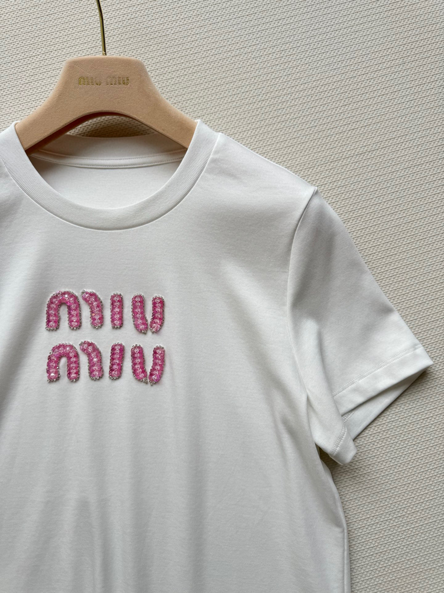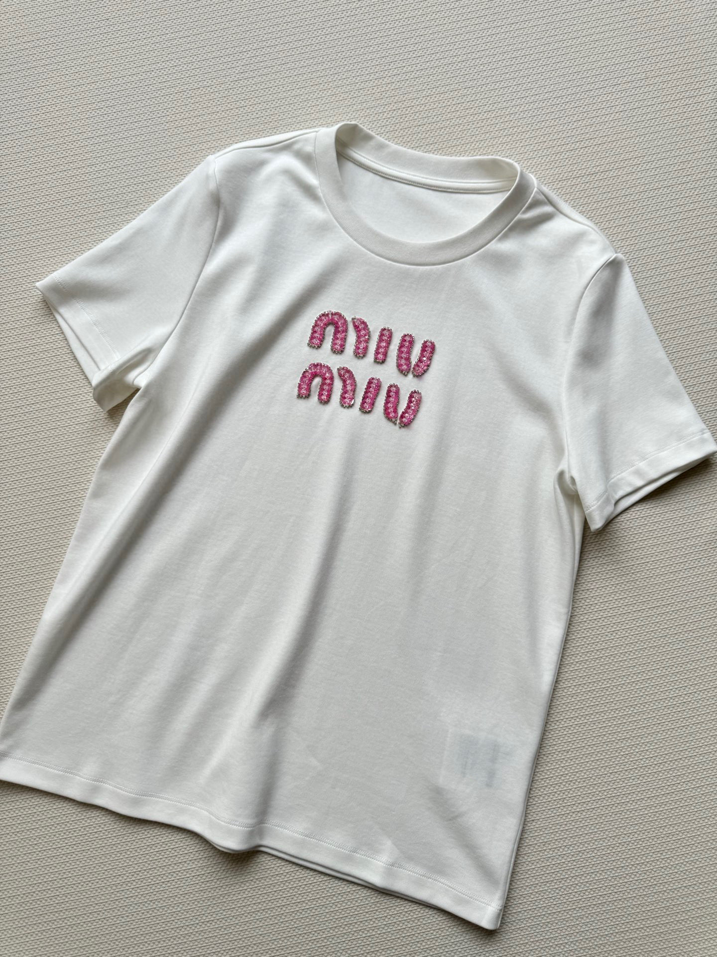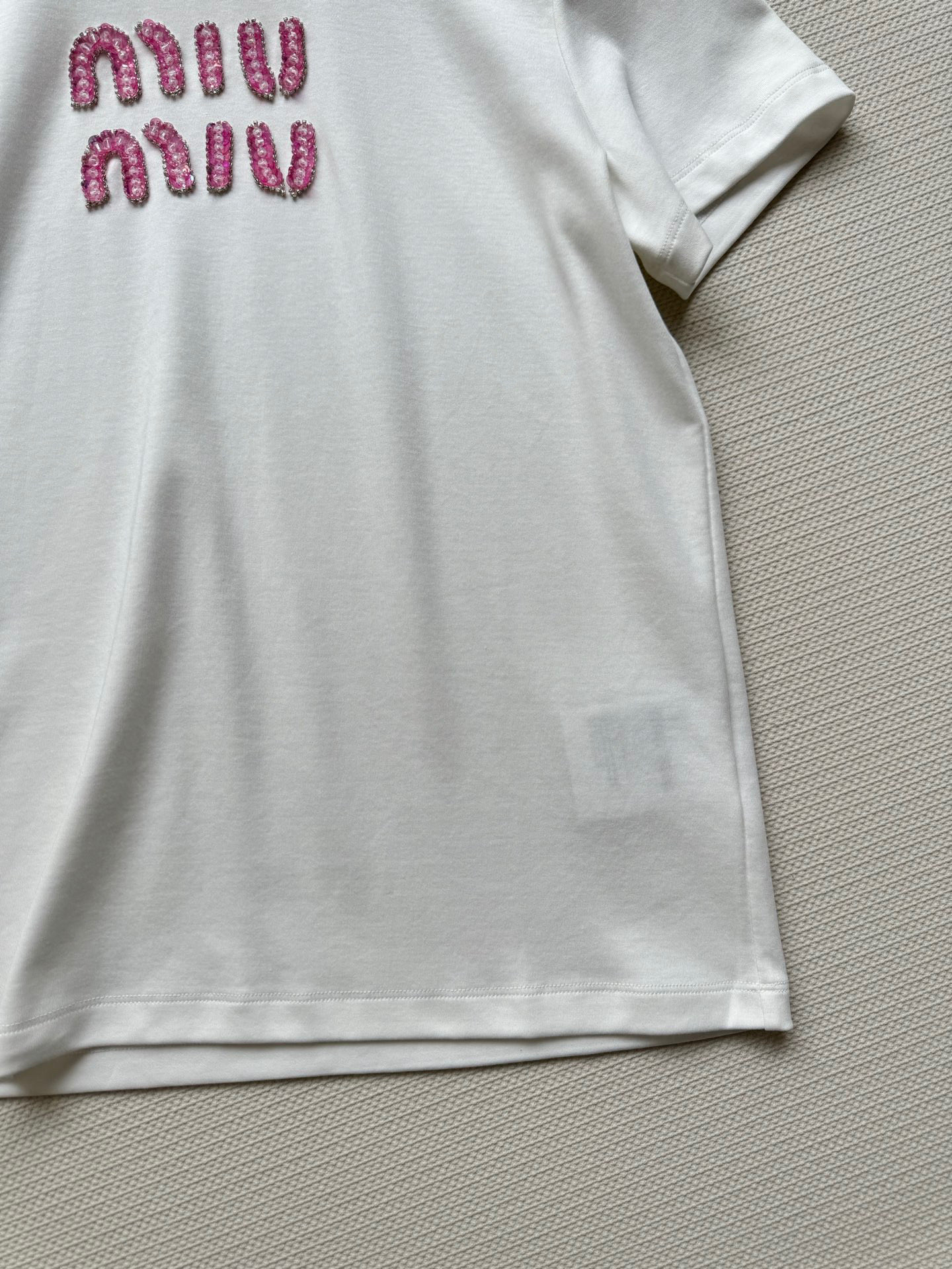 这款衣服是AAAAA 1:1 质量 (非常棒). 使用了和原版一模一样的材料. 商标部分也保持了和缪缪/Miu Miu一样. 图片拍摄是实物衣服拍摄, 您所收到的实物保证和我们图片一模一样.