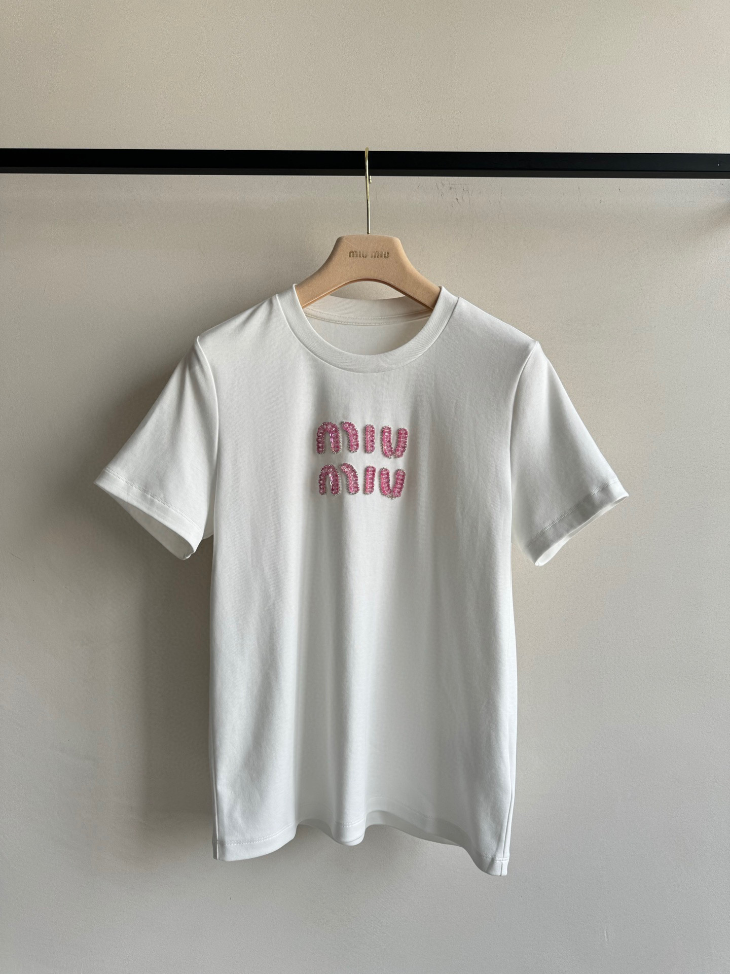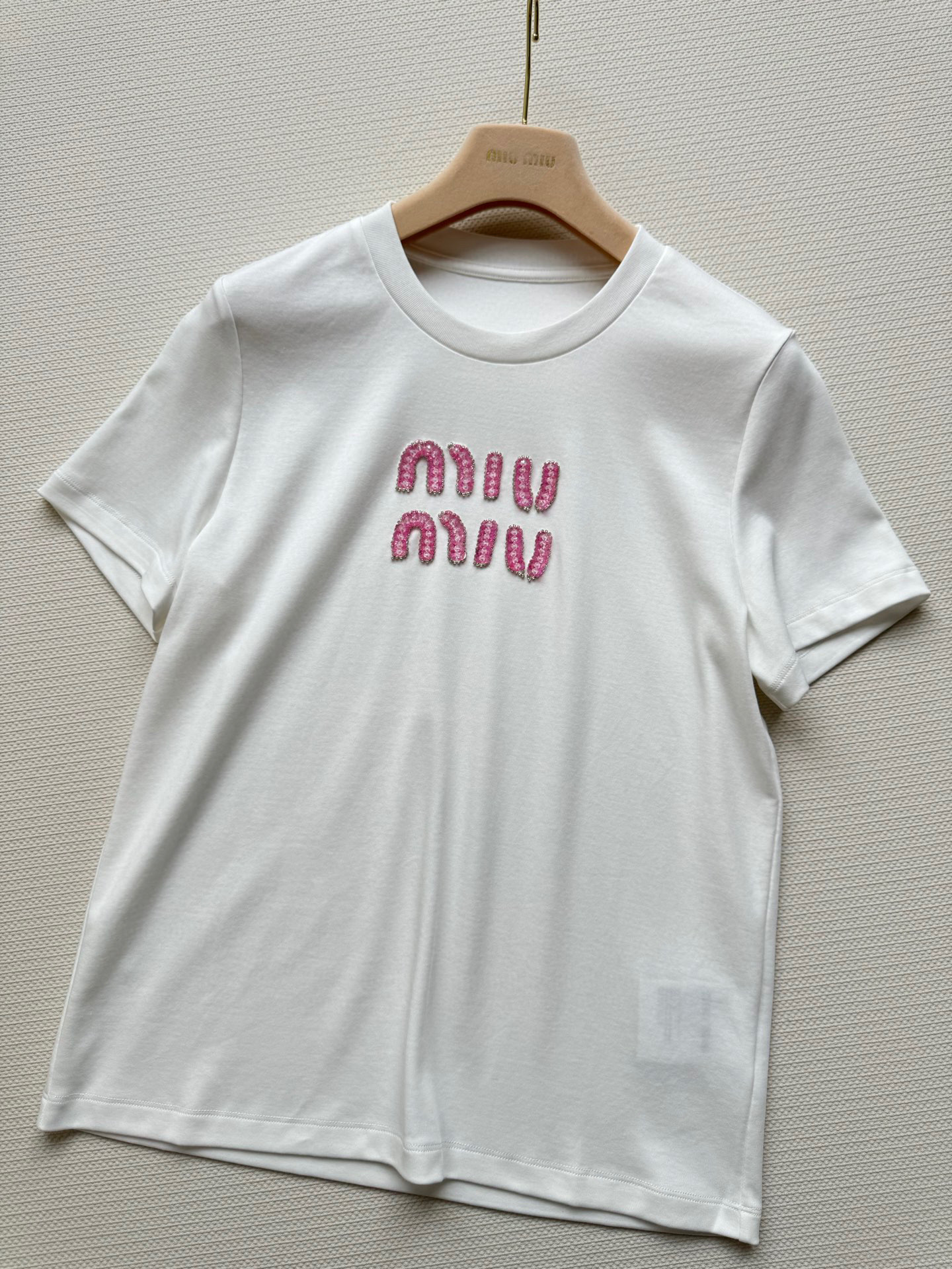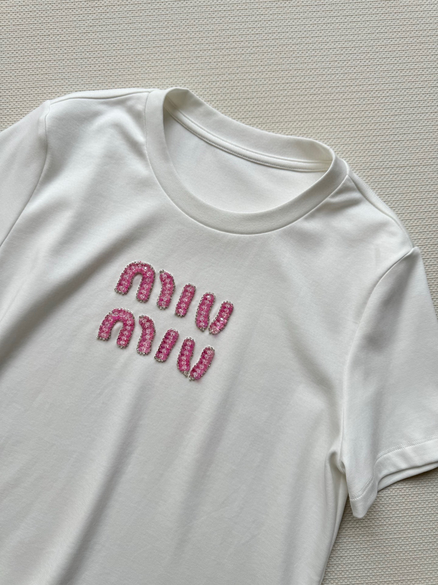 这款衣服是AAAAA 1:1 质量 (非常棒). 使用了和原版一模一样的材料. 商标部分也保持了和缪缪/Miu Miu一样. 图片拍摄是实物衣服拍摄, 您所收到的实物保证和我们图片一模一样.