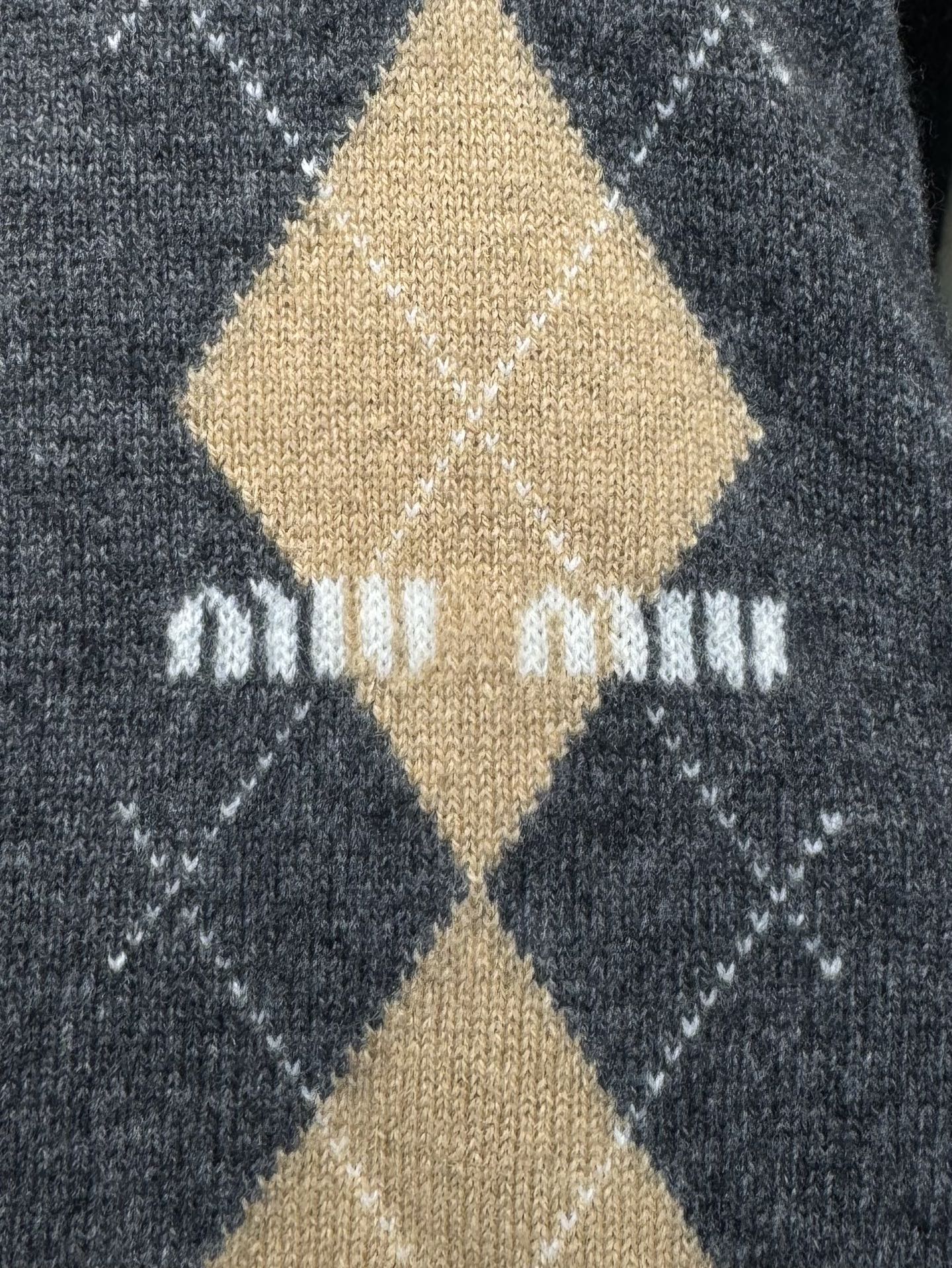 这款衣服是AAAAA 1:1 质量 (非常棒). 使用了和原版一模一样的材料. 商标部分也保持了和缪缪/Miu Miu一样. 图片拍摄是实物衣服拍摄, 您所收到的实物保证和我们图片一模一样.