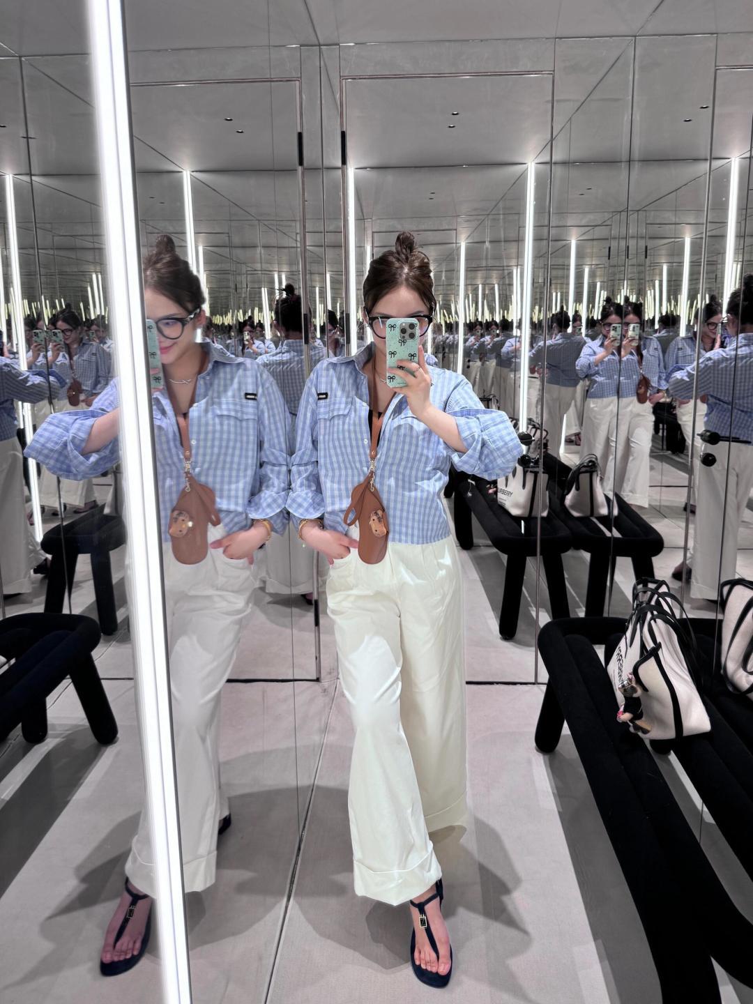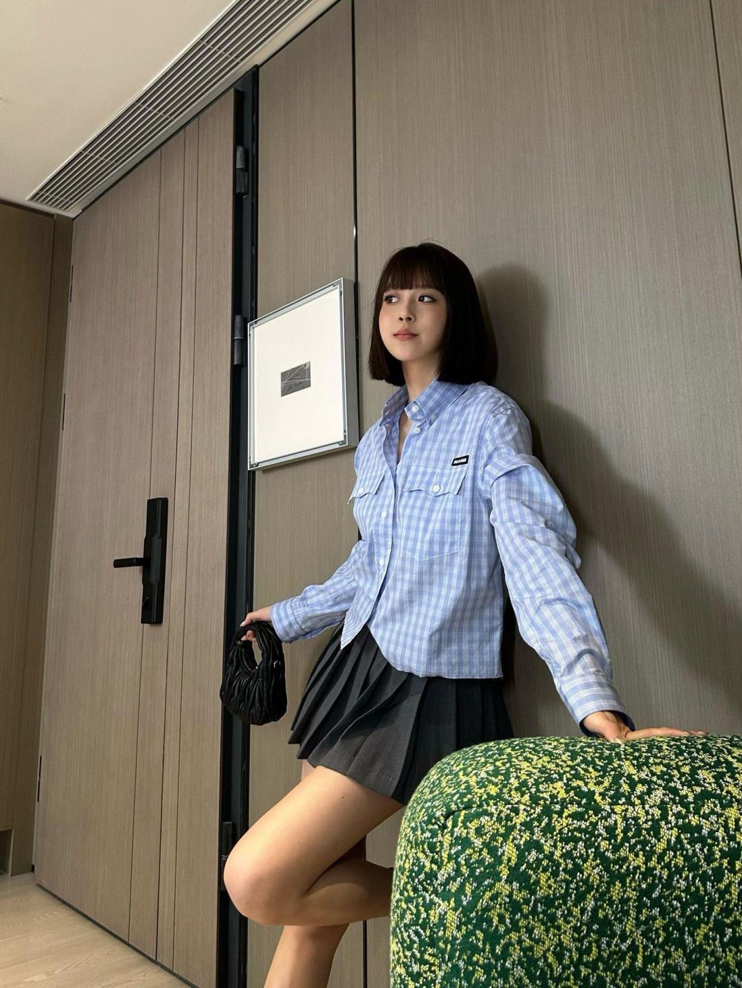 这款衣服是AAAAA 1:1 质量 (非常棒). 使用了和原版一模一样的材料. 商标部分也保持了和缪缪/Miu Miu一样. 图片拍摄是实物衣服拍摄, 您所收到的实物保证和我们图片一模一样.