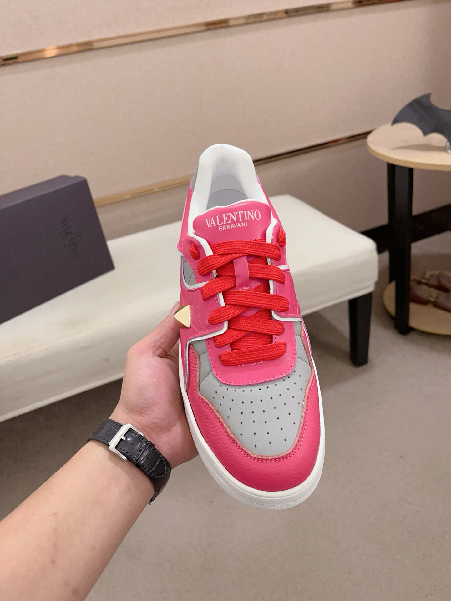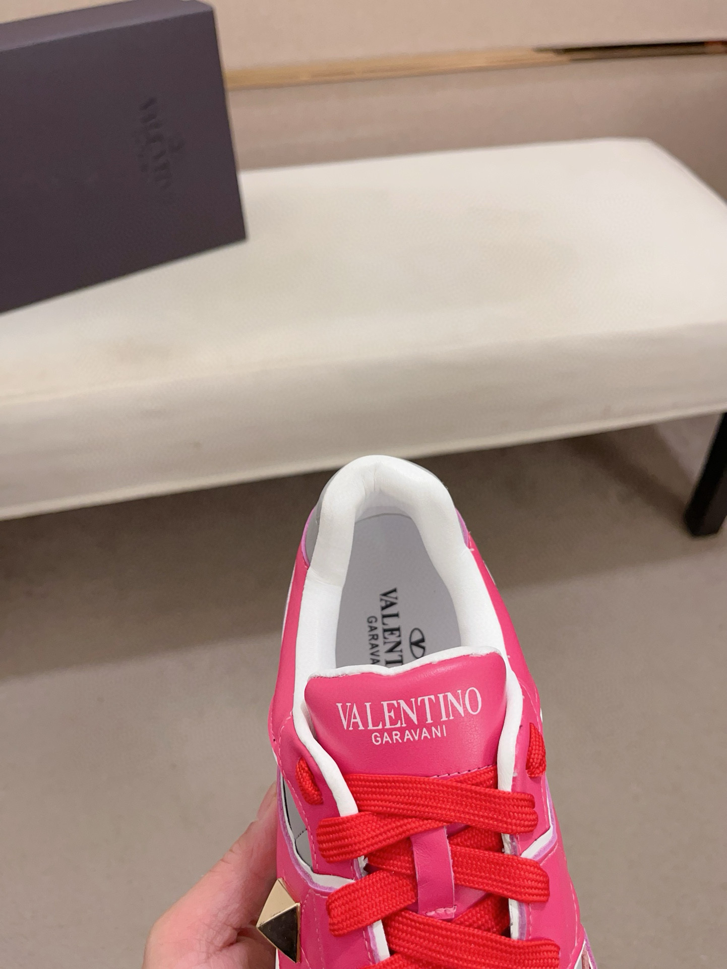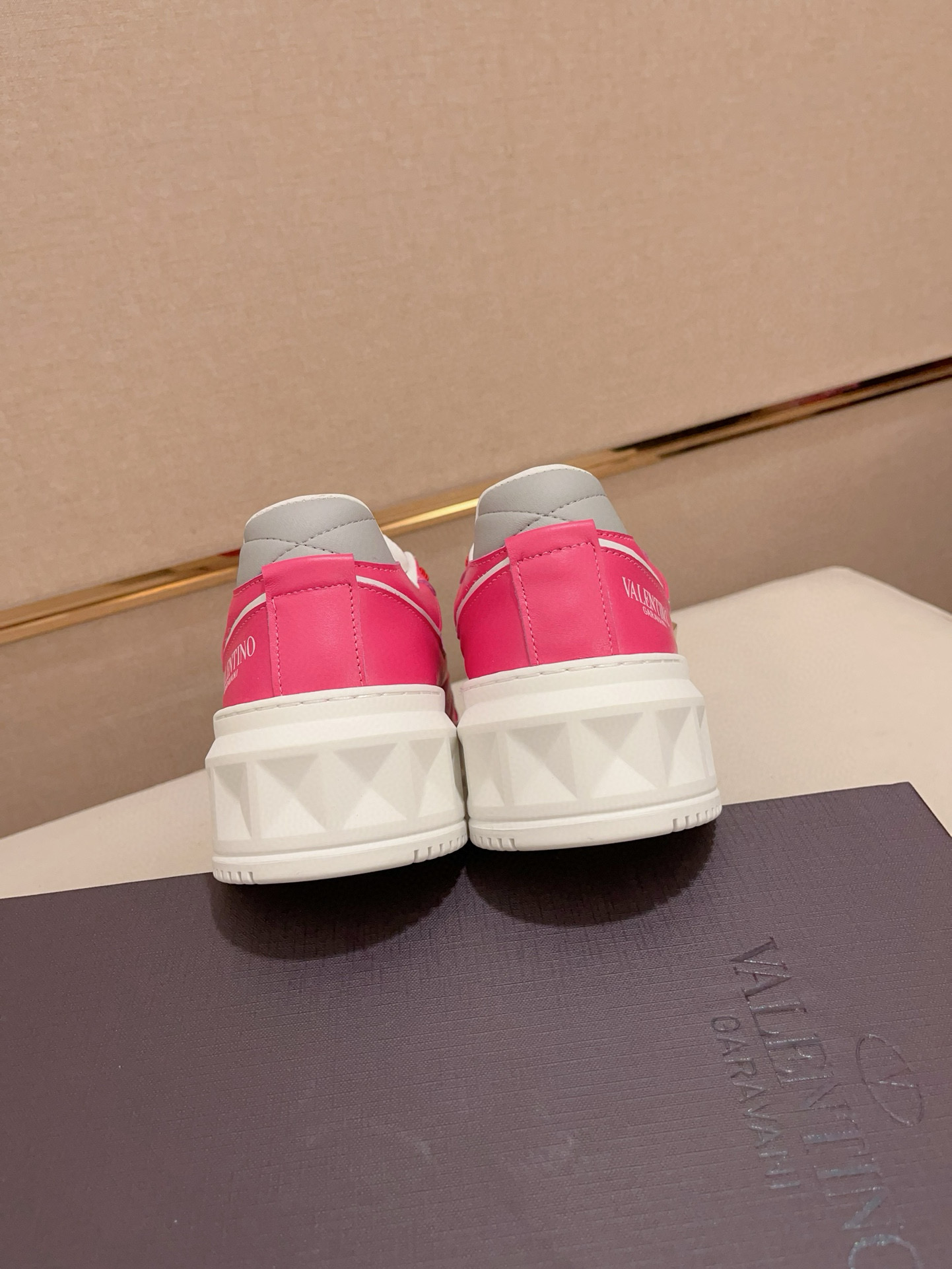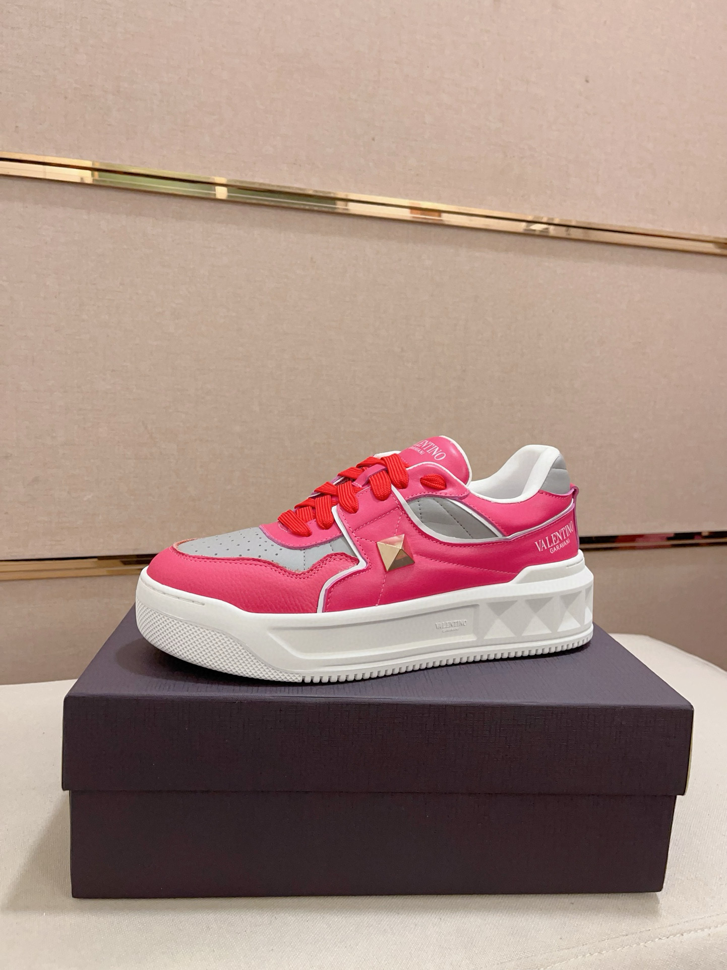 这款鞋子是AAAAA 1:1 质量 (非常棒). 使用了和原版一模一样的材料. 商标部分也保持了和华伦天奴/Valentino一样. 图片拍摄是实物鞋子拍摄, 您所收到的实物保证和我们图片一模一样.