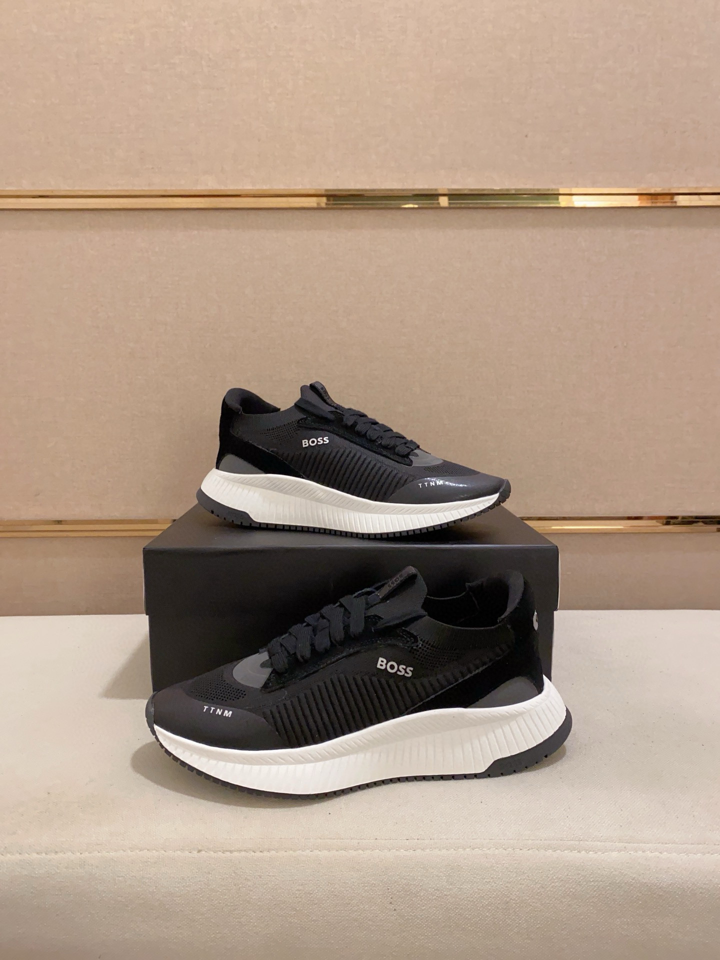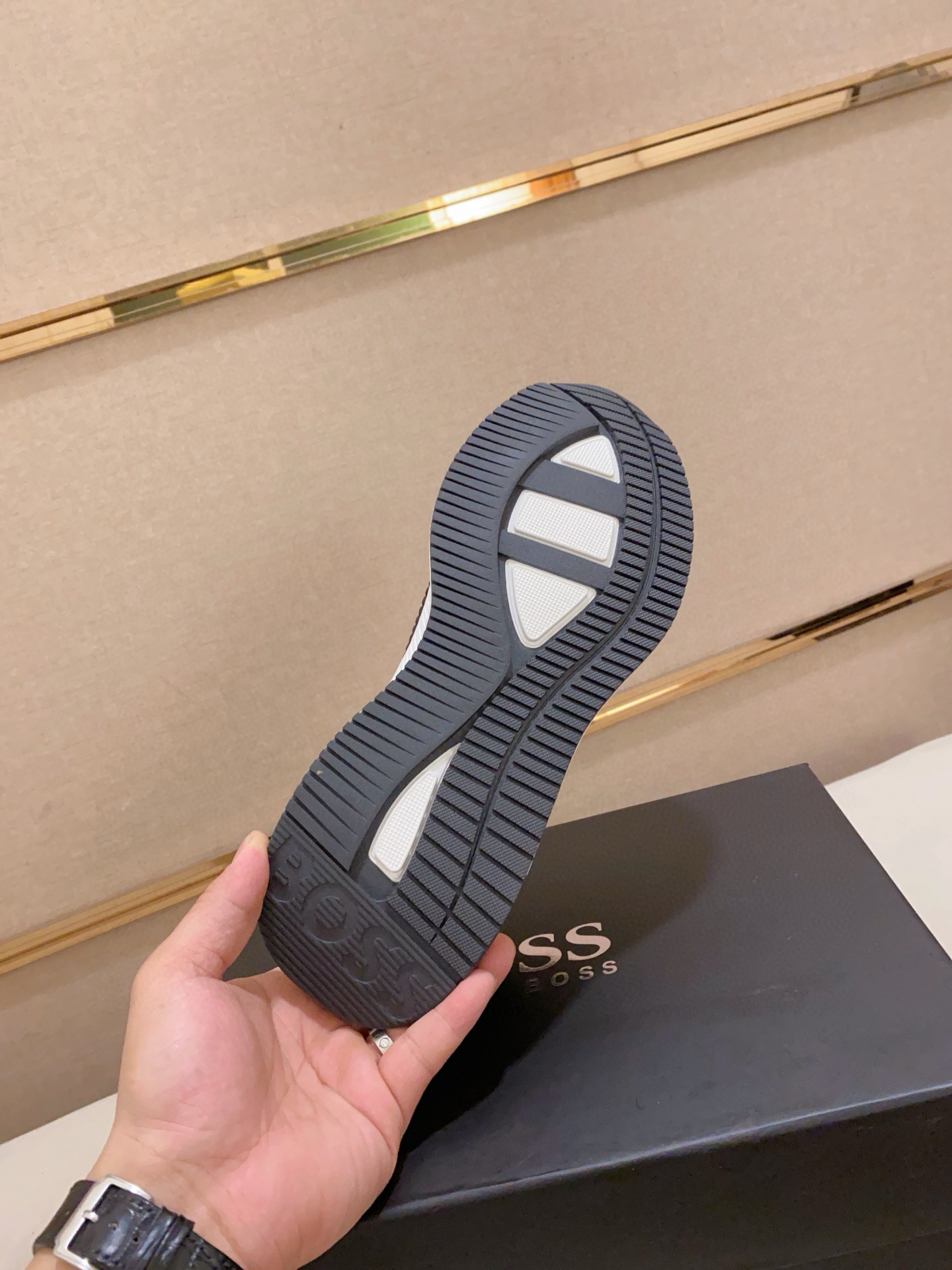 这款鞋子是AAAAA 1:1 质量 (非常棒). 使用了和原版一模一样的材料. 商标部分也保持了和BOSS一样. 图片拍摄是实物鞋子拍摄, 您所收到的实物保证和我们图片一模一样.