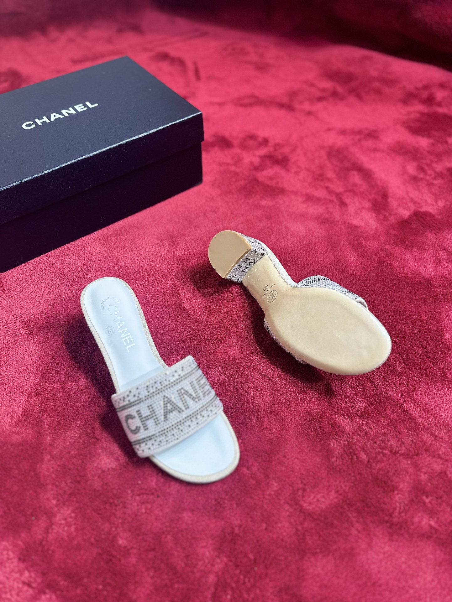 这款鞋子是AAAAA 1:1 质量 (非常棒). 使用了和原版一模一样的材料. 商标部分也保持了和香奈儿/Chanel一样. 图片拍摄是实物鞋子拍摄, 您所收到的实物保证和我们图片一模一样.