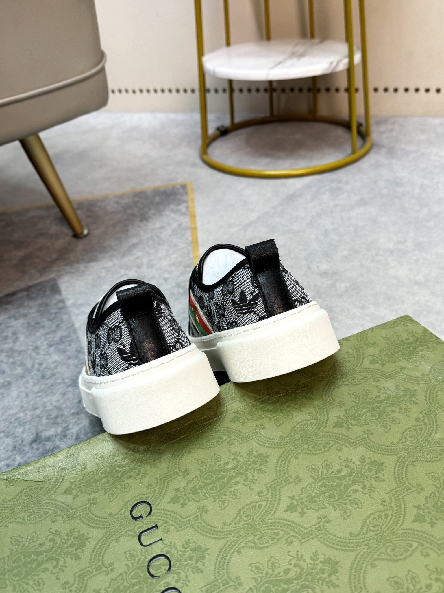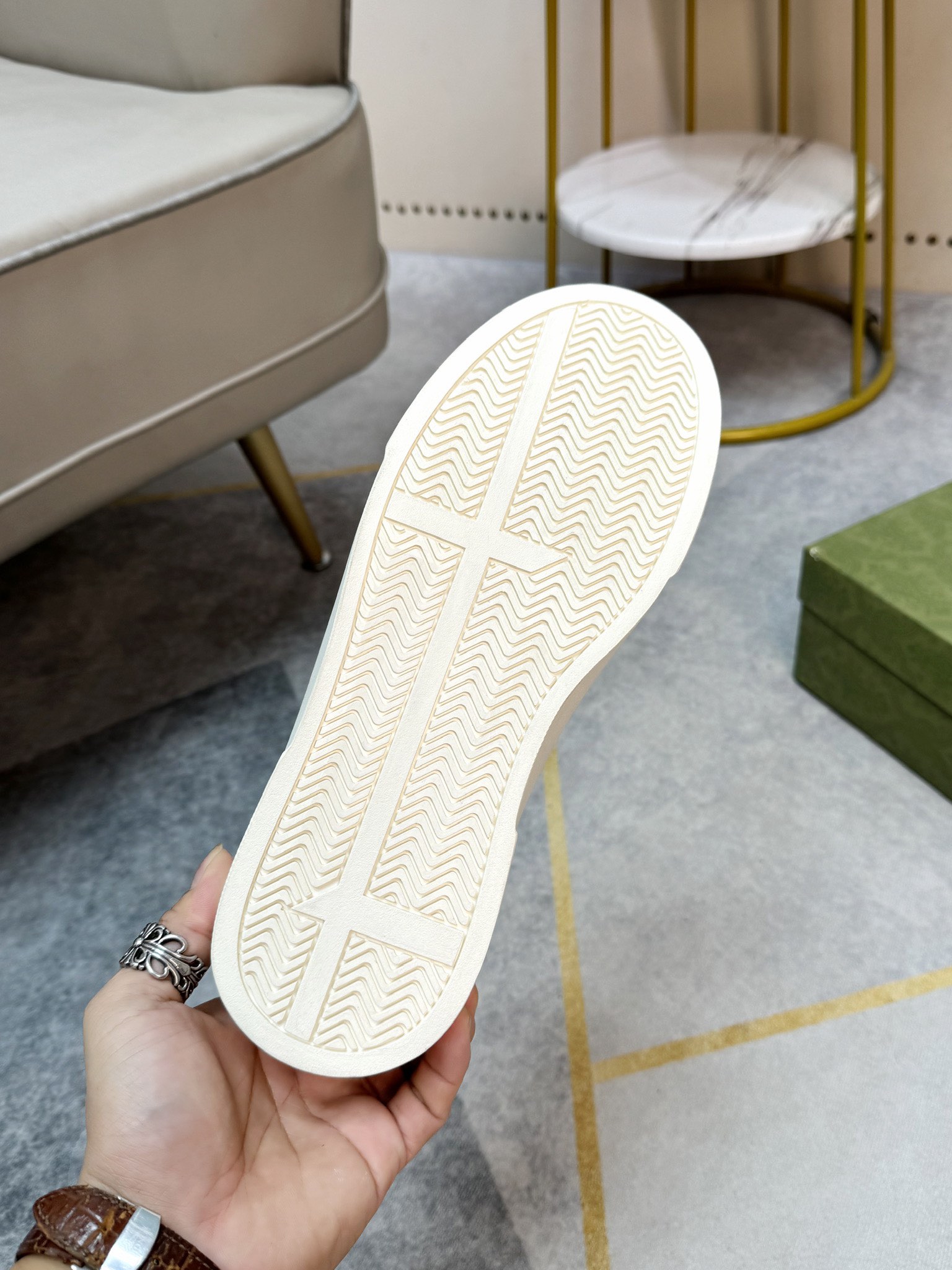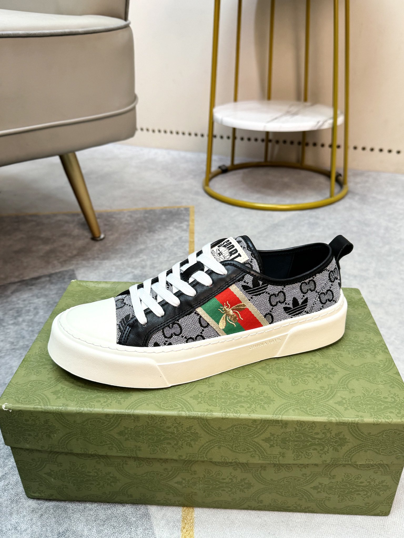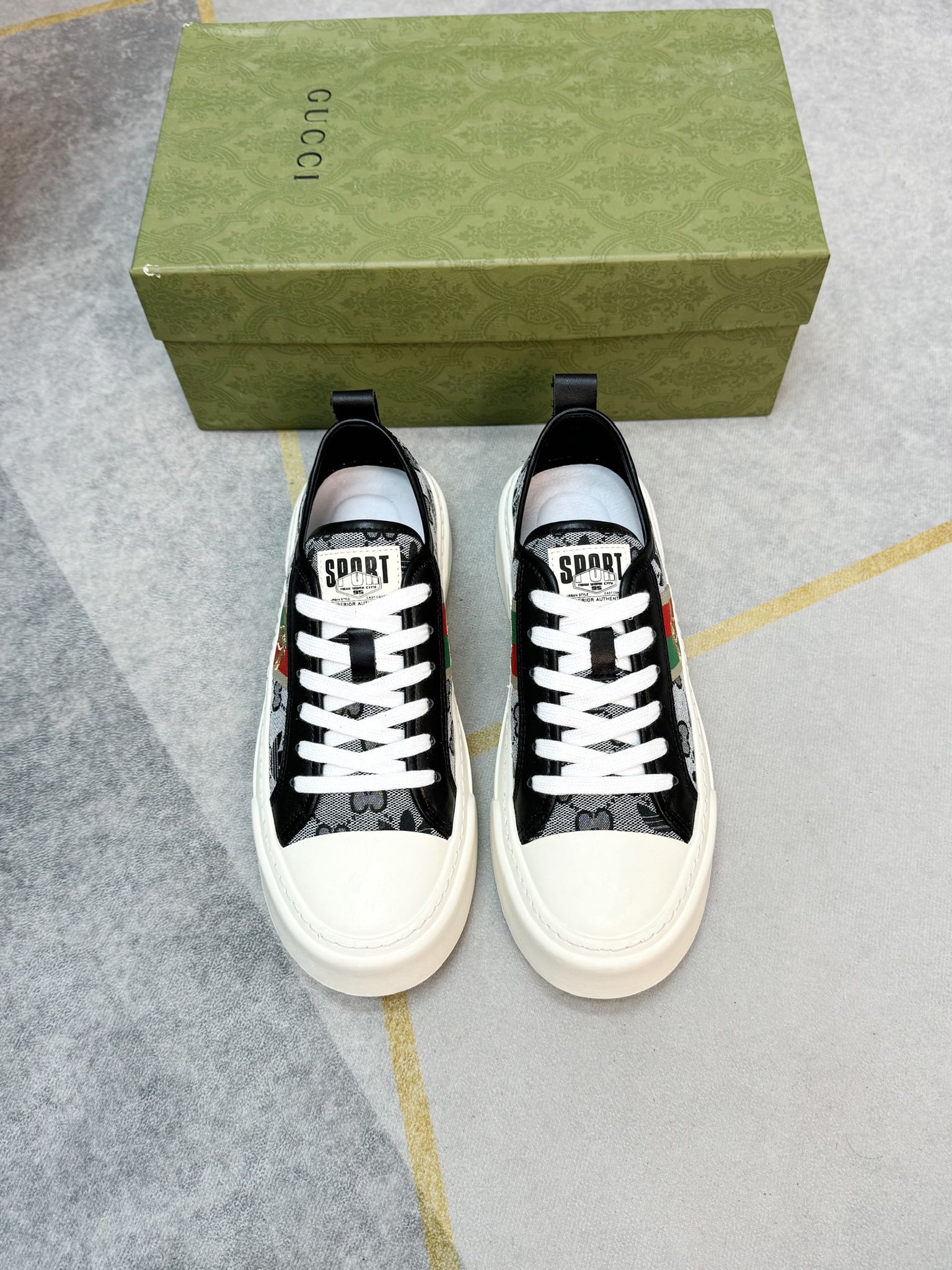 这款鞋子是AAAAA 1:1 质量 (非常棒). 使用了和原版一模一样的材料. 商标部分也保持了和古奇/Gucci一样. 图片拍摄是实物鞋子拍摄, 您所收到的实物保证和我们图片一模一样.