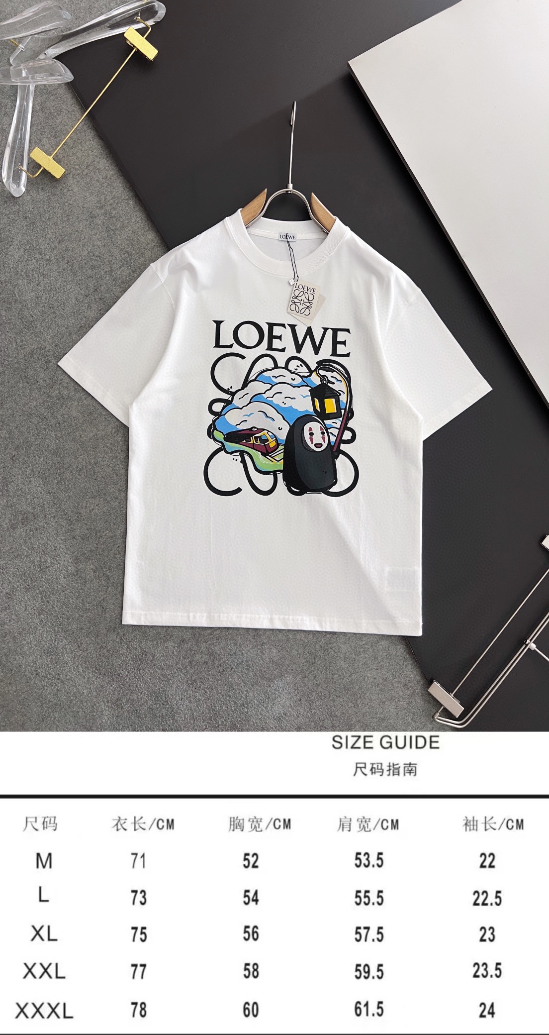 这款衣服是AAAAA 1:1 质量 (非常棒). 使用了和原版一模一样的材料. 商标部分也保持了和罗意威/Loewe一样. 图片拍摄是实物衣服拍摄, 您所收到的实物保证和我们图片一模一样.