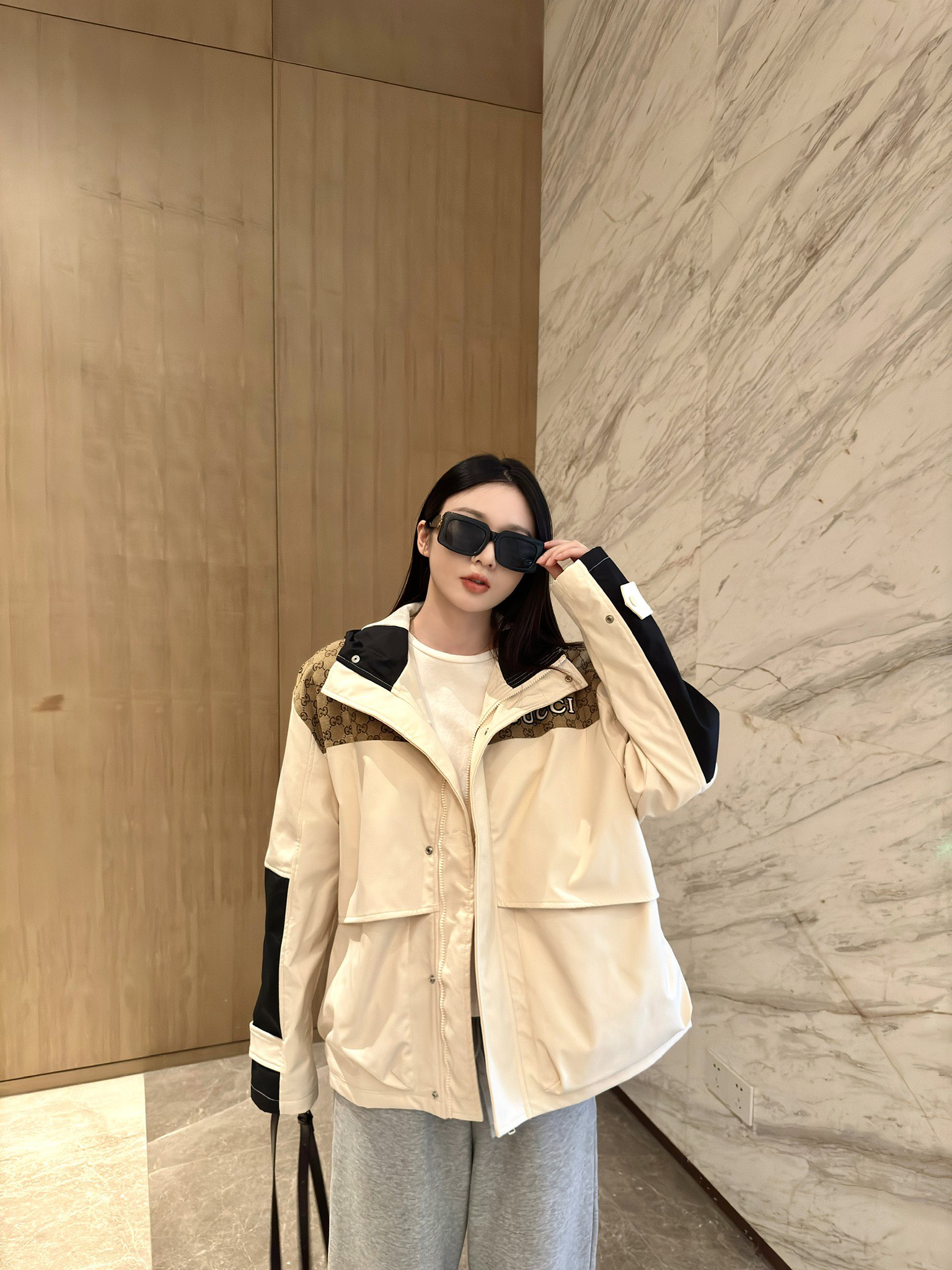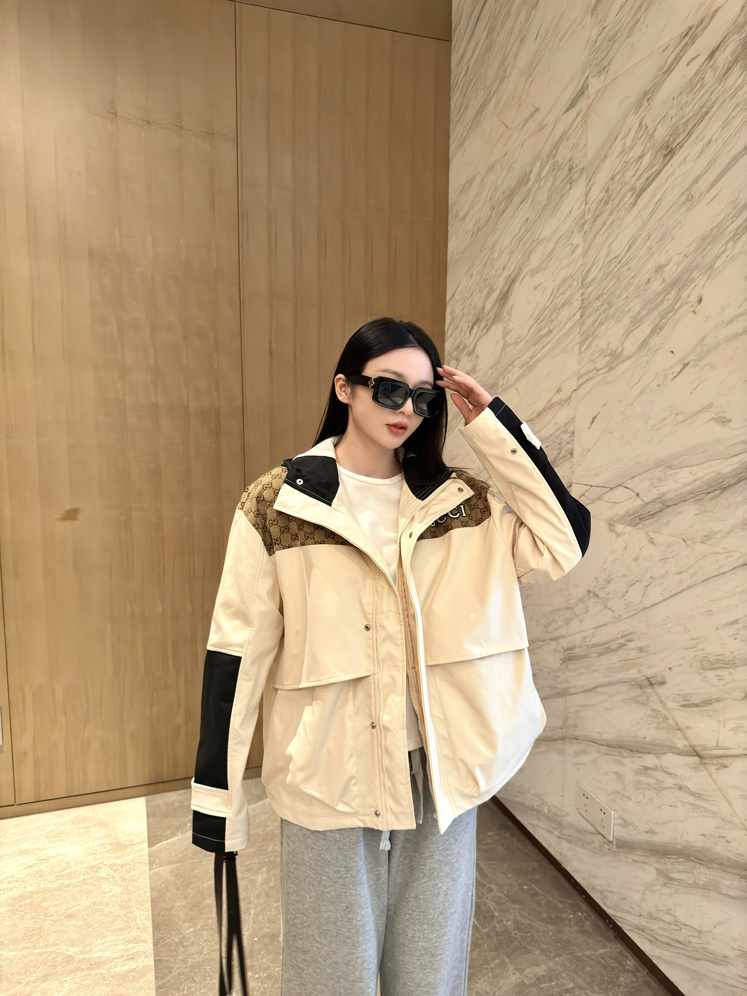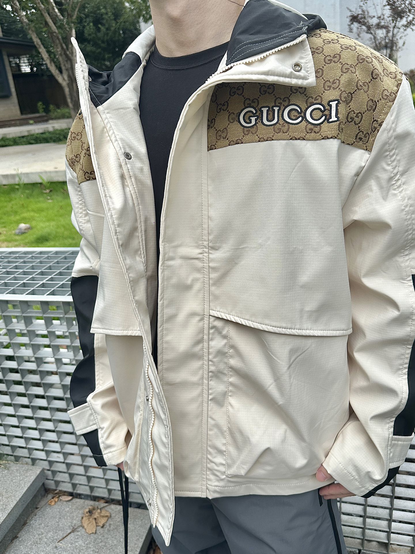 这款衣服是AAAAA 1:1 质量 (非常棒). 使用了和原版一模一样的材料. 商标部分也保持了和古奇/Gucci一样. 图片拍摄是实物衣服拍摄, 您所收到的实物保证和我们图片一模一样.