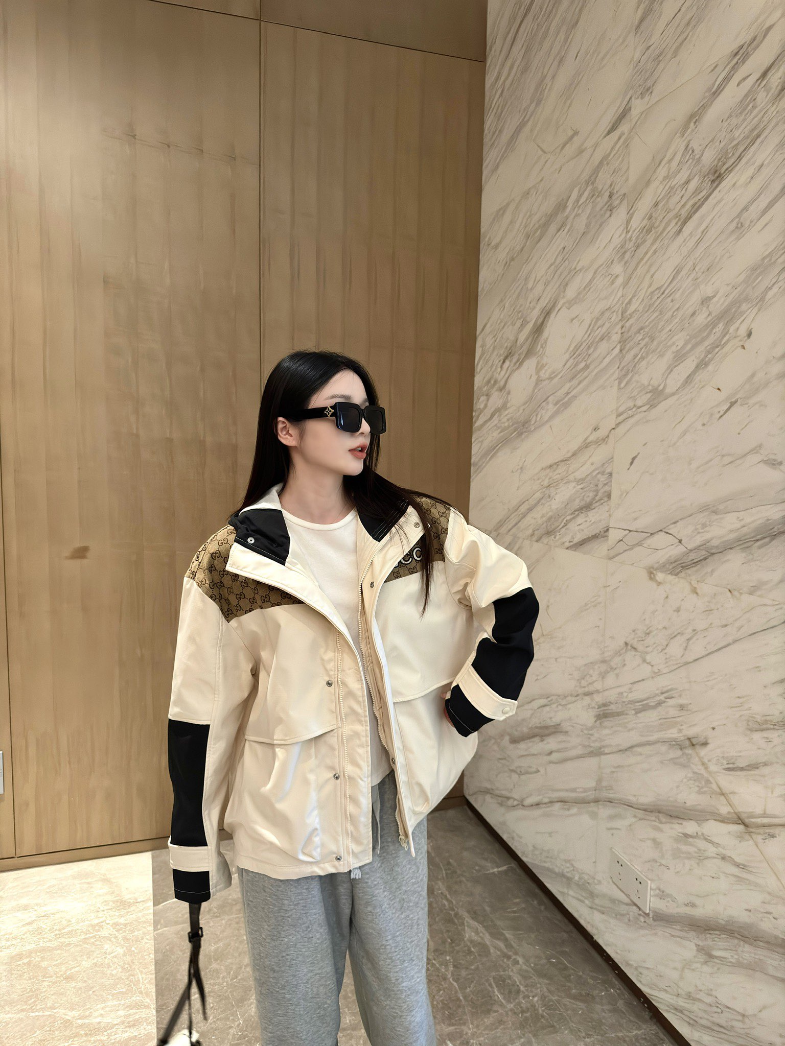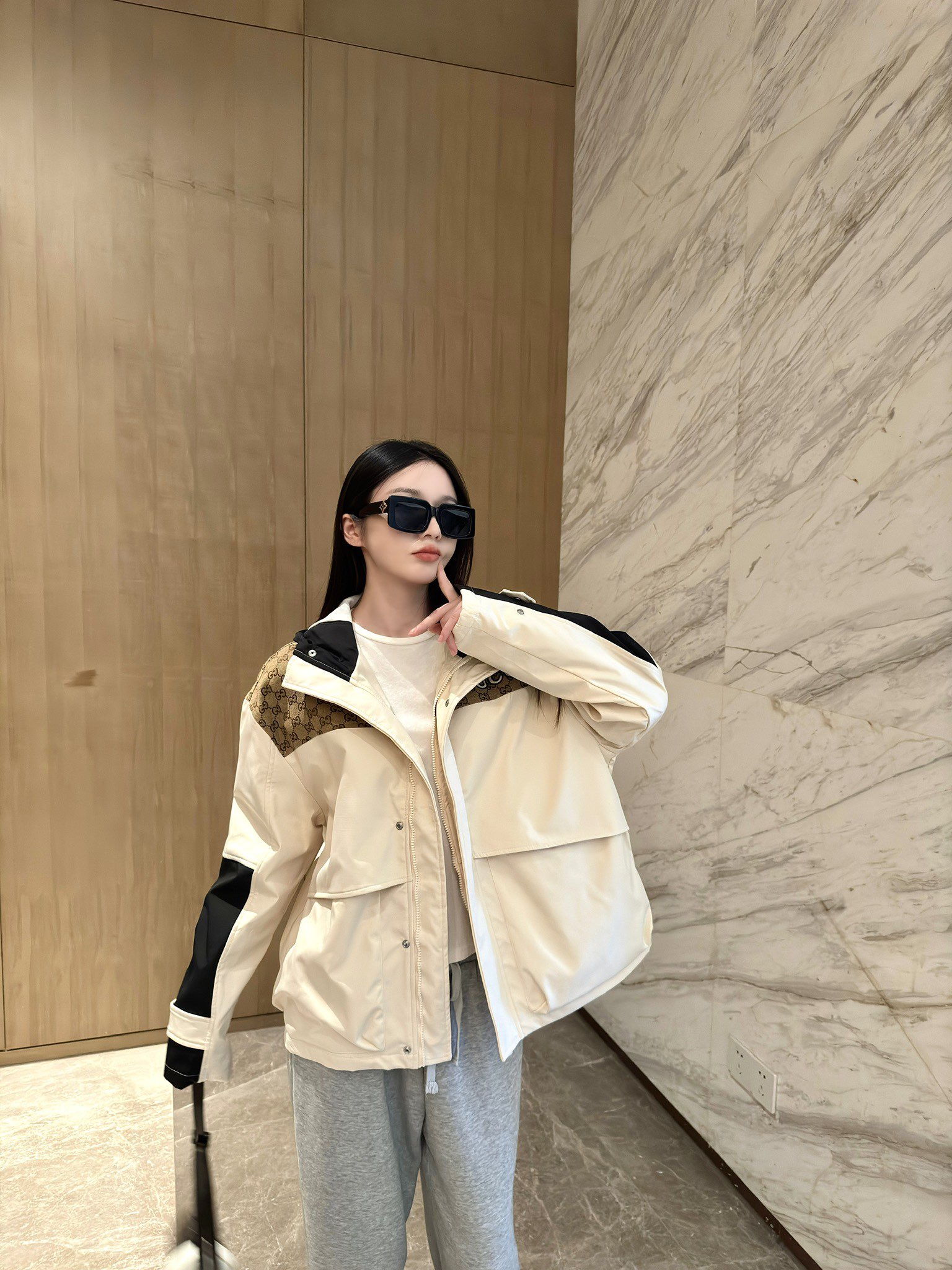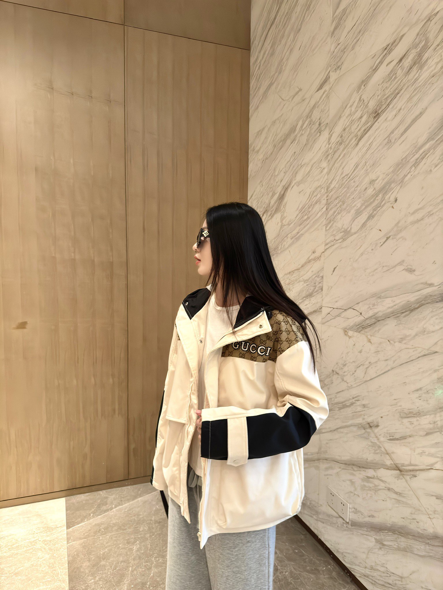 这款衣服是AAAAA 1:1 质量 (非常棒). 使用了和原版一模一样的材料. 商标部分也保持了和古奇/Gucci一样. 图片拍摄是实物衣服拍摄, 您所收到的实物保证和我们图片一模一样.
