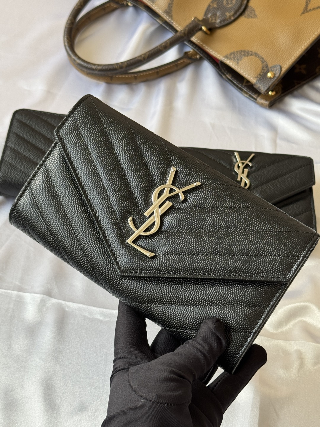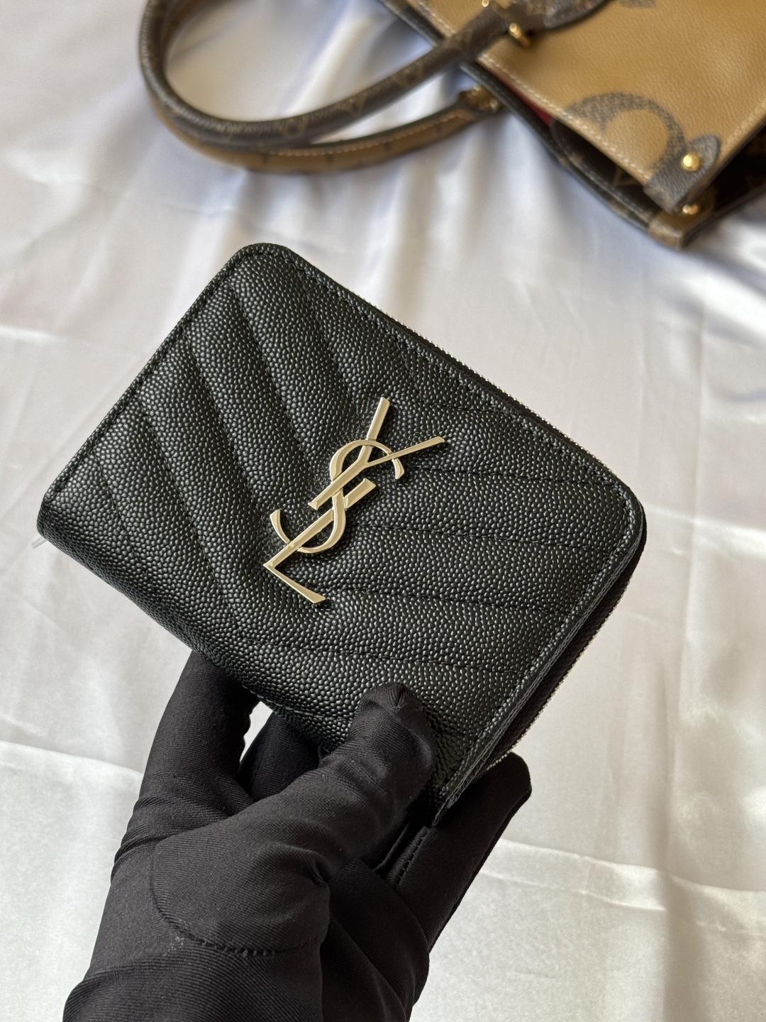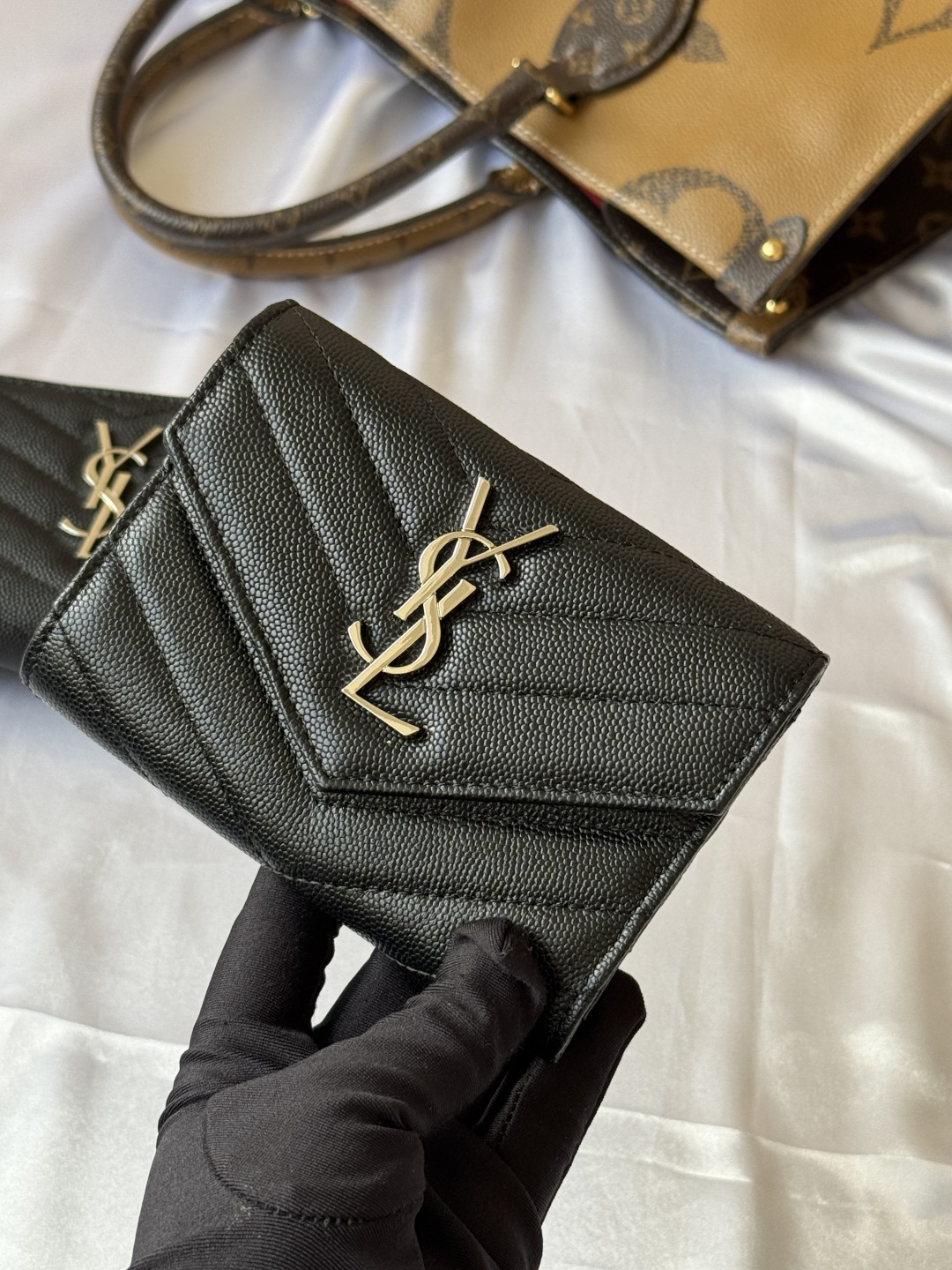 这款钱包是AAAAA 1:1 质量 (非常棒). 使用了和原版一模一样的材料. 商标部分也保持了和圣罗兰/Saint Laurent一样. 图片拍摄是实物钱包拍摄, 您所收到的实物保证和我们图片一模一样.