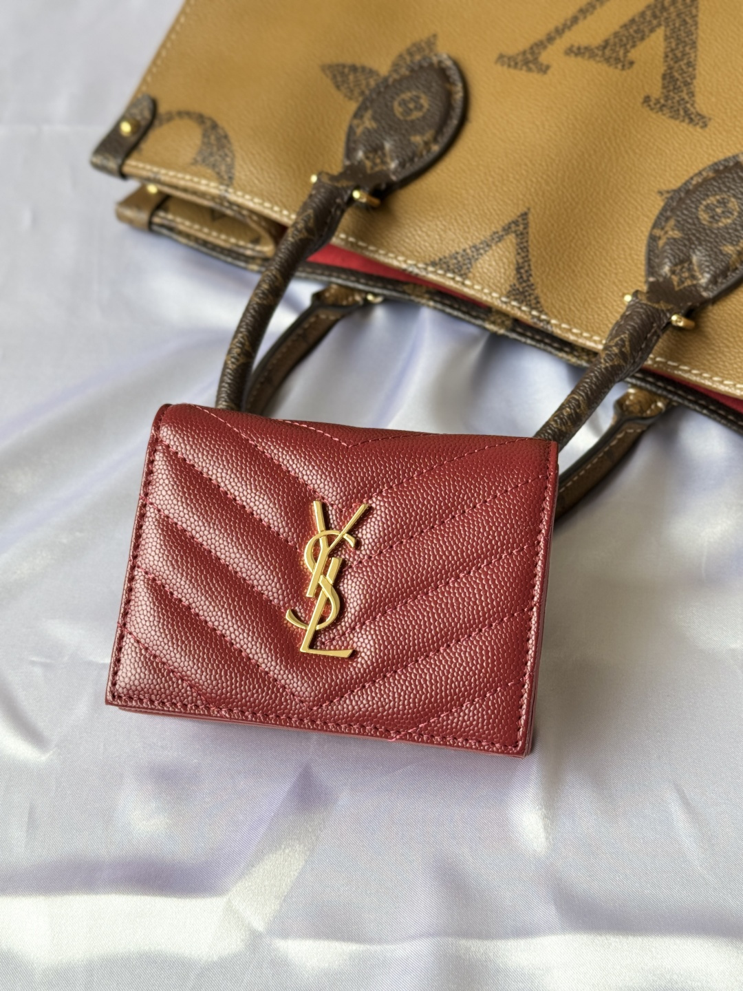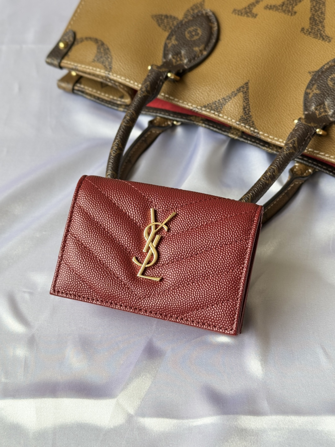 这款钱包是AAAAA 1:1 质量 (非常棒). 使用了和原版一模一样的材料. 商标部分也保持了和圣罗兰/Saint Laurent一样. 图片拍摄是实物钱包拍摄, 您所收到的实物保证和我们图片一模一样.