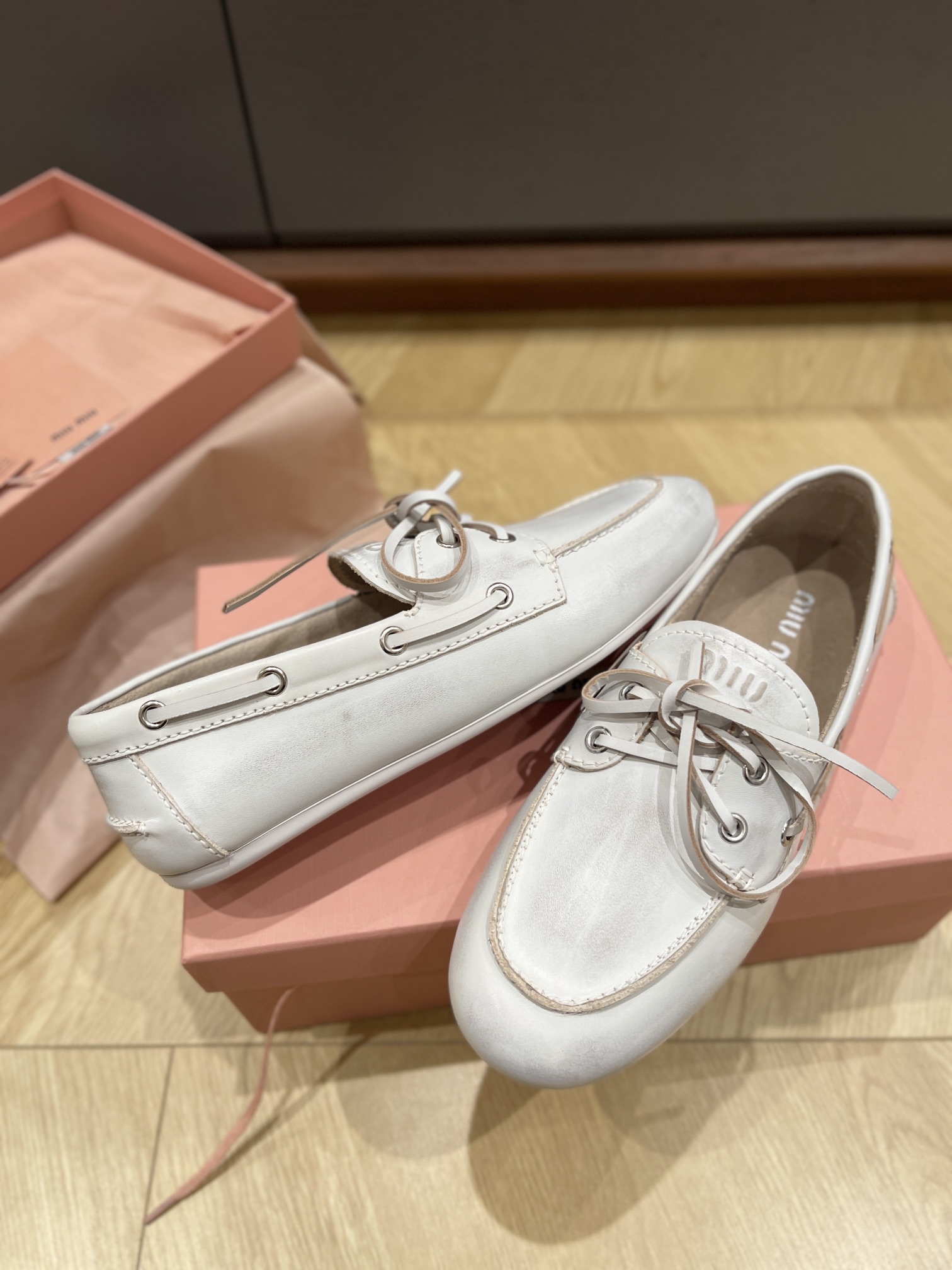 这款鞋子是AAAAA 1:1 质量 (非常棒). 使用了和原版一模一样的材料. 商标部分也保持了和缪缪/Miu Miu一样. 图片拍摄是实物鞋子拍摄, 您所收到的实物保证和我们图片一模一样.