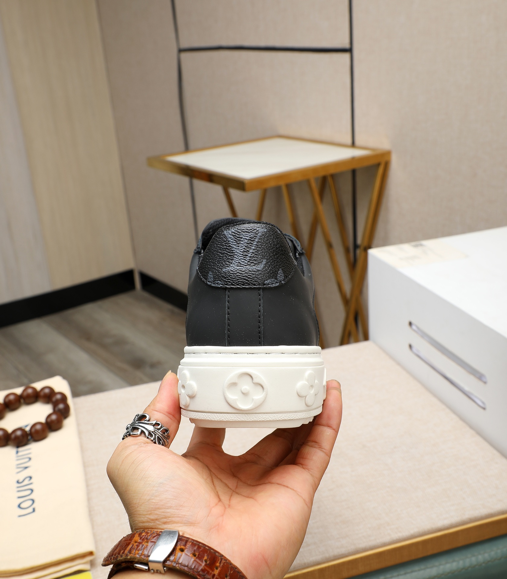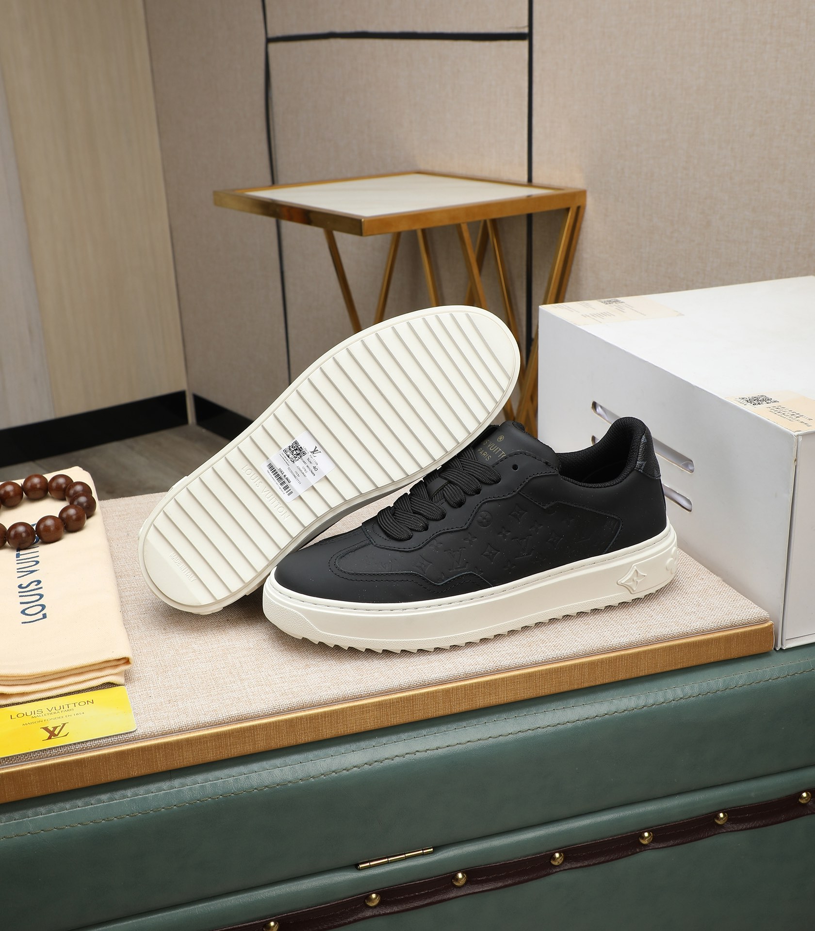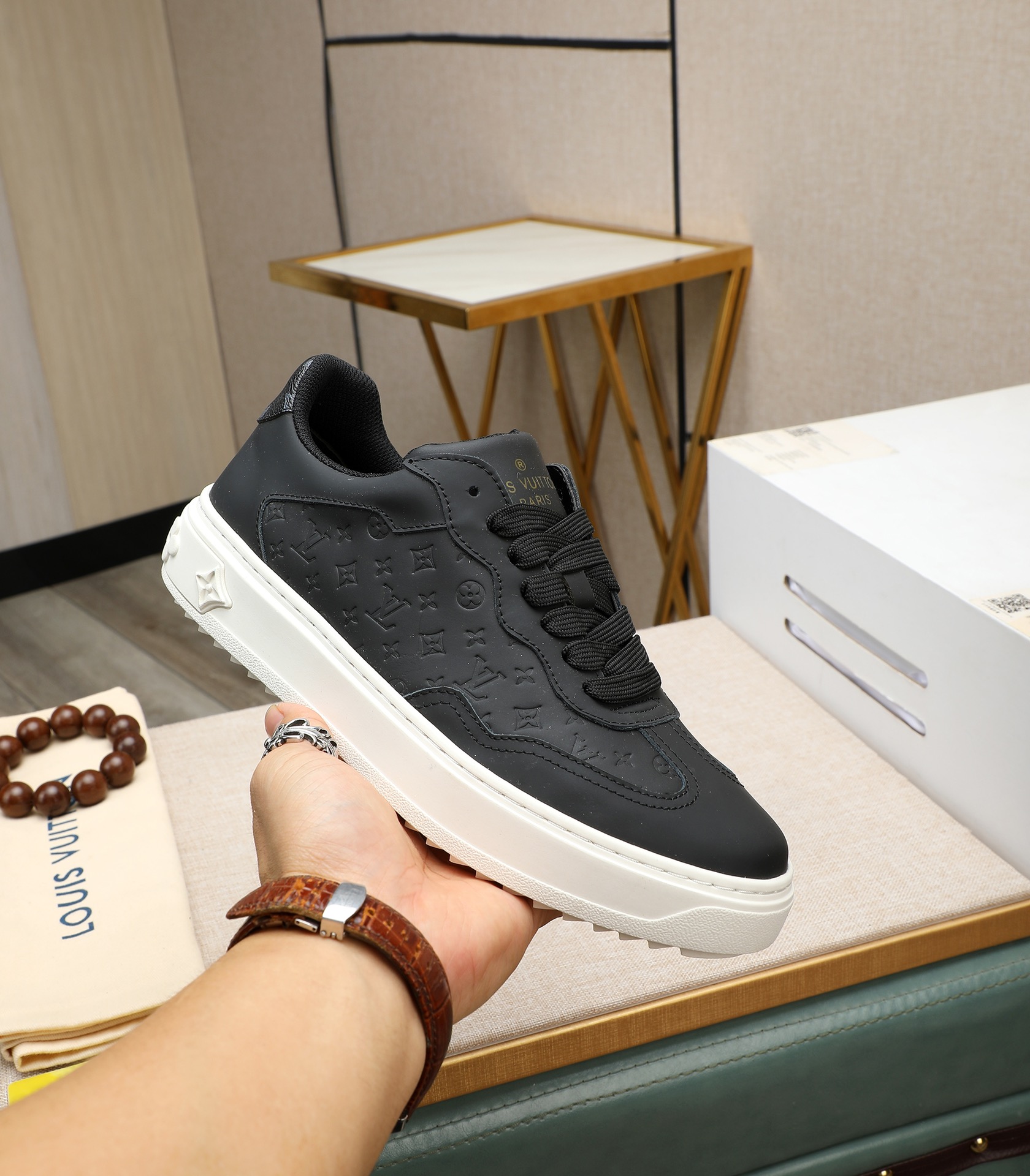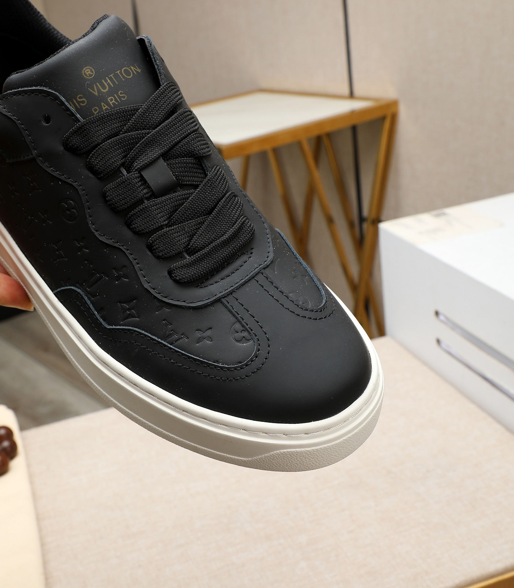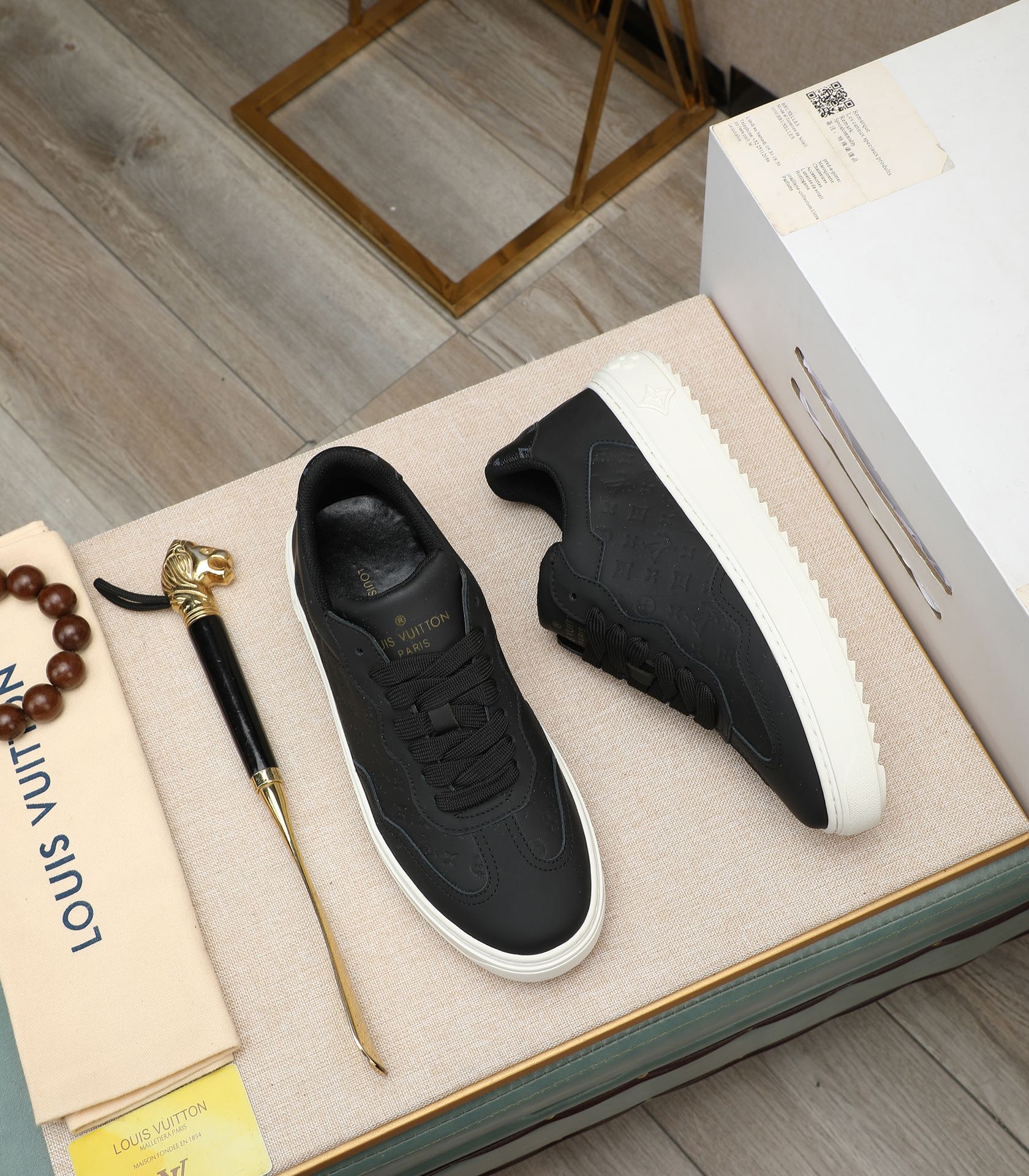 这款鞋子是AAAAA 1:1 质量 (非常棒). 使用了和原版一模一样的材料. 商标部分也保持了和路易威登/Louis Vuitton一样. 图片拍摄是实物鞋子拍摄, 您所收到的实物保证和我们图片一模一样.