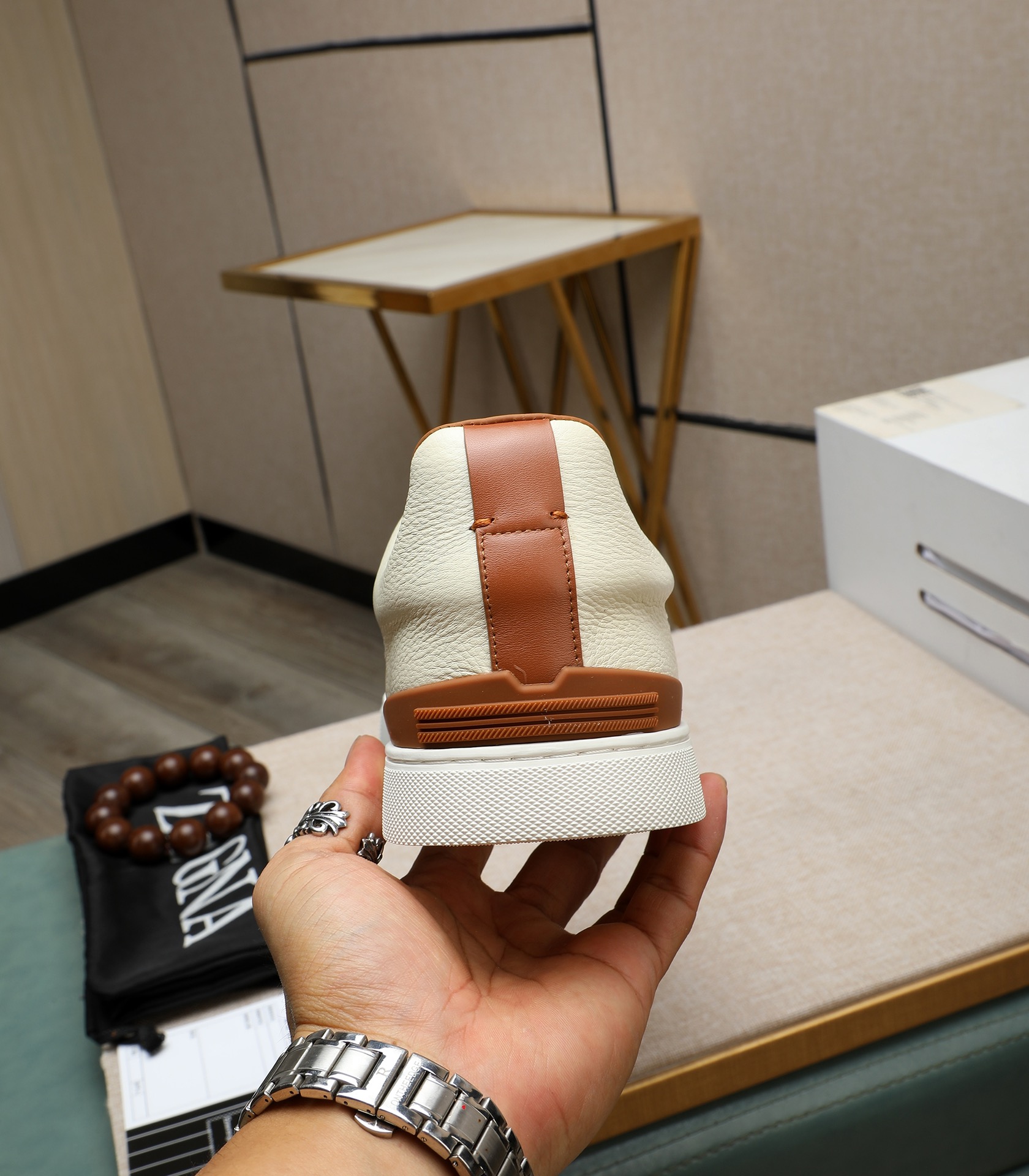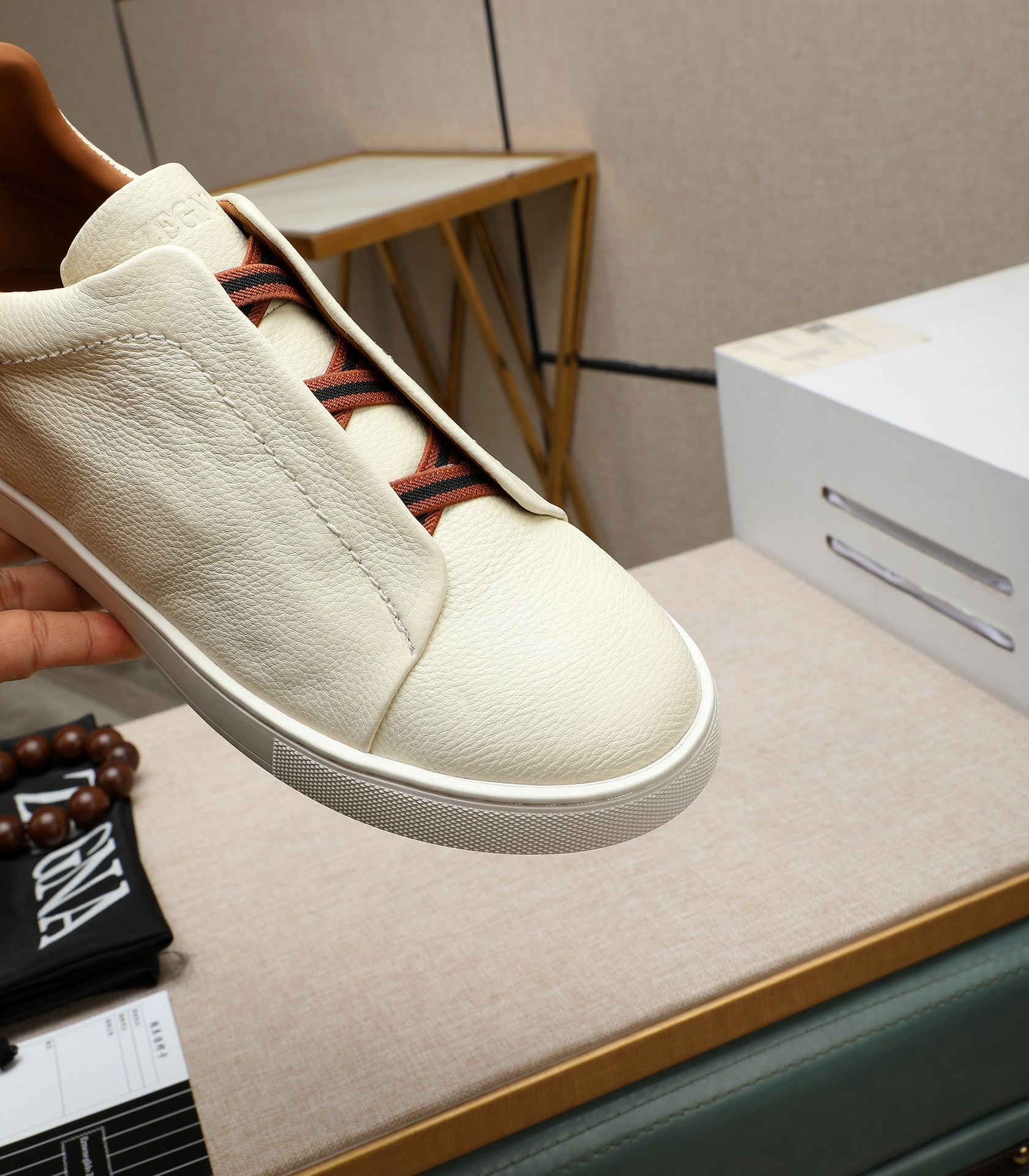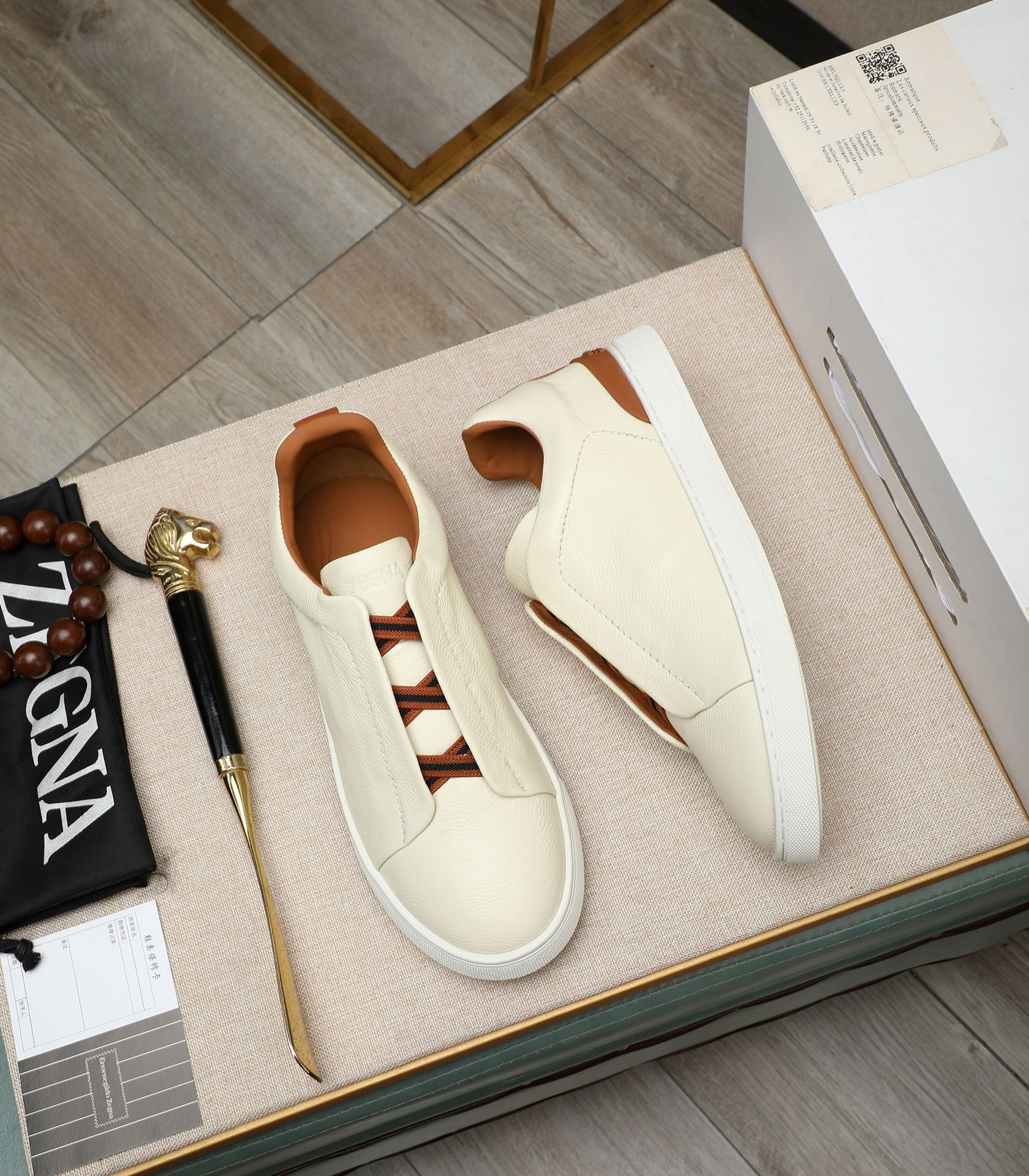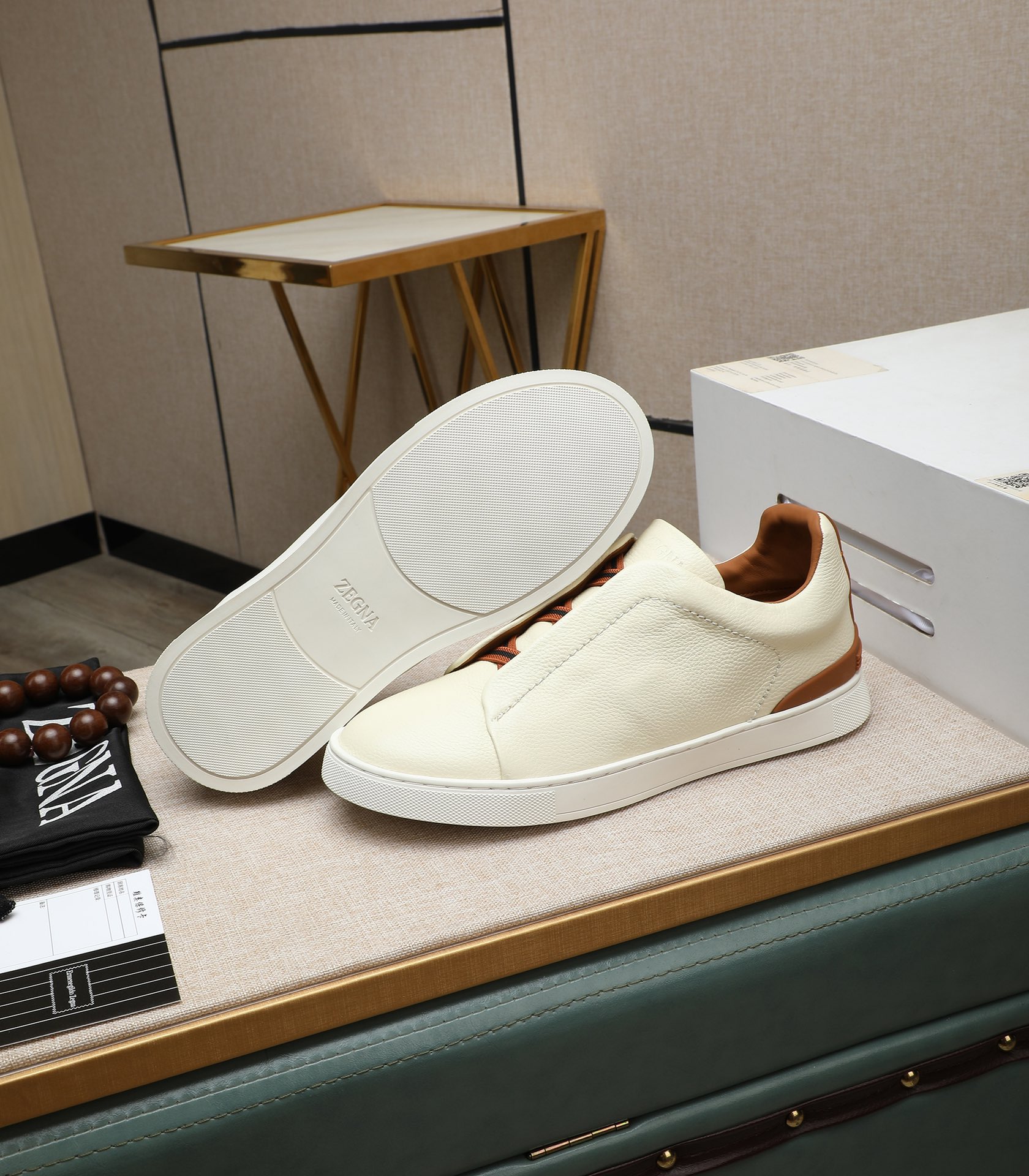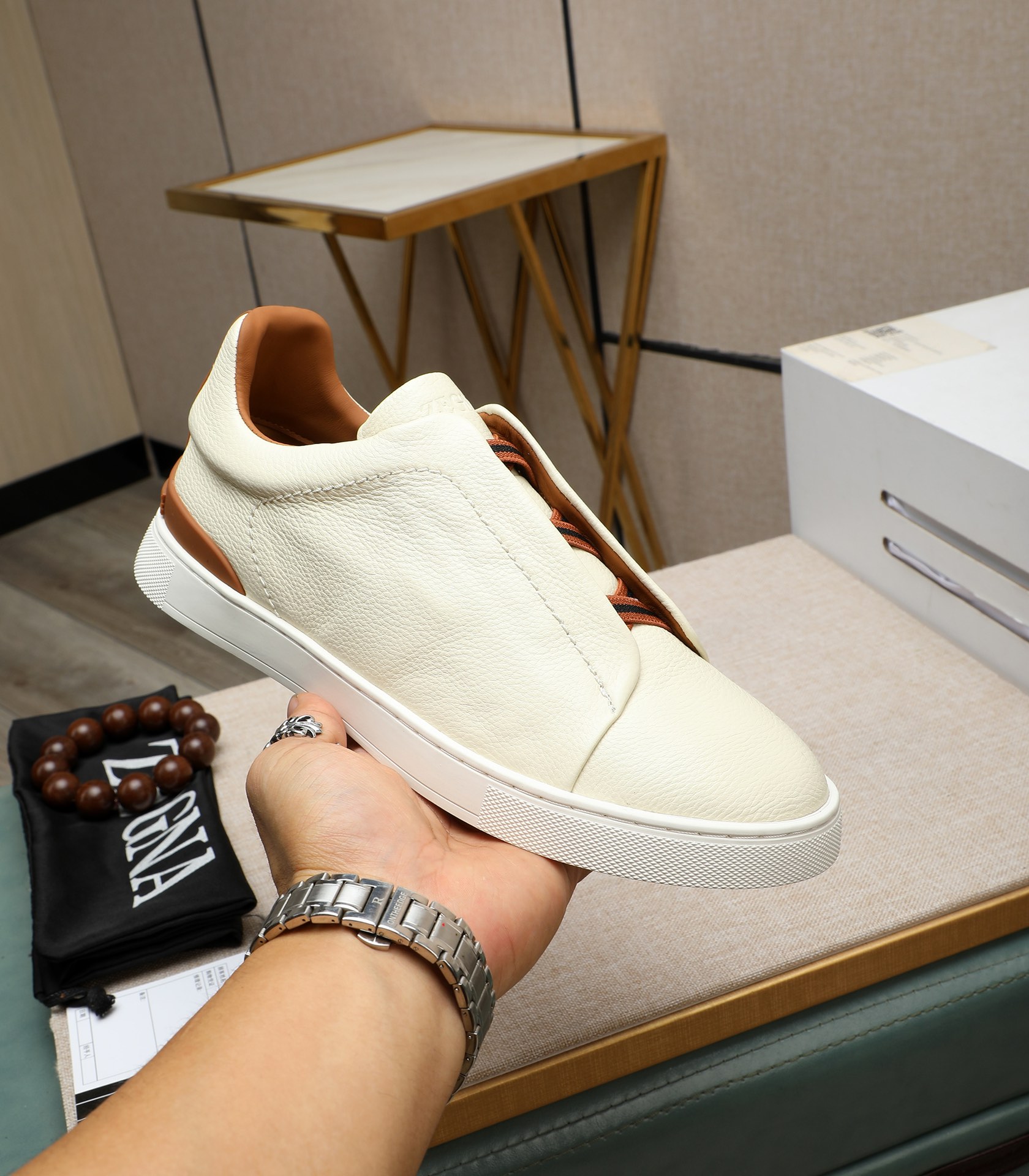 这款鞋子是AAAAA 1:1 质量 (非常棒). 使用了和原版一模一样的材料. 商标部分也保持了和杰尼亚/Zegna一样. 图片拍摄是实物鞋子拍摄, 您所收到的实物保证和我们图片一模一样.