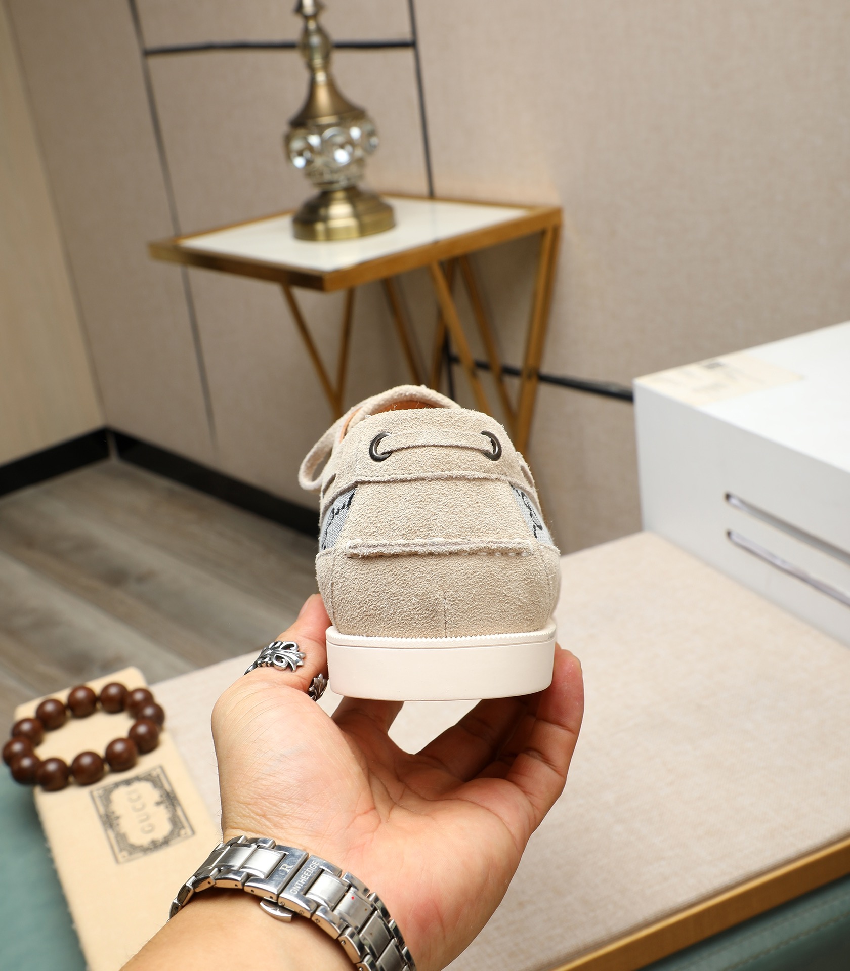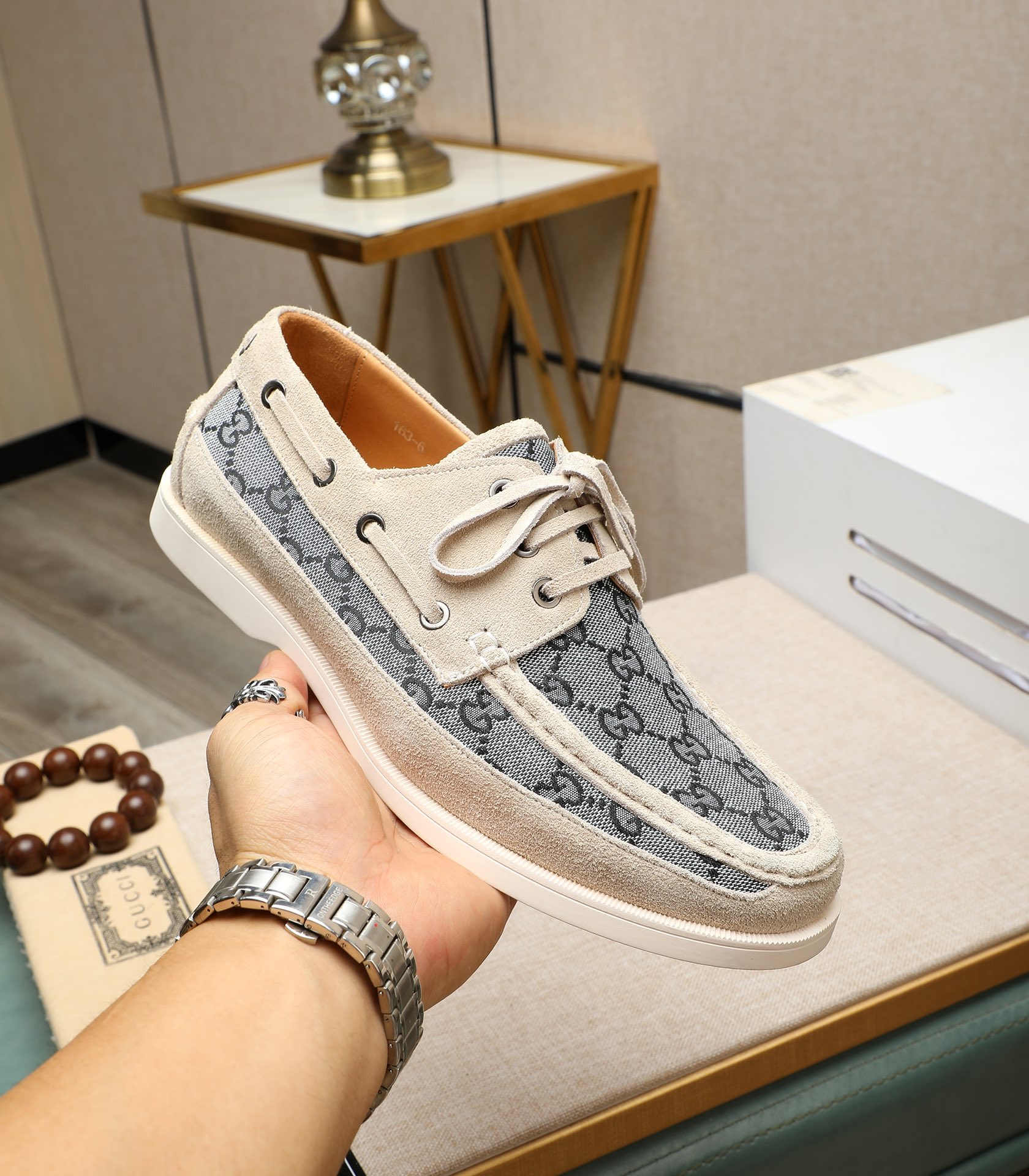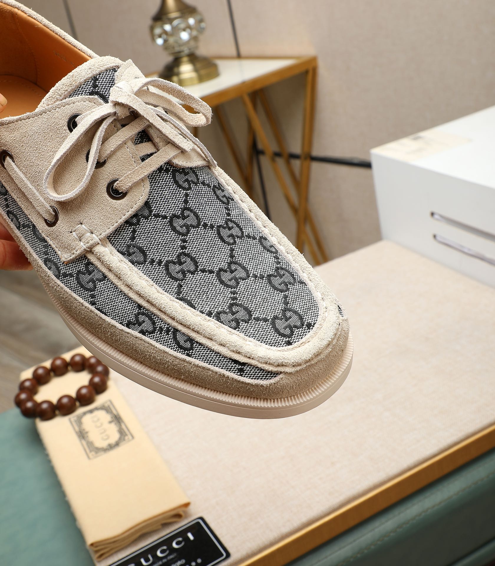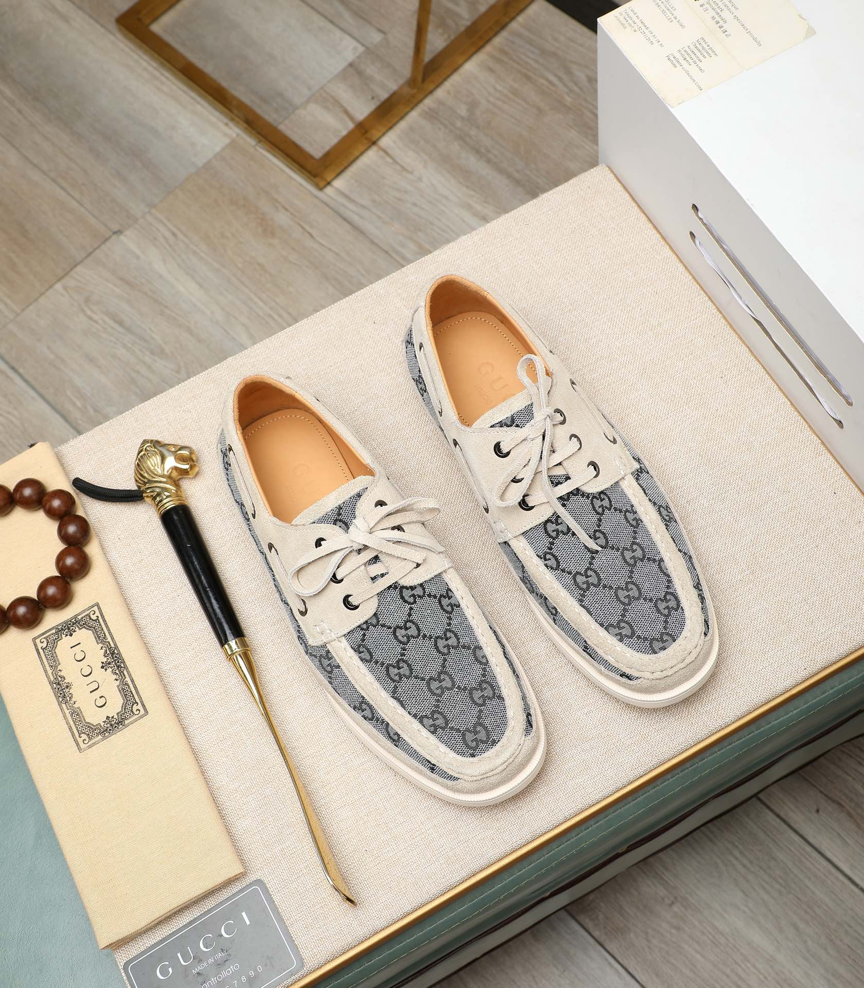 这款鞋子是AAAAA 1:1 质量 (非常棒). 使用了和原版一模一样的材料. 商标部分也保持了和古奇/Gucci一样. 图片拍摄是实物鞋子拍摄, 您所收到的实物保证和我们图片一模一样.