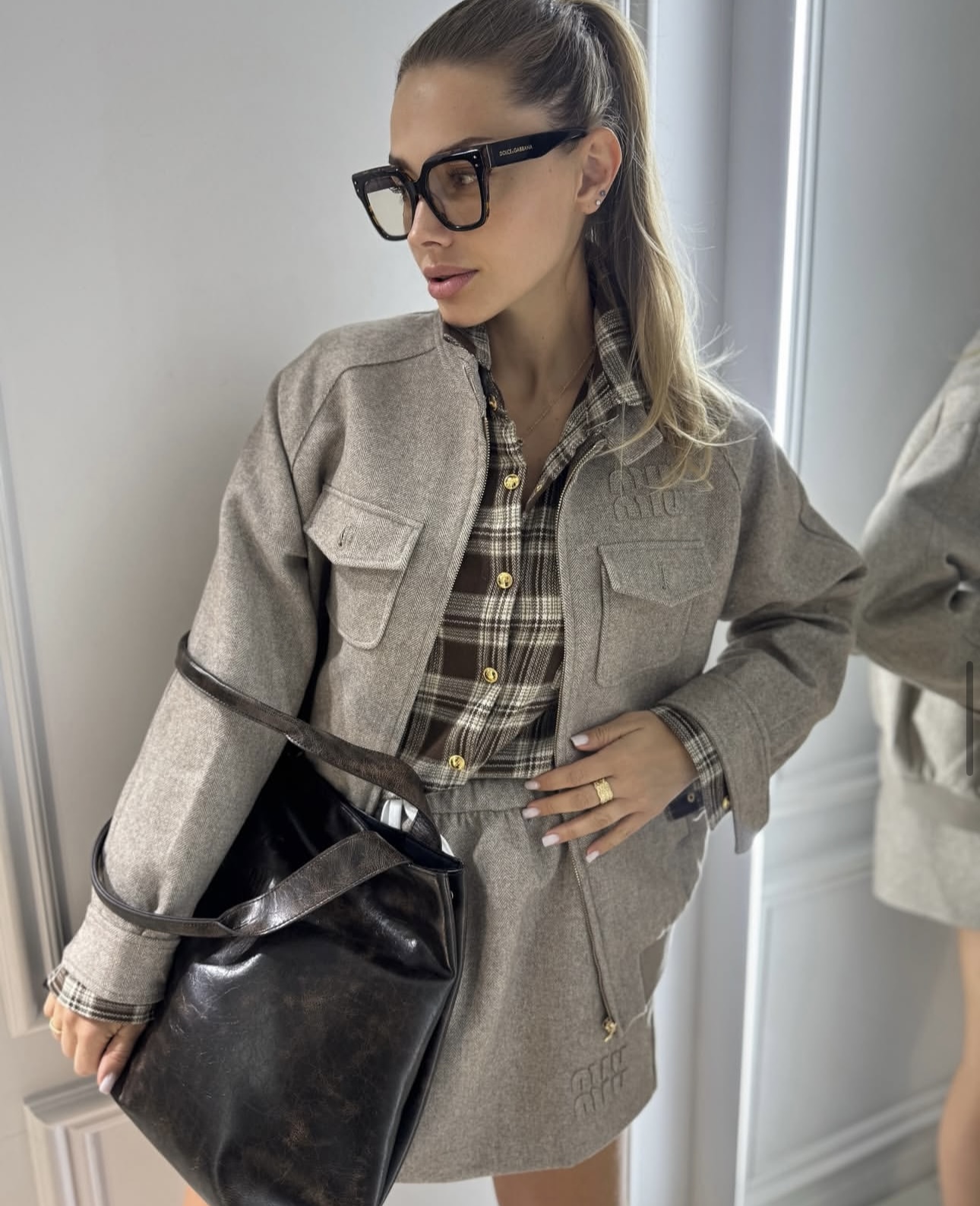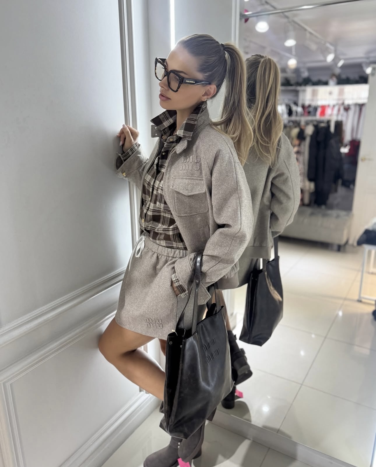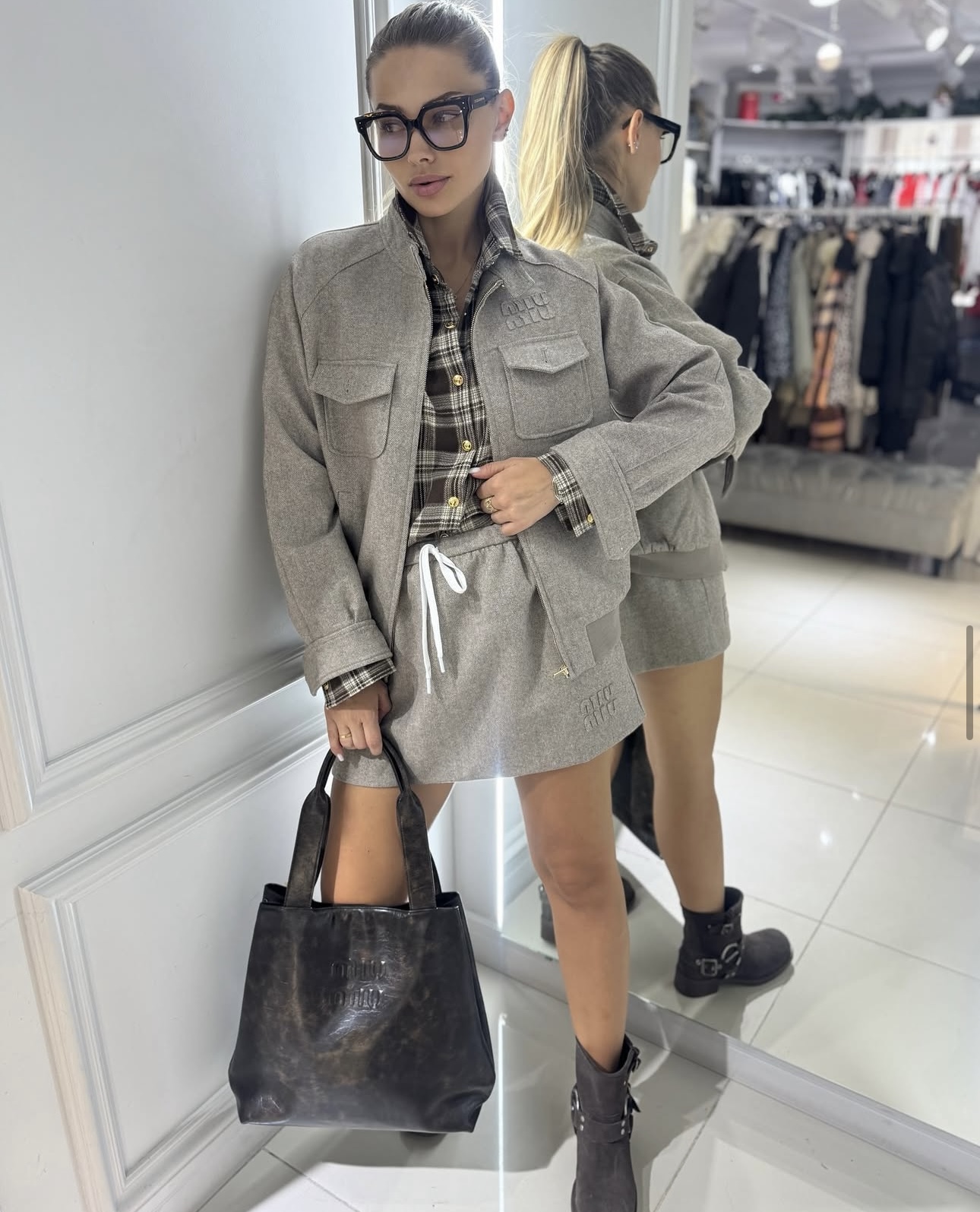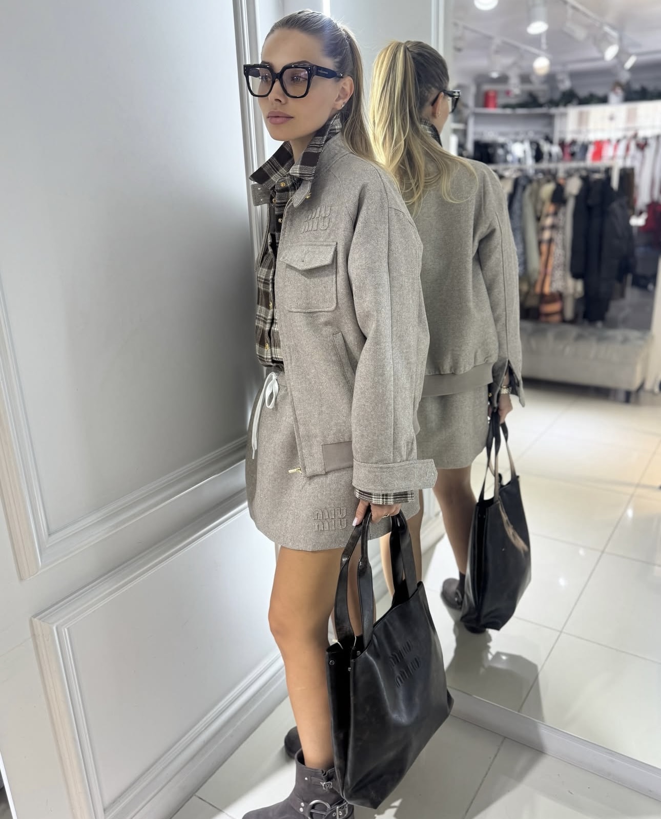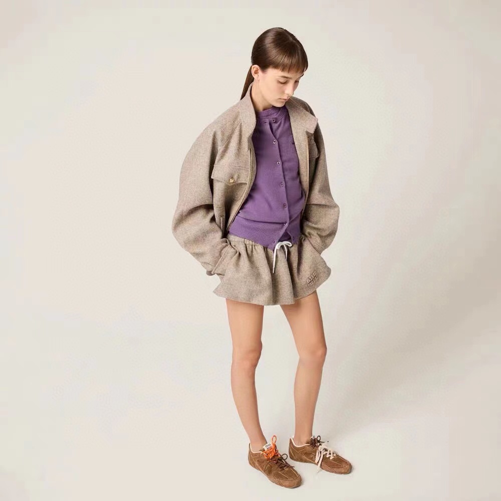 这款衣服是AAAAA 1:1 质量 (非常棒). 使用了和原版一模一样的材料. 商标部分也保持了和缪缪/Miu Miu一样. 图片拍摄是实物衣服拍摄, 您所收到的实物保证和我们图片一模一样.
