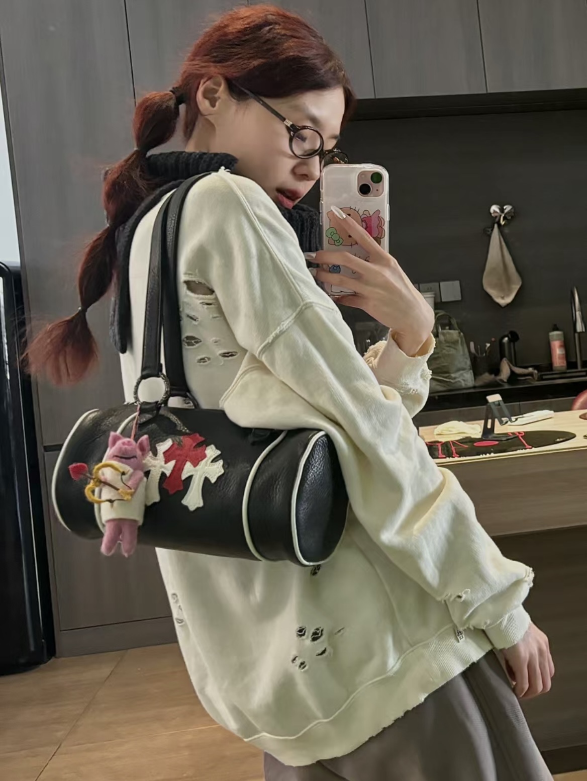 这款包包是AAAAA 1:1 质量 (非常棒). 使用了和原版一模一样的材料. 商标部分也保持了和克罗心/Chrome Hearts一样. 图片拍摄是实物包包拍摄, 您所收到的实物保证和我们图片一模一样.