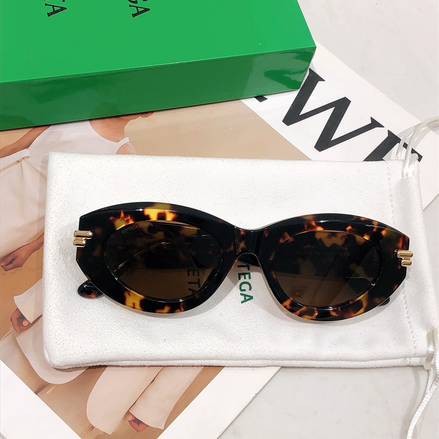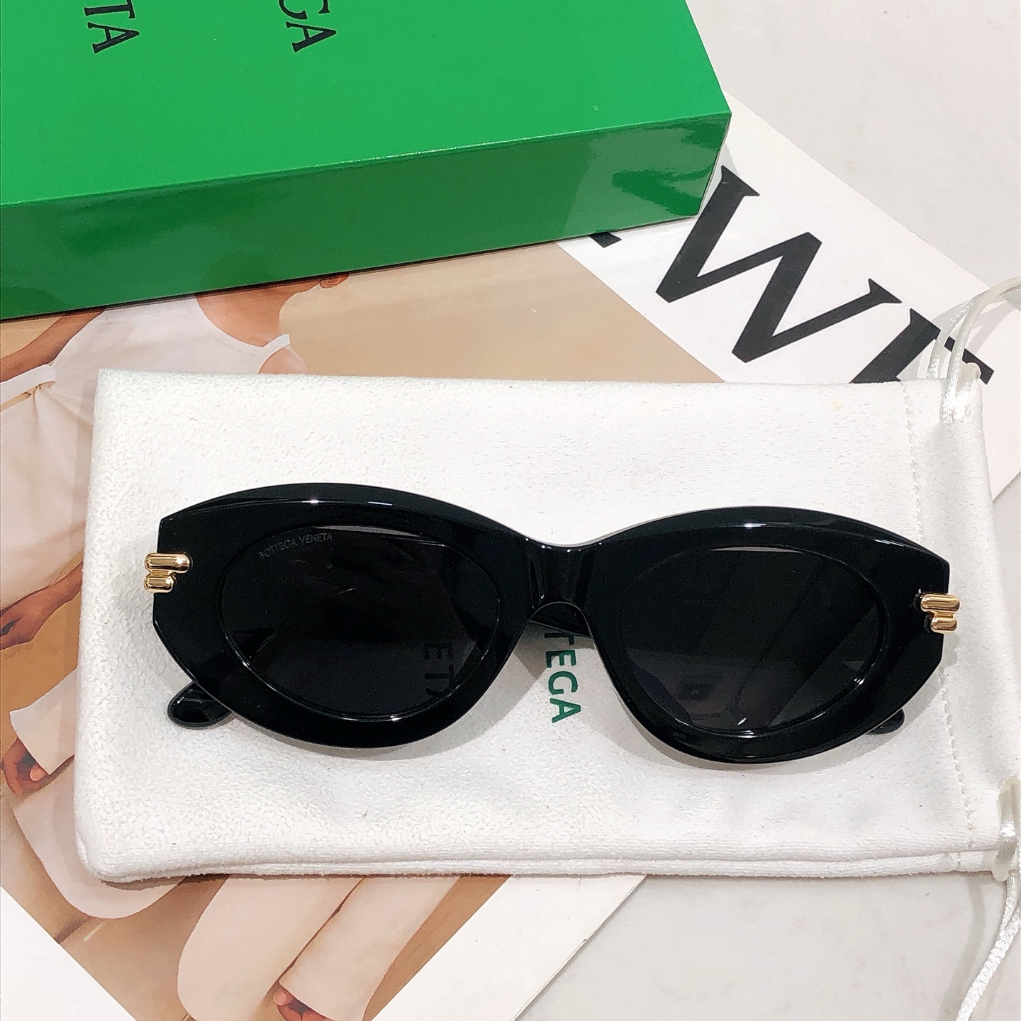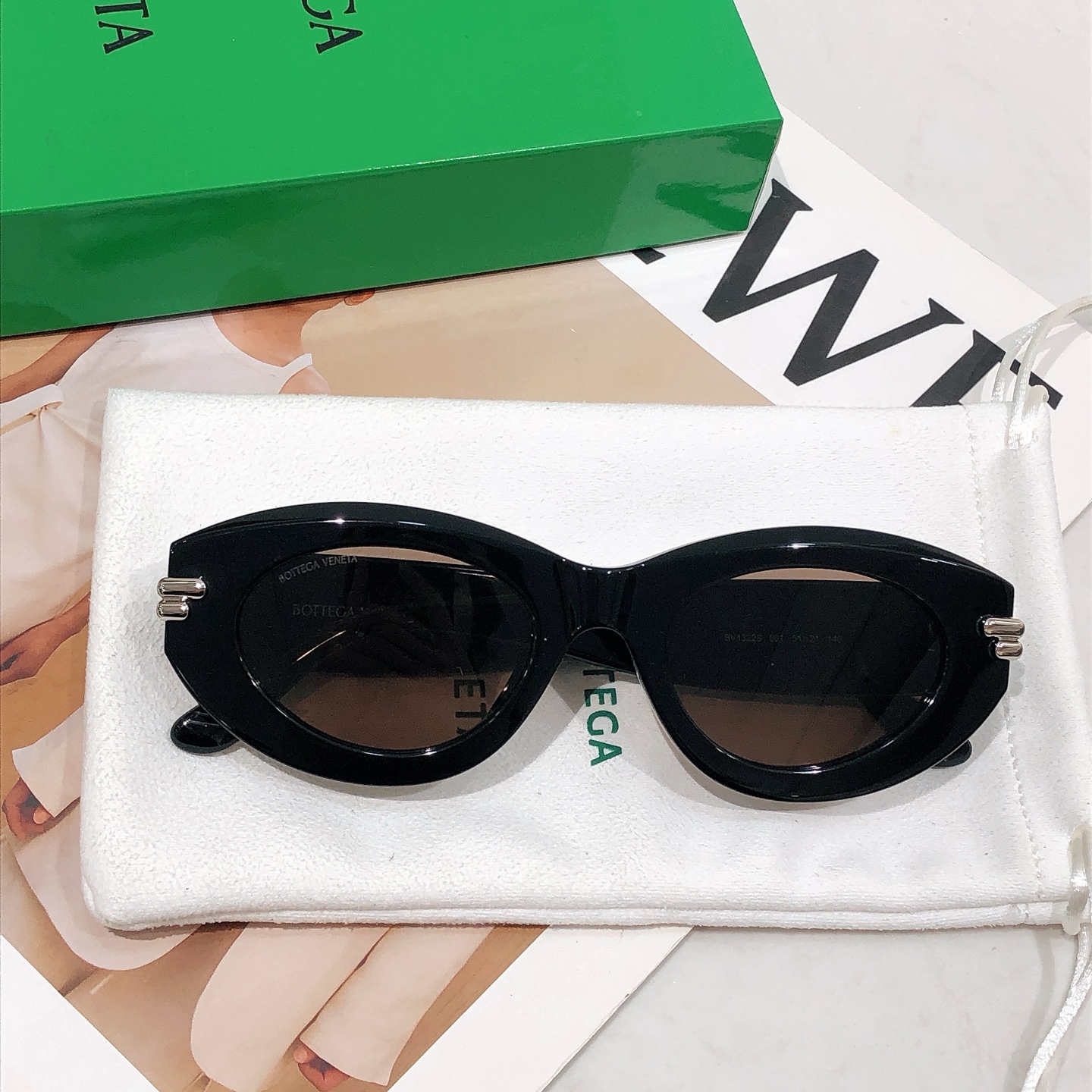 这款太阳眼镜是AAAAA 1:1 质量 (非常棒). 使用了和原版一模一样的材料. 商标部分也保持了和葆蝶家/Bottega Veneta一样. 图片拍摄是实物太阳眼镜拍摄, 您所收到的实物保证和我们图片一模一样.