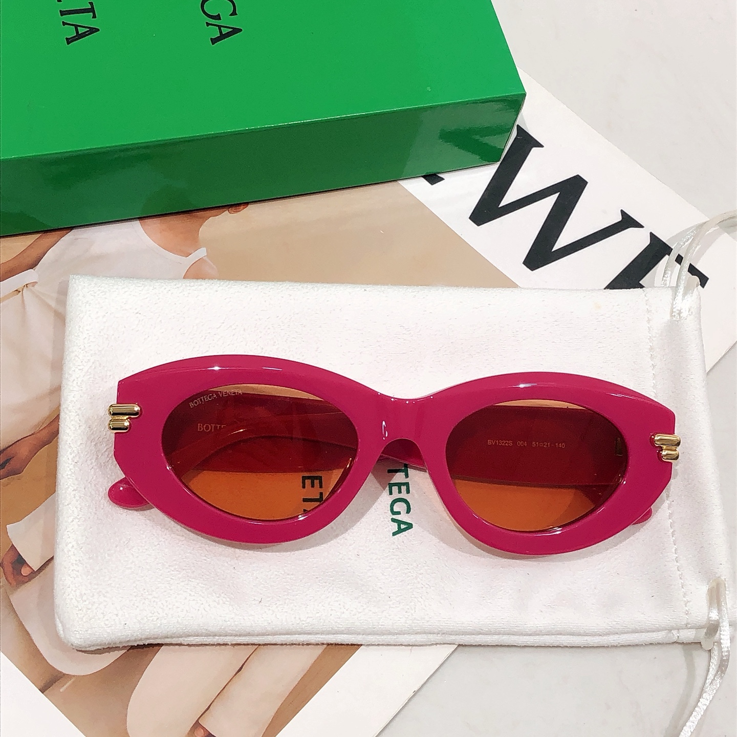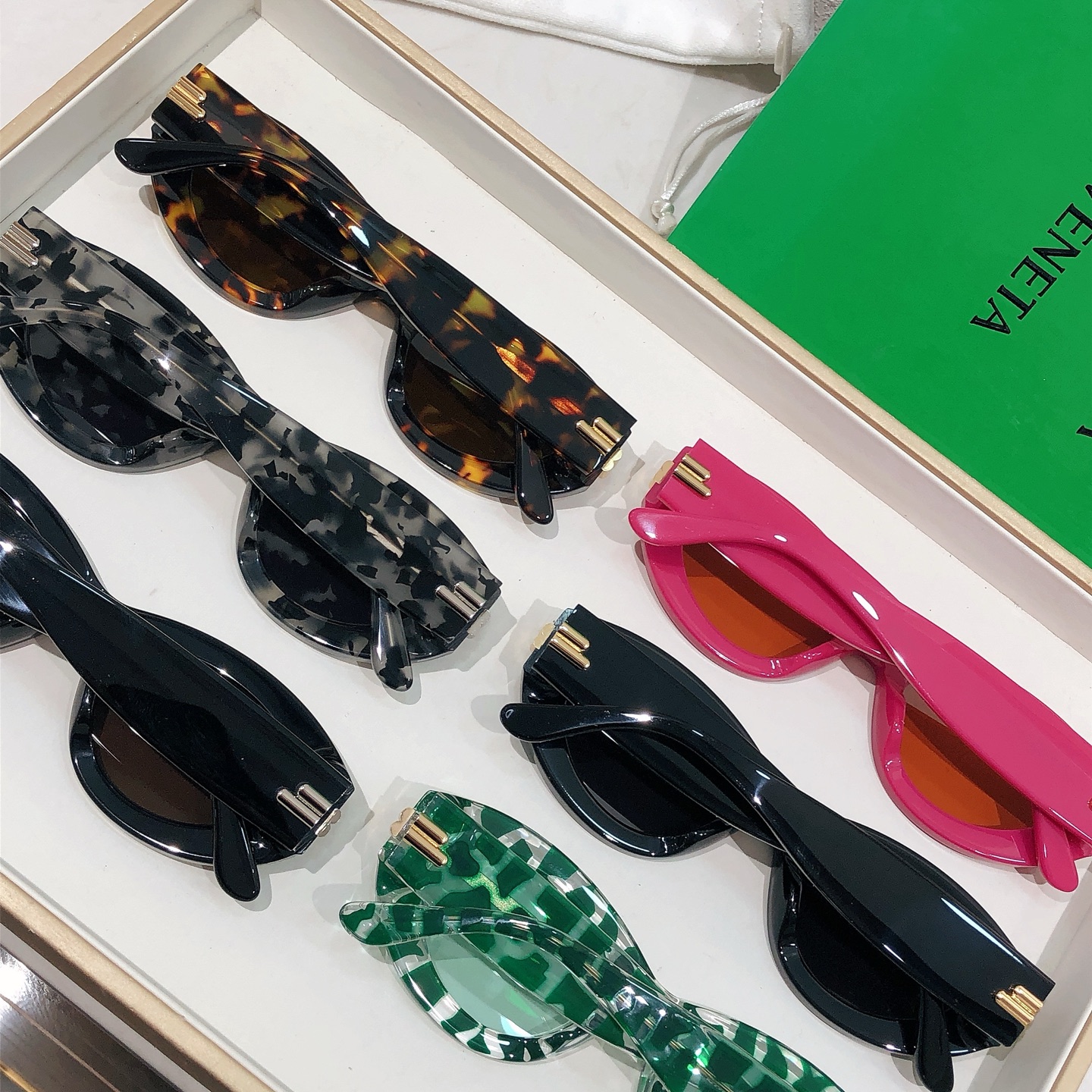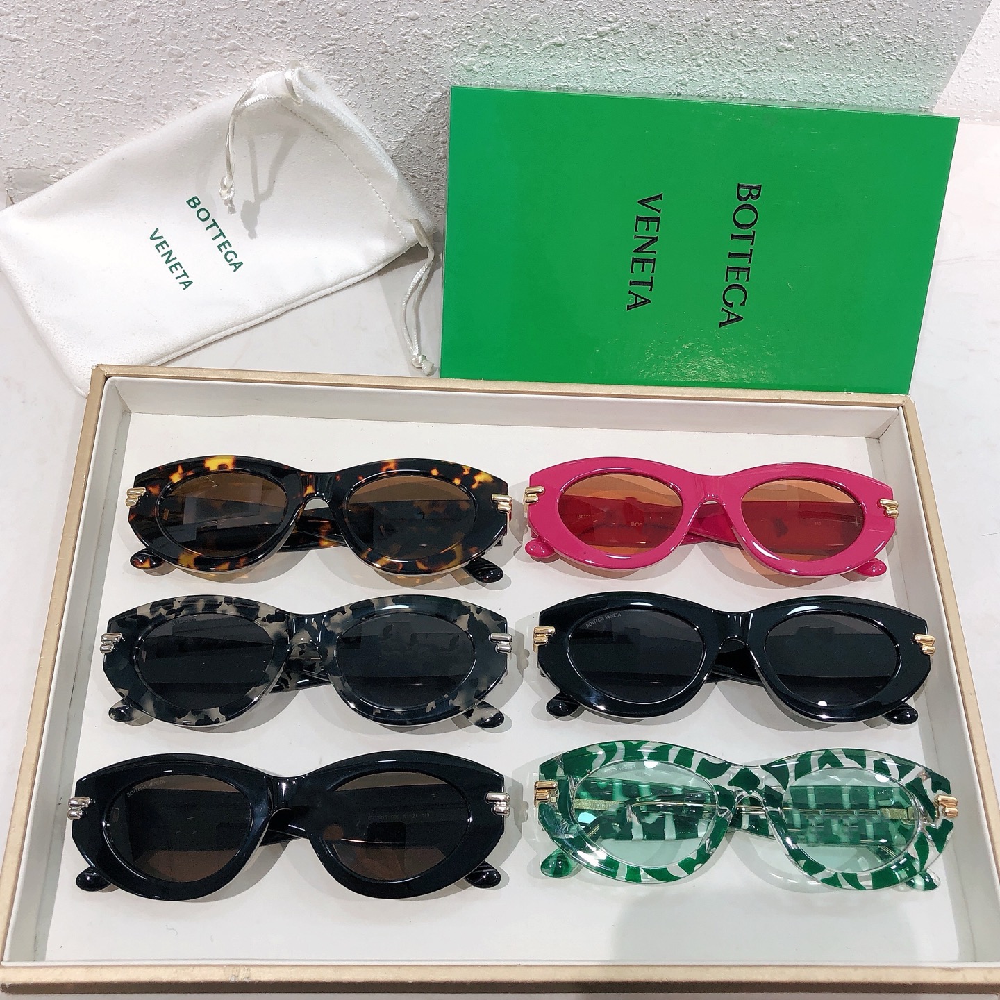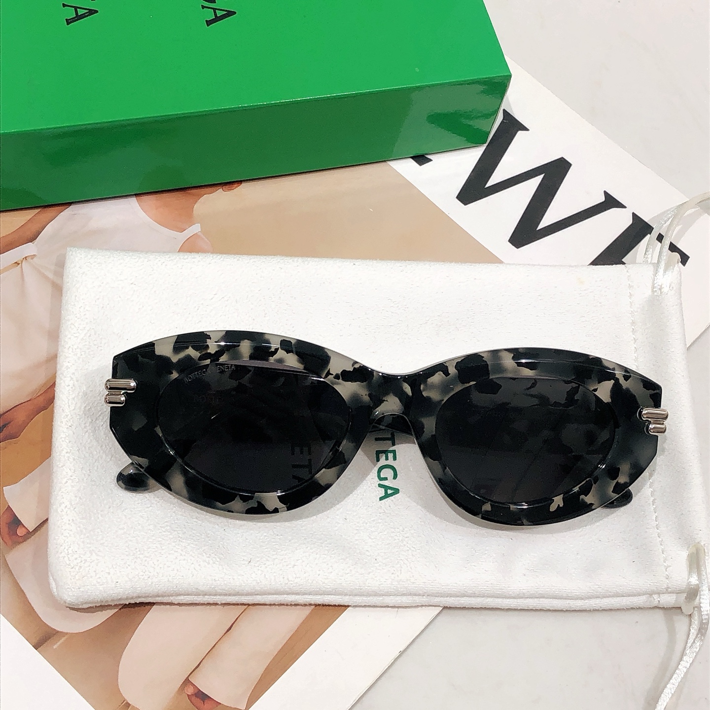 这款太阳眼镜是AAAAA 1:1 质量 (非常棒). 使用了和原版一模一样的材料. 商标部分也保持了和葆蝶家/Bottega Veneta一样. 图片拍摄是实物太阳眼镜拍摄, 您所收到的实物保证和我们图片一模一样.