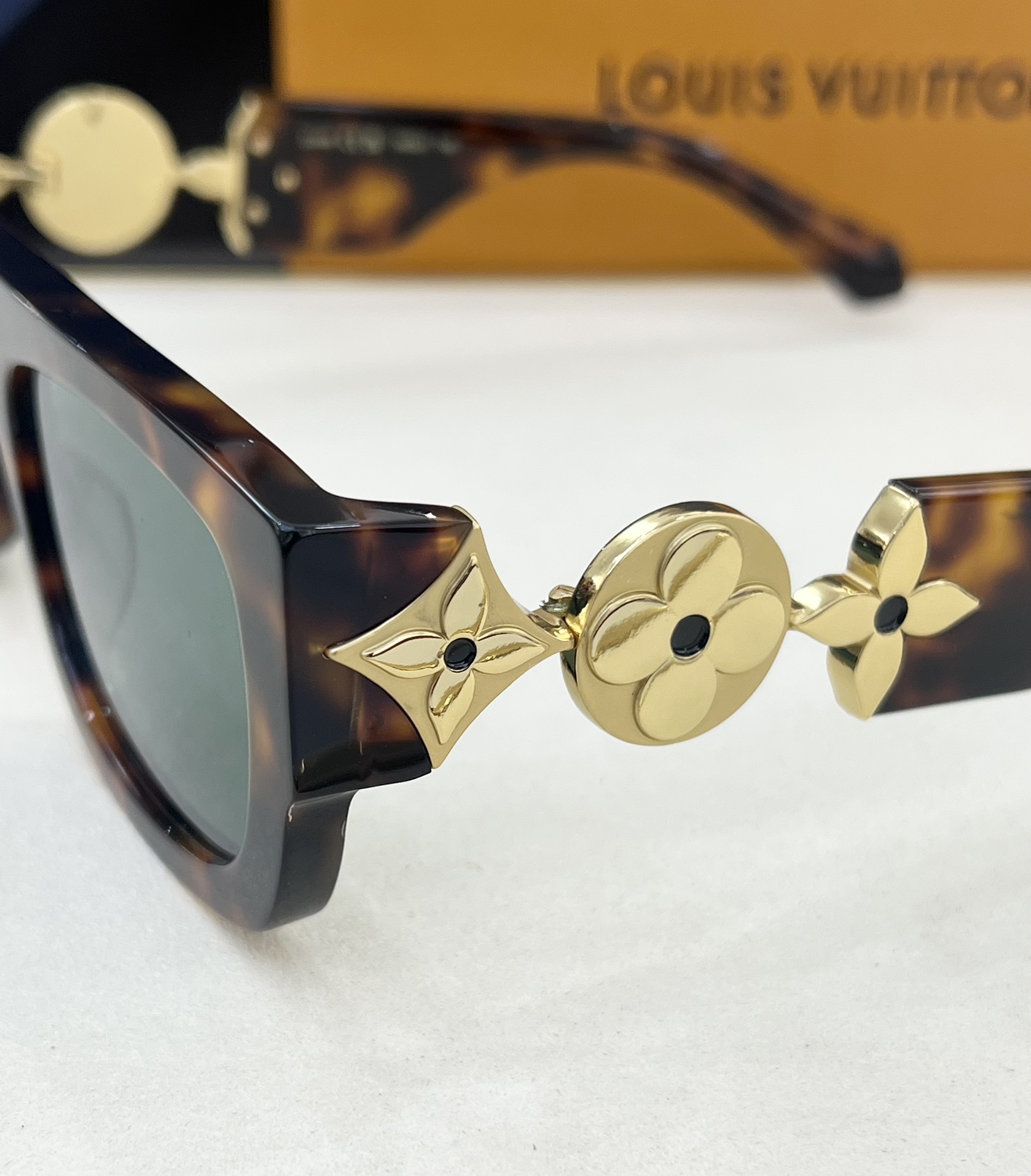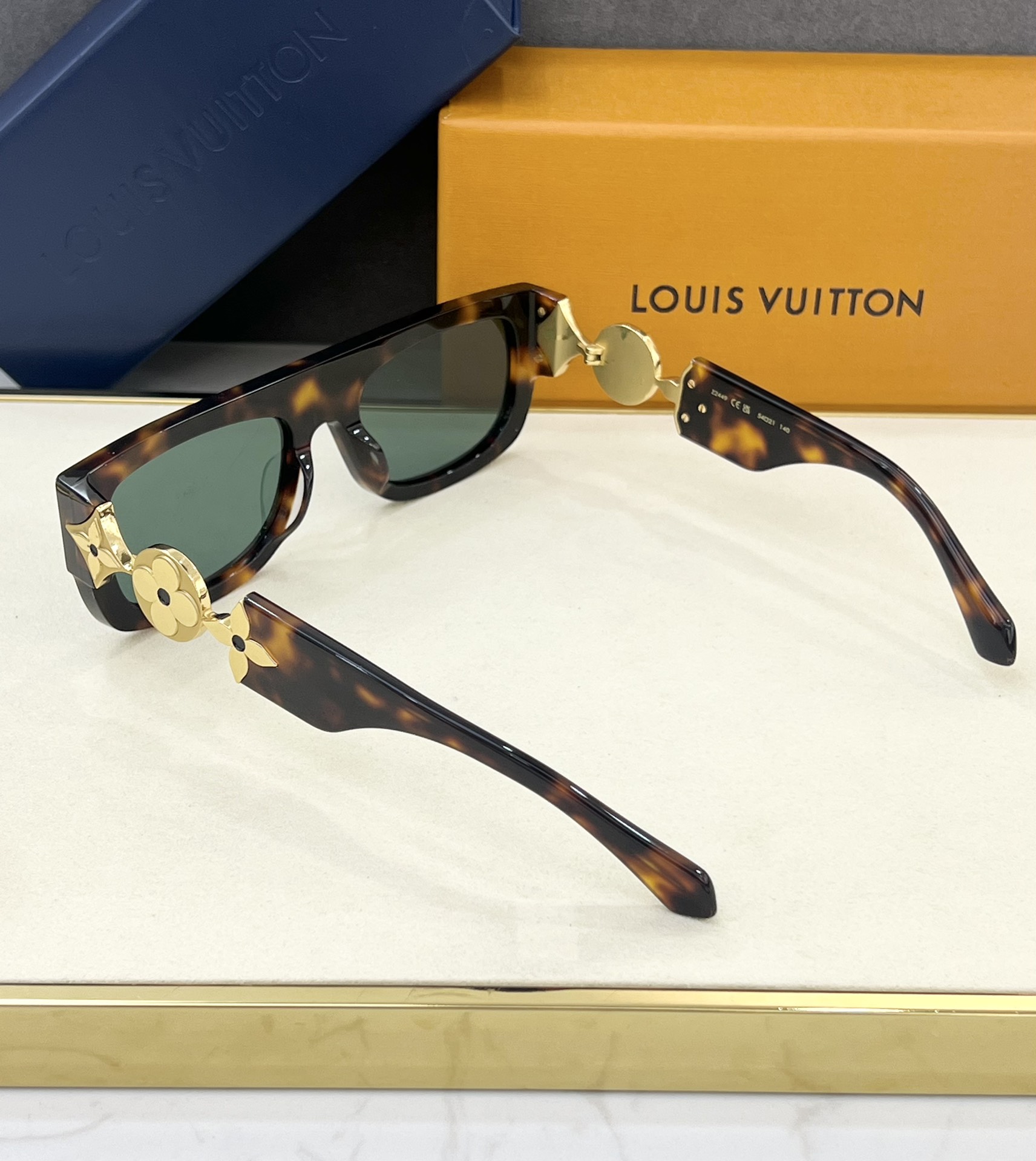 这款太阳眼镜是AAAAA 1:1 质量 (非常棒). 使用了和原版一模一样的材料. 商标部分也保持了和路易威登/Louis Vuitton一样. 图片拍摄是实物太阳眼镜拍摄, 您所收到的实物保证和我们图片一模一样.