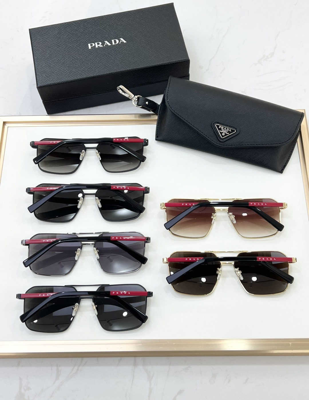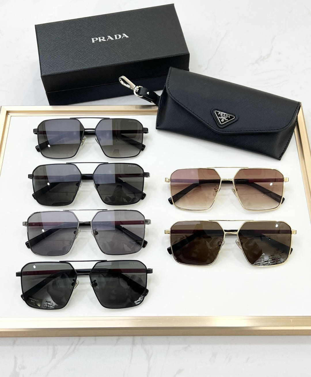 这款太阳眼镜是AAAAA 1:1 质量 (非常棒). 使用了和原版一模一样的材料. 商标部分也保持了和普拉达/Prada一样. 图片拍摄是实物太阳眼镜拍摄, 您所收到的实物保证和我们图片一模一样.