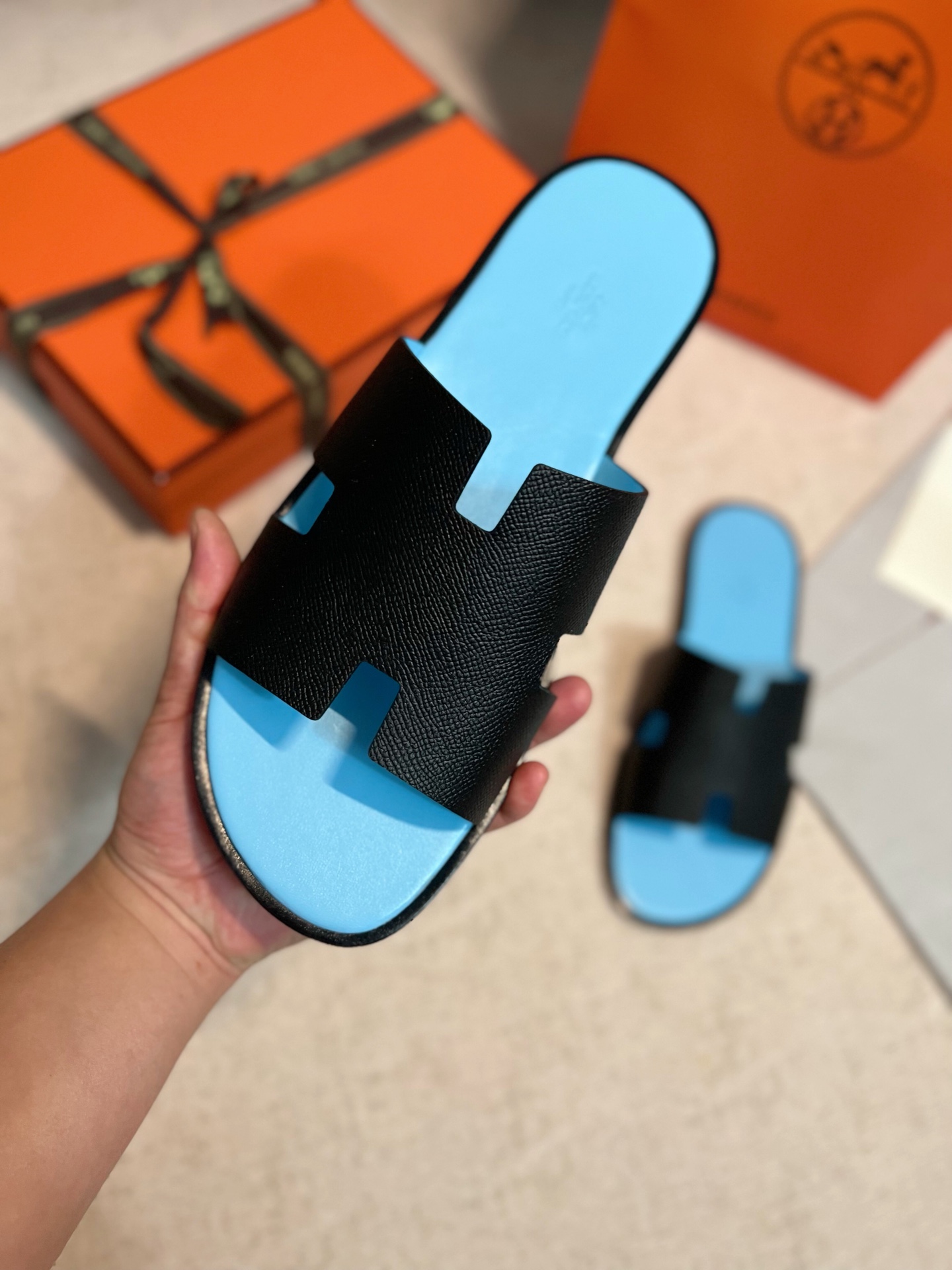 这款鞋子是AAAAA 1:1 质量 (非常棒). 使用了和原版一模一样的材料. 商标部分也保持了和爱马仕/Hermes一样. 图片拍摄是实物鞋子拍摄, 您所收到的实物保证和我们图片一模一样.