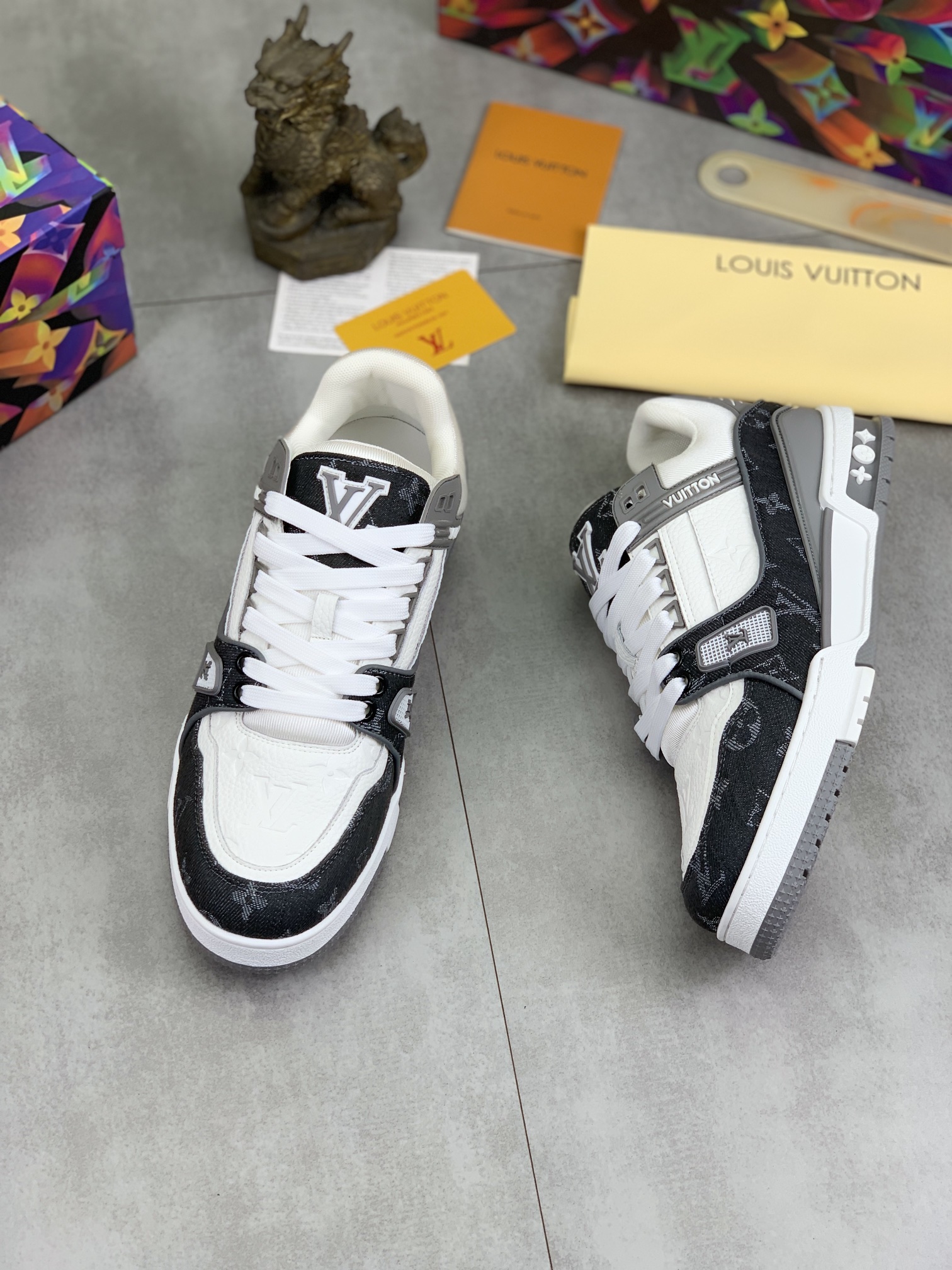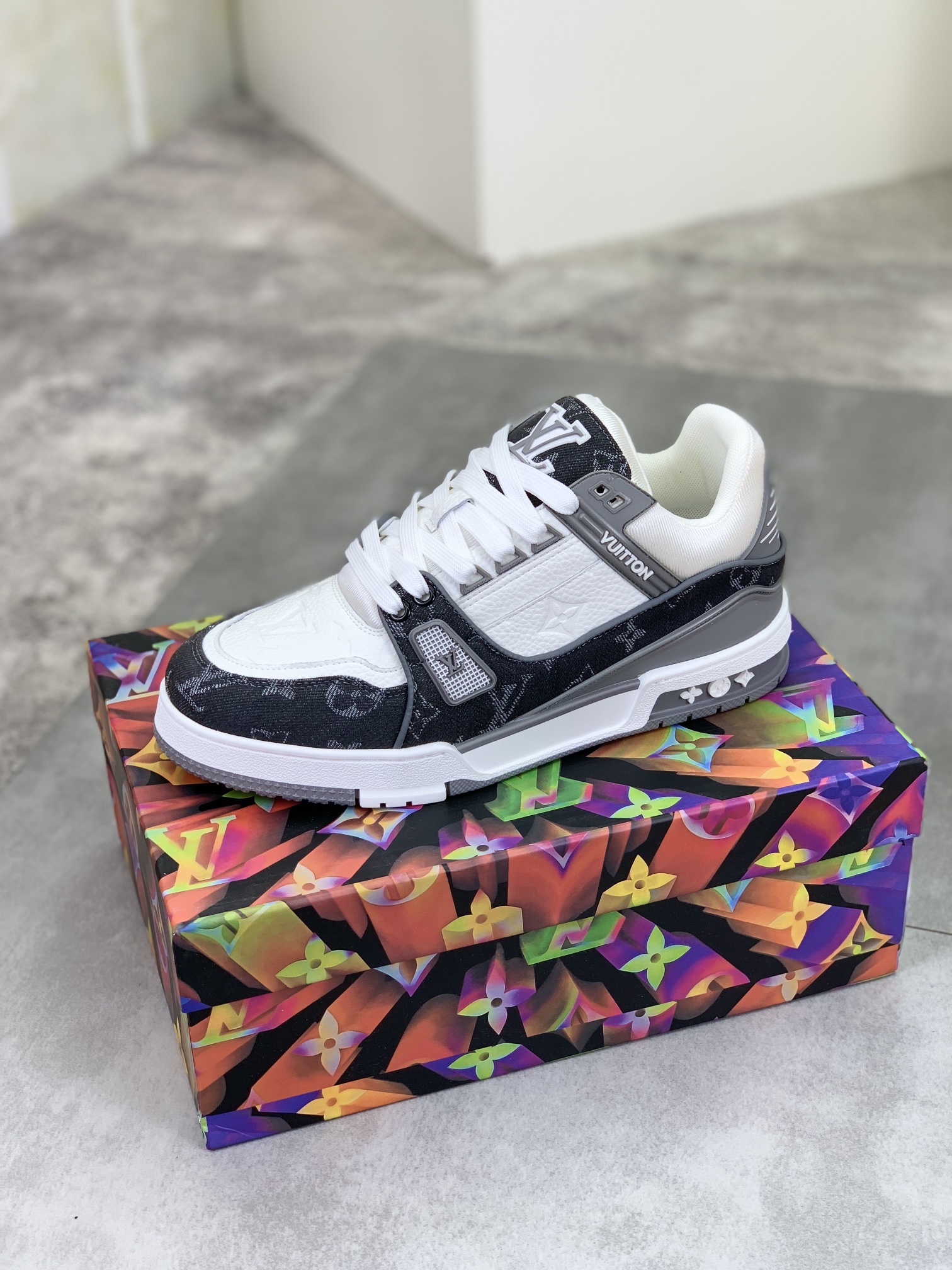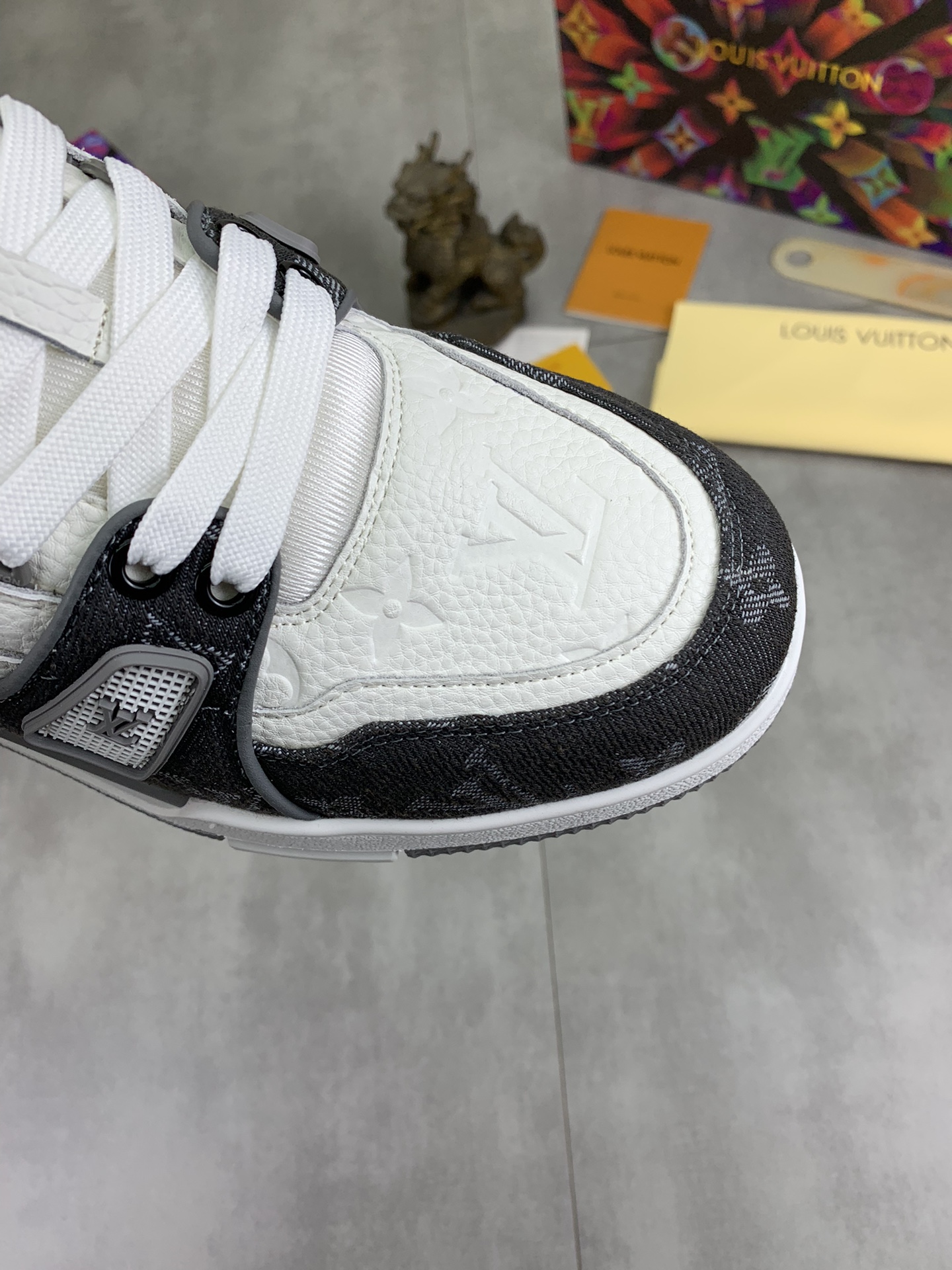 这款鞋子是AAAAA 1:1 质量 (非常棒). 使用了和原版一模一样的材料. 商标部分也保持了和路易威登/Louis Vuitton一样. 图片拍摄是实物鞋子拍摄, 您所收到的实物保证和我们图片一模一样.