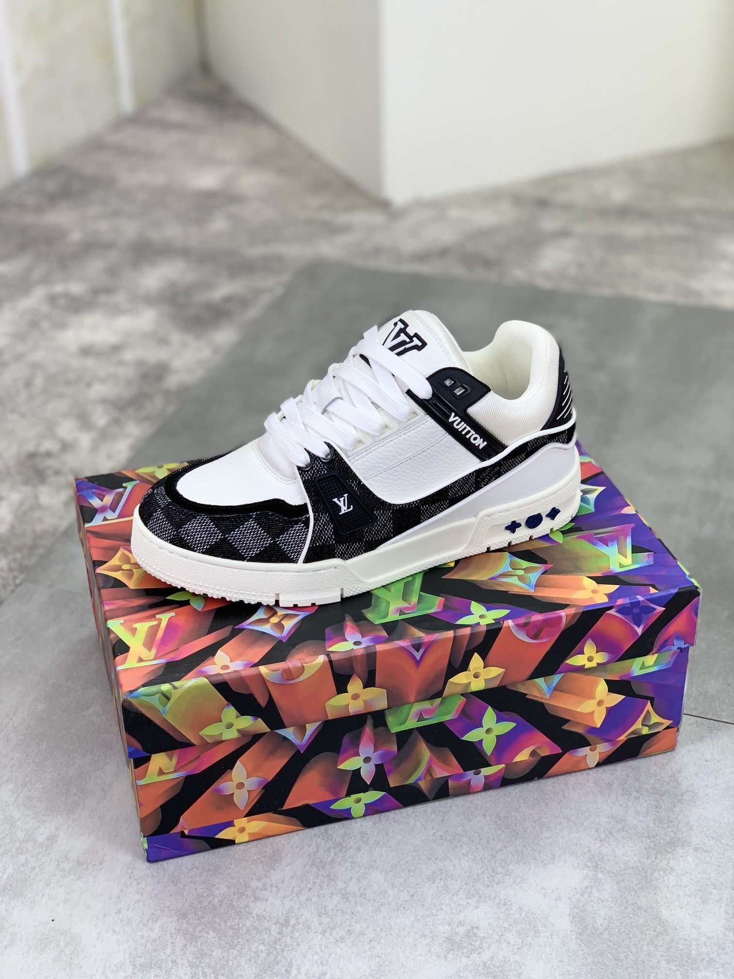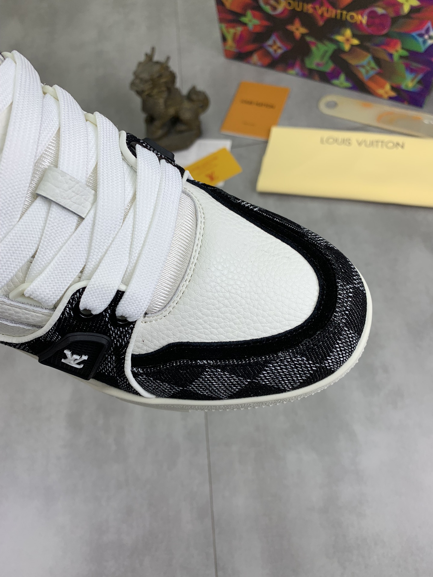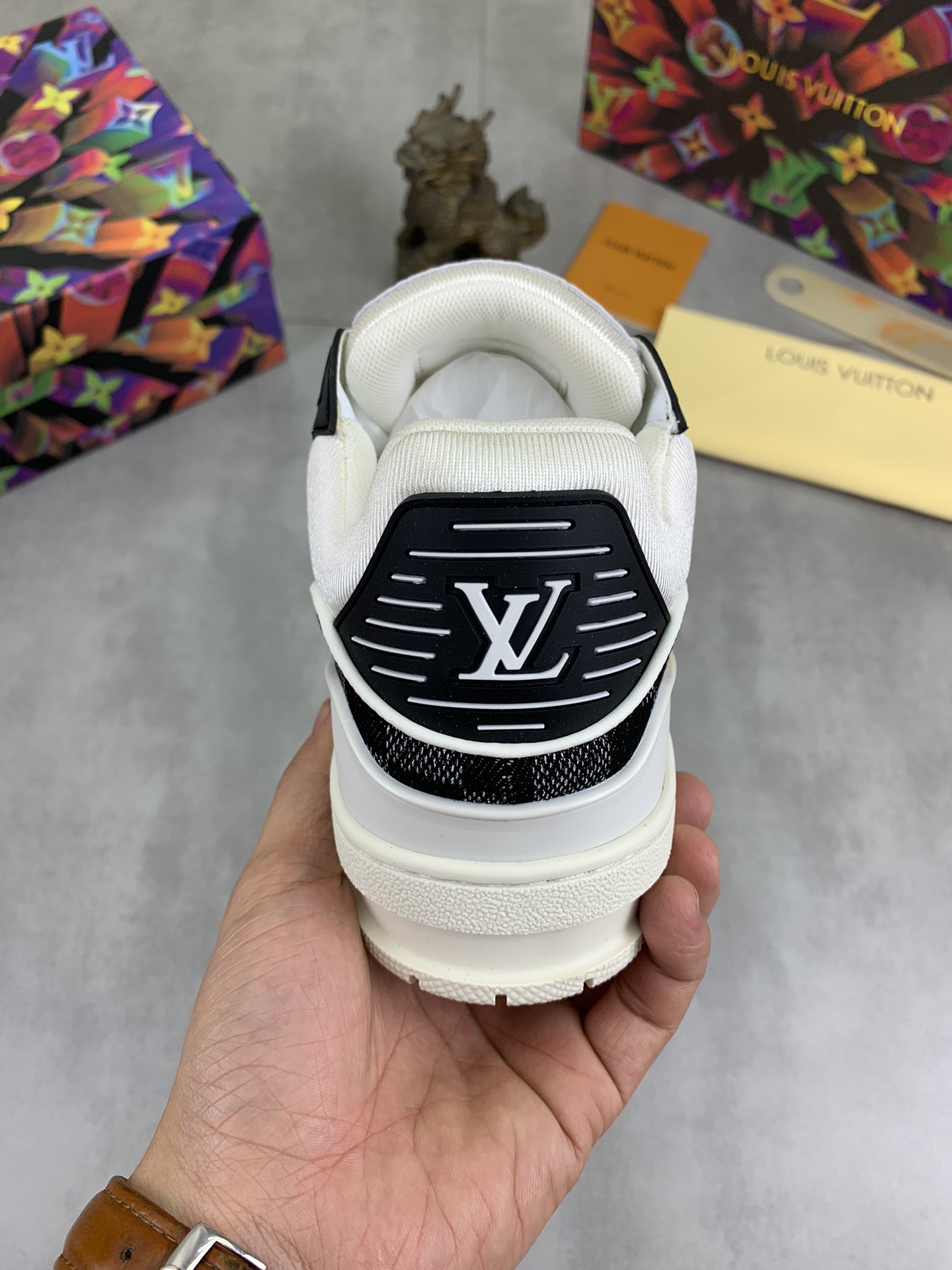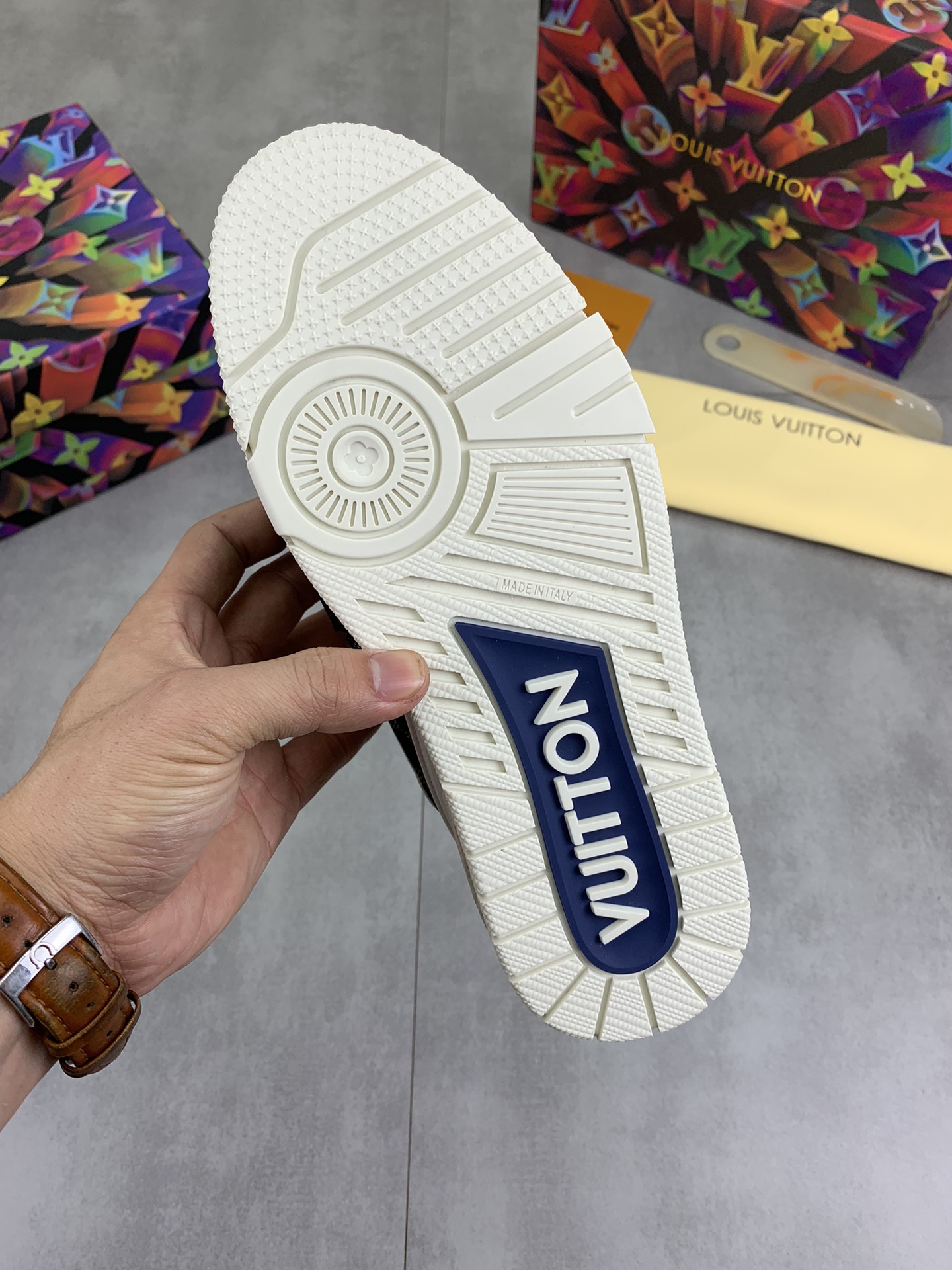 这款鞋子是AAAAA 1:1 质量 (非常棒). 使用了和原版一模一样的材料. 商标部分也保持了和路易威登/Louis Vuitton一样. 图片拍摄是实物鞋子拍摄, 您所收到的实物保证和我们图片一模一样.