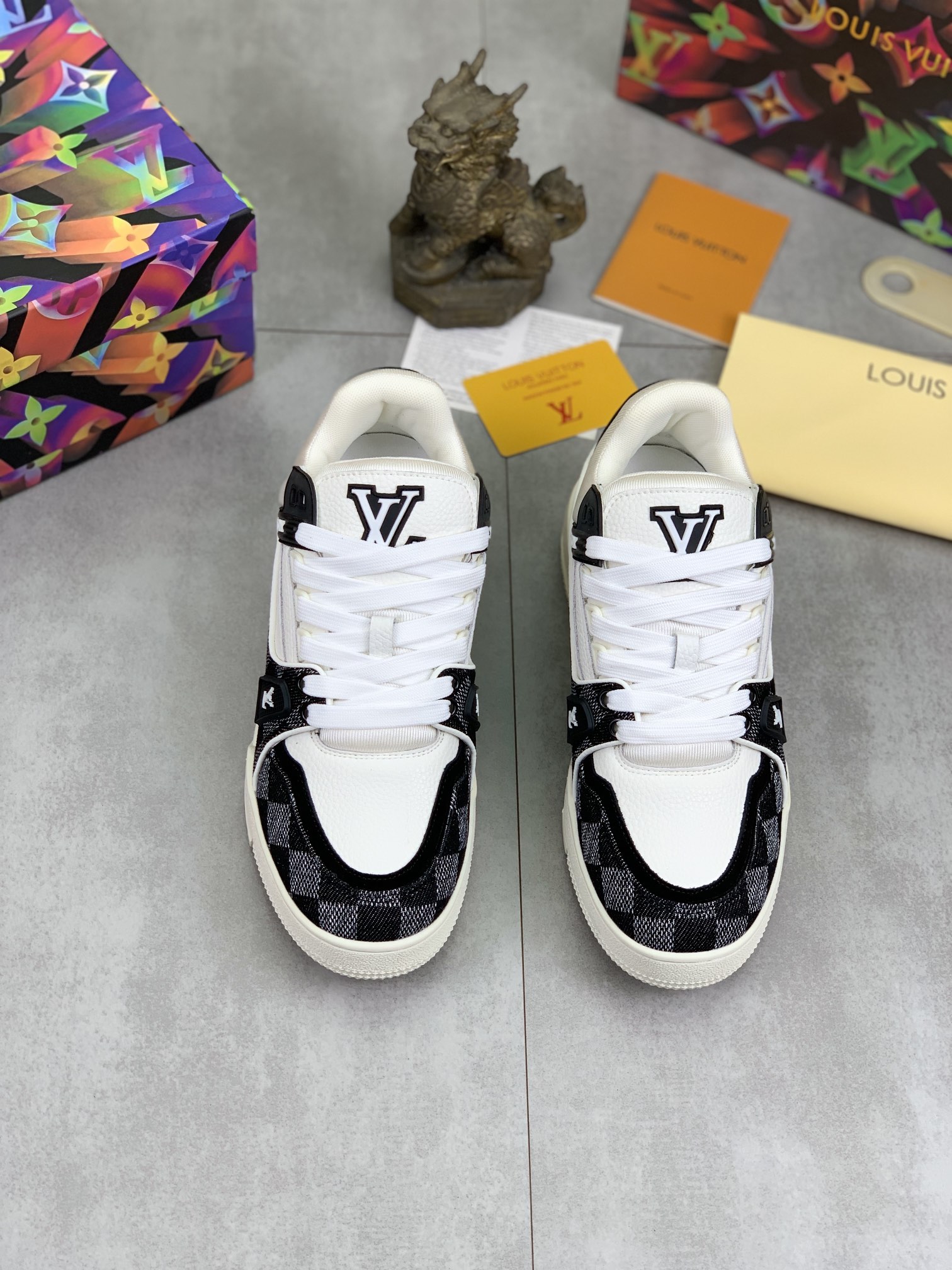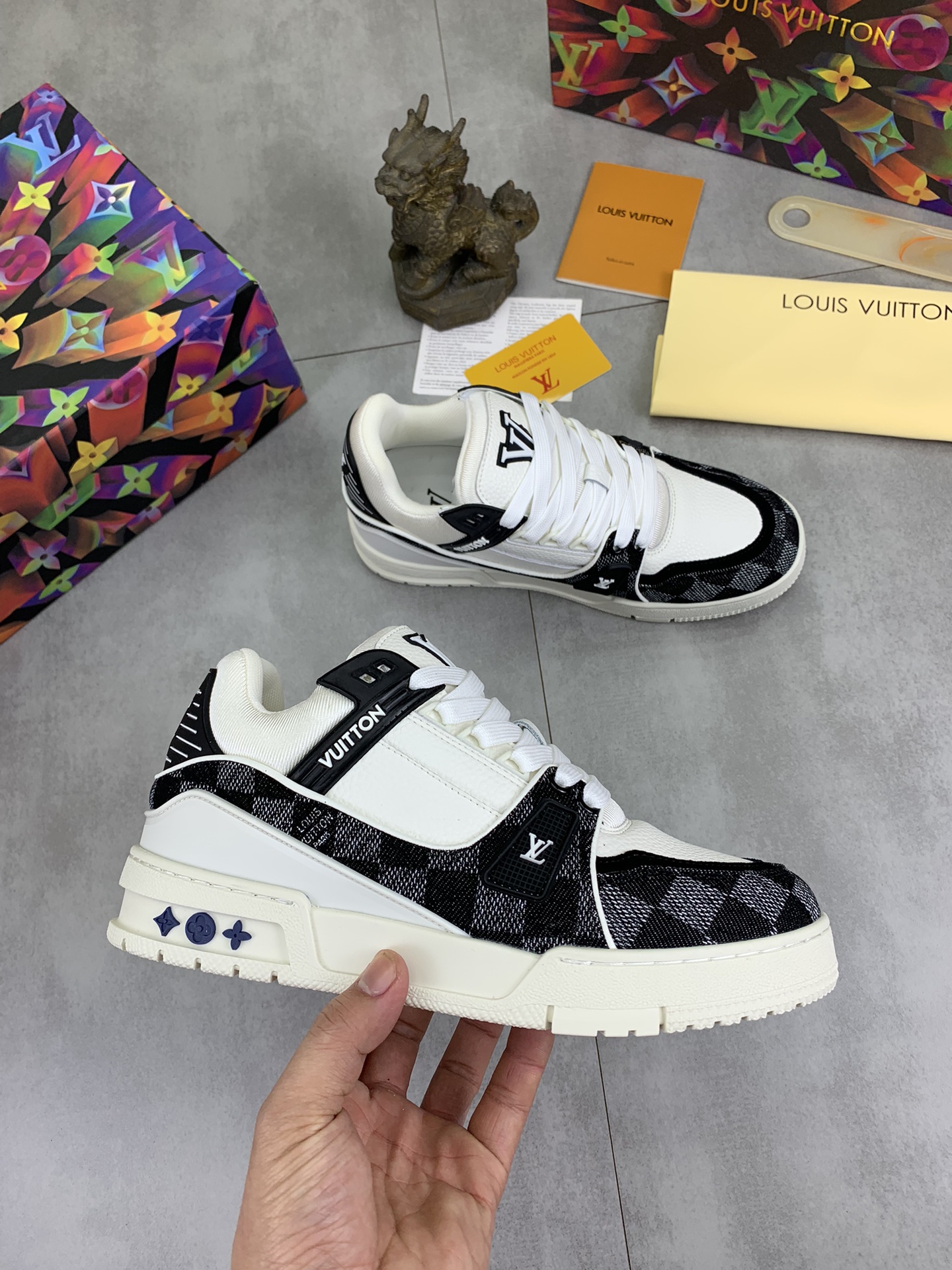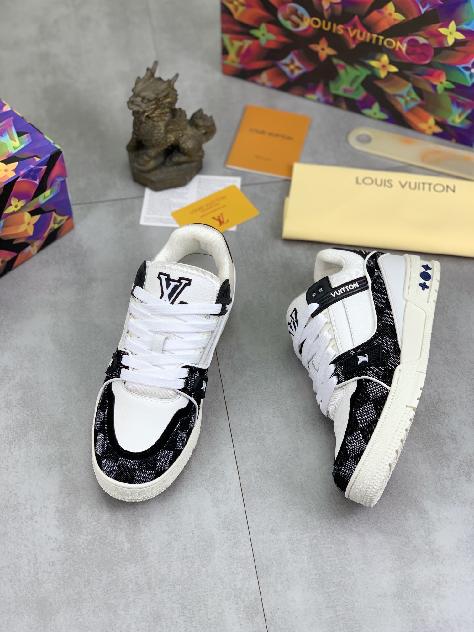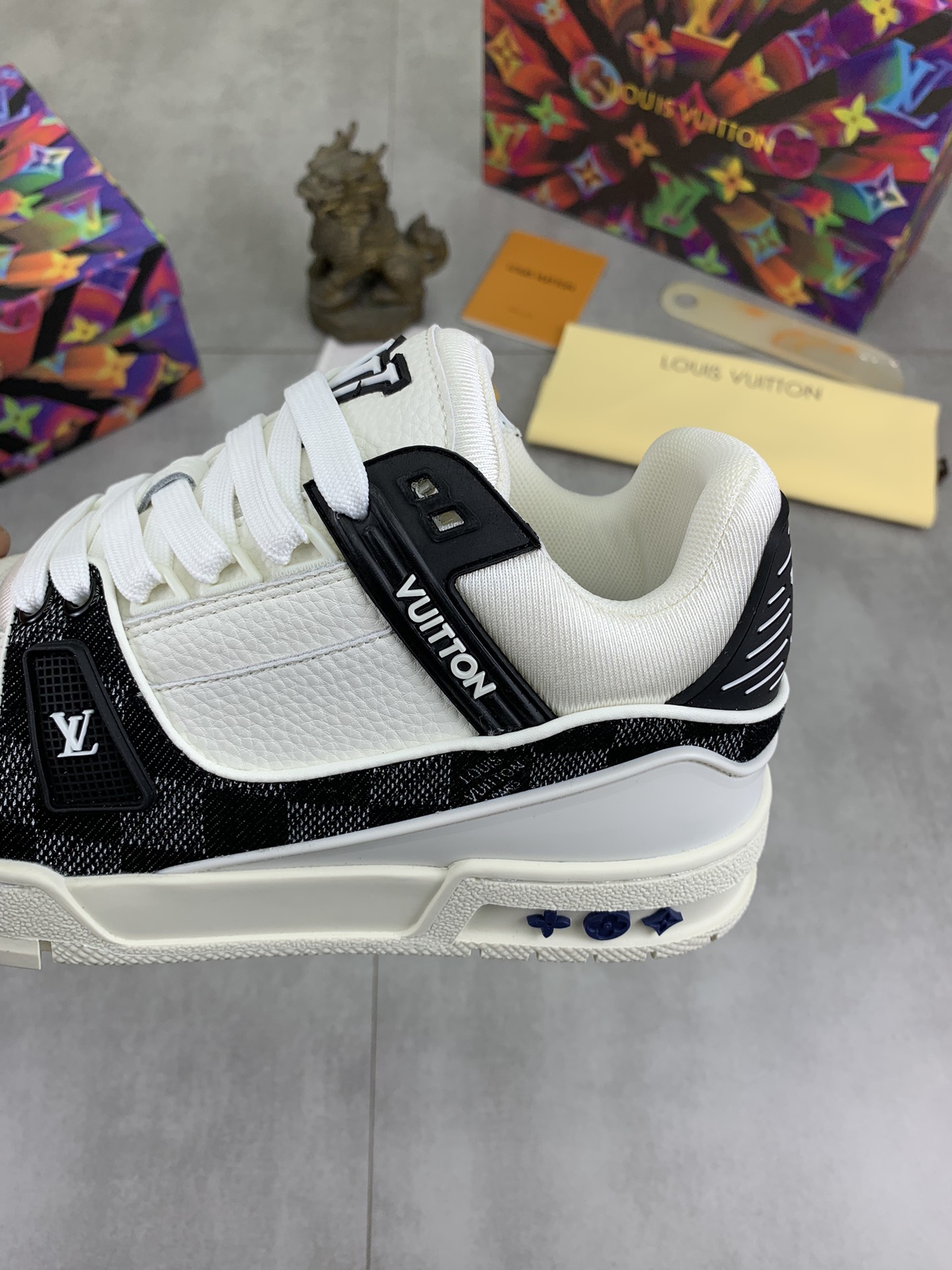 这款鞋子是AAAAA 1:1 质量 (非常棒). 使用了和原版一模一样的材料. 商标部分也保持了和路易威登/Louis Vuitton一样. 图片拍摄是实物鞋子拍摄, 您所收到的实物保证和我们图片一模一样.
