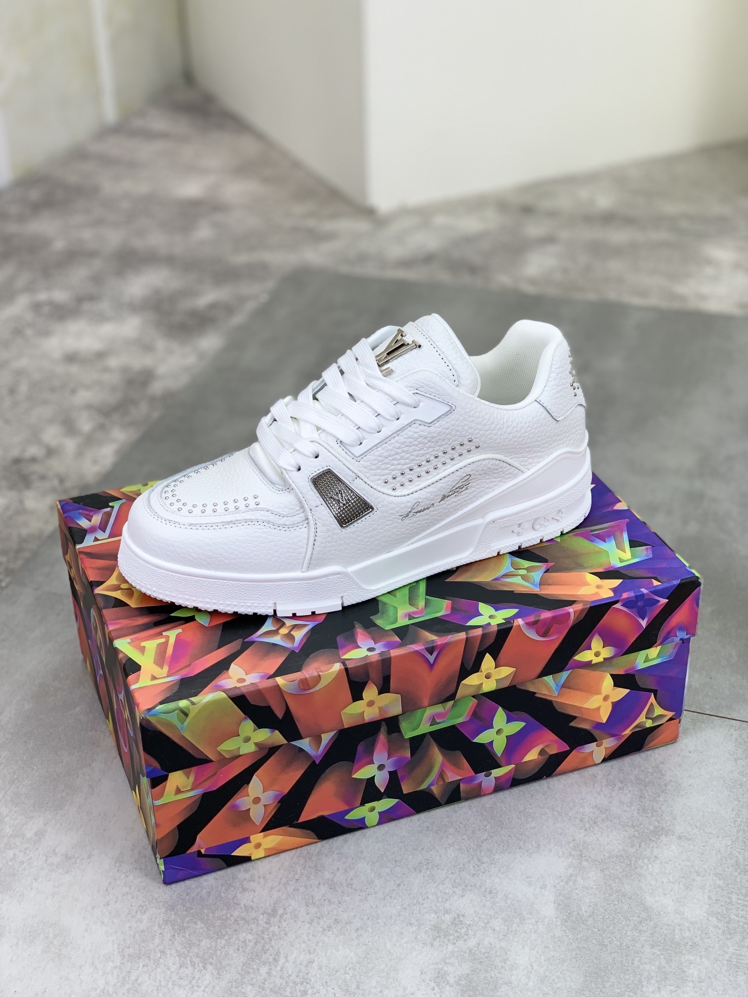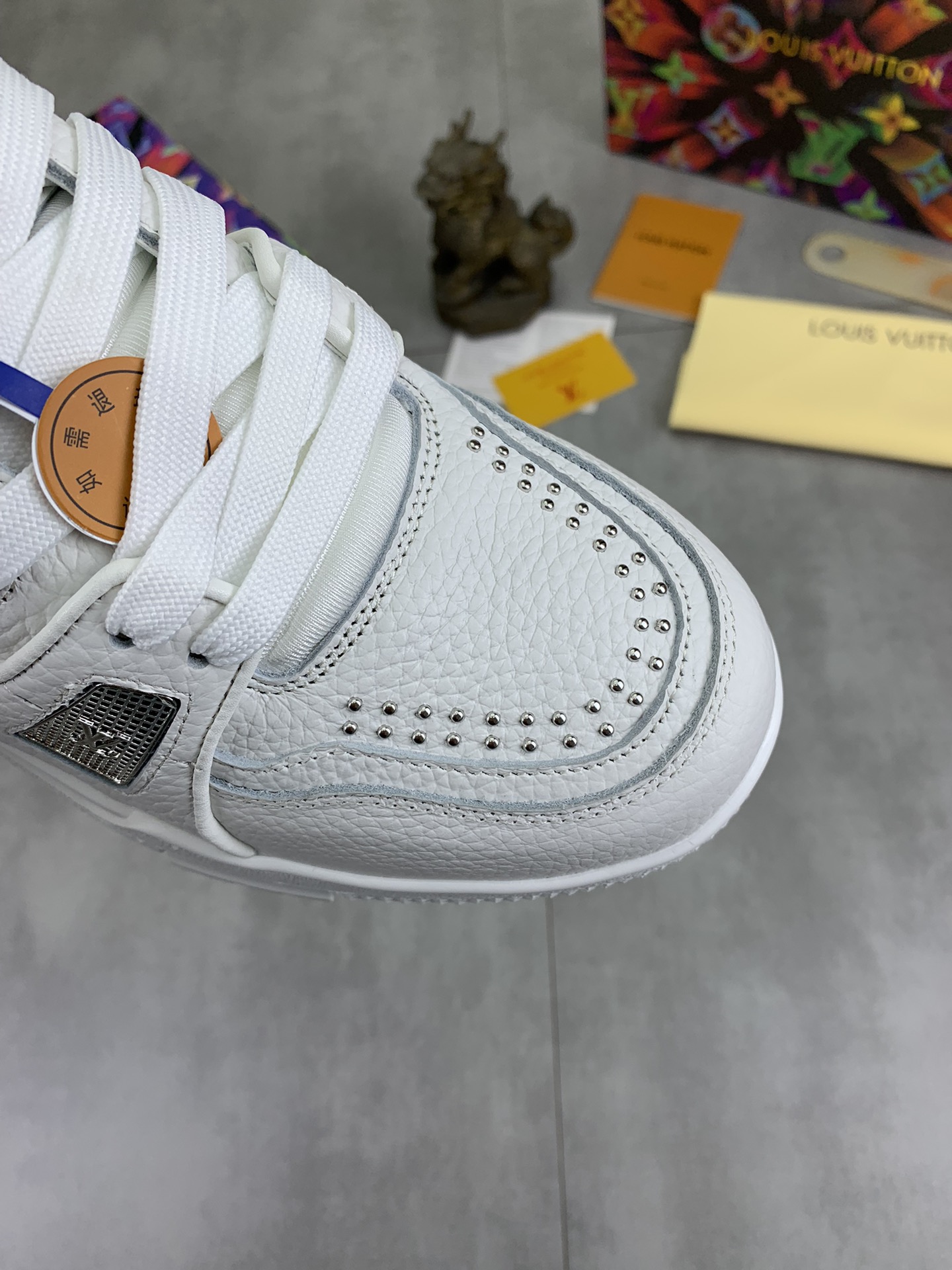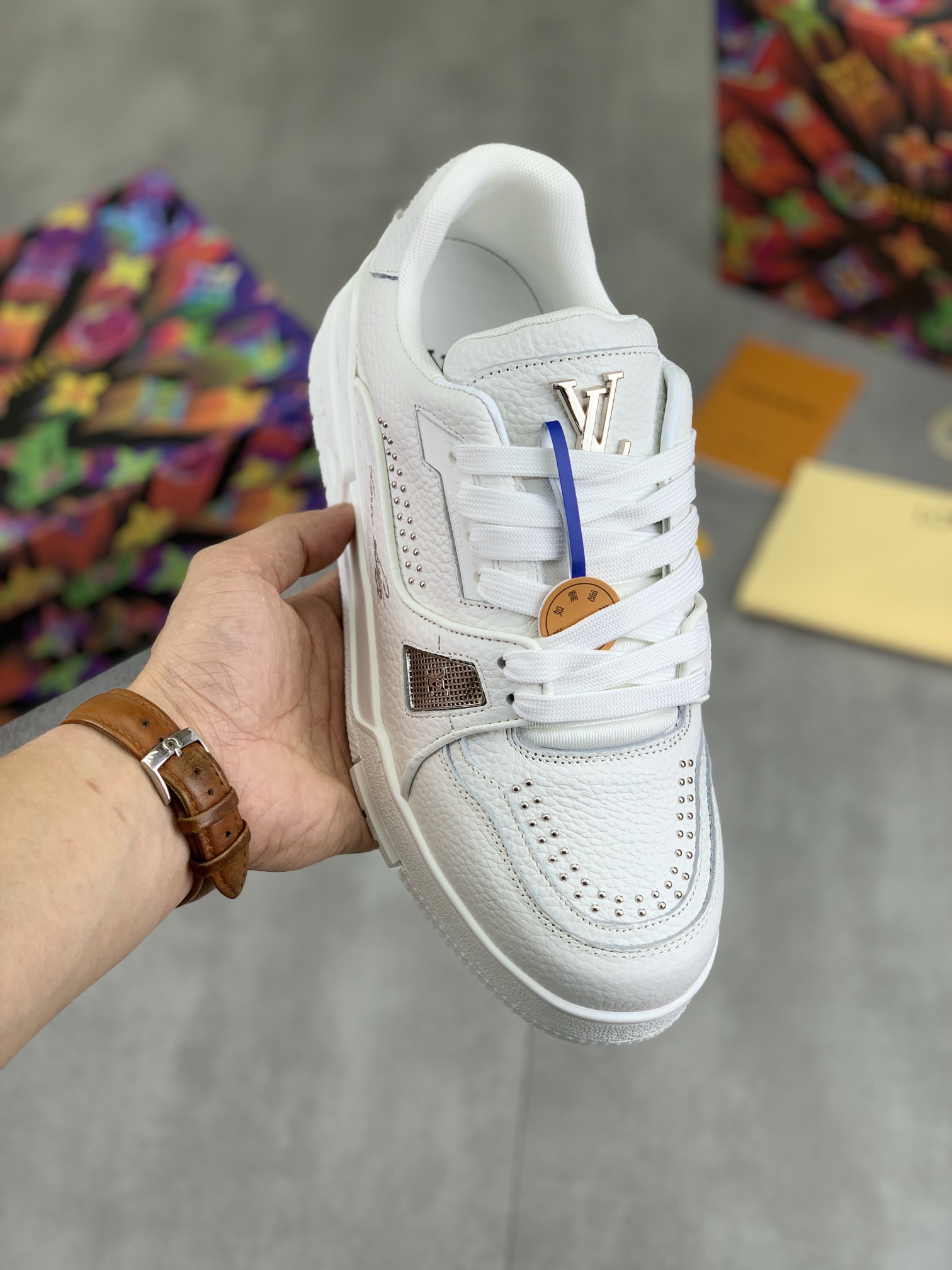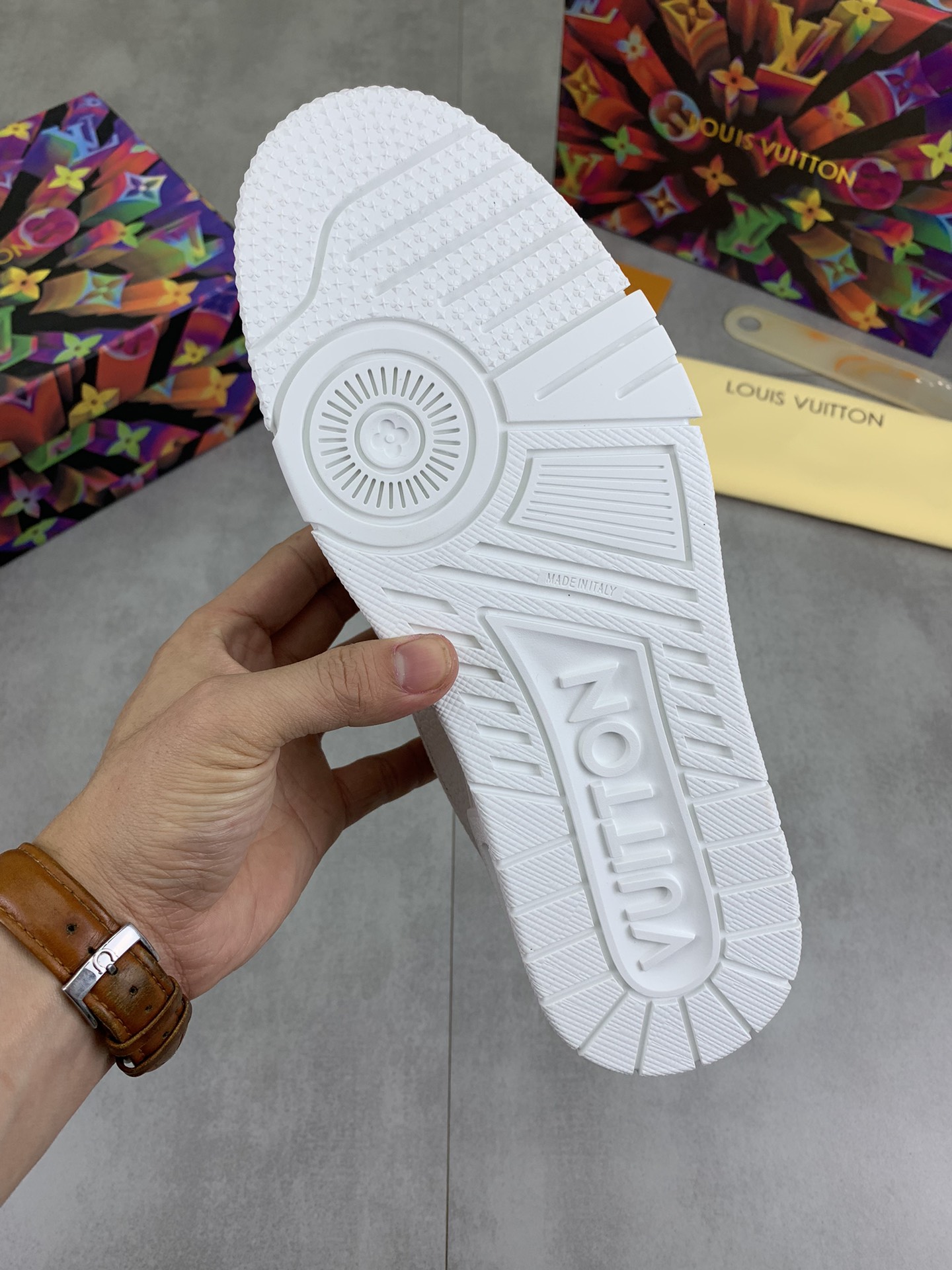 这款鞋子是AAAAA 1:1 质量 (非常棒). 使用了和原版一模一样的材料. 商标部分也保持了和路易威登/Louis Vuitton一样. 图片拍摄是实物鞋子拍摄, 您所收到的实物保证和我们图片一模一样.