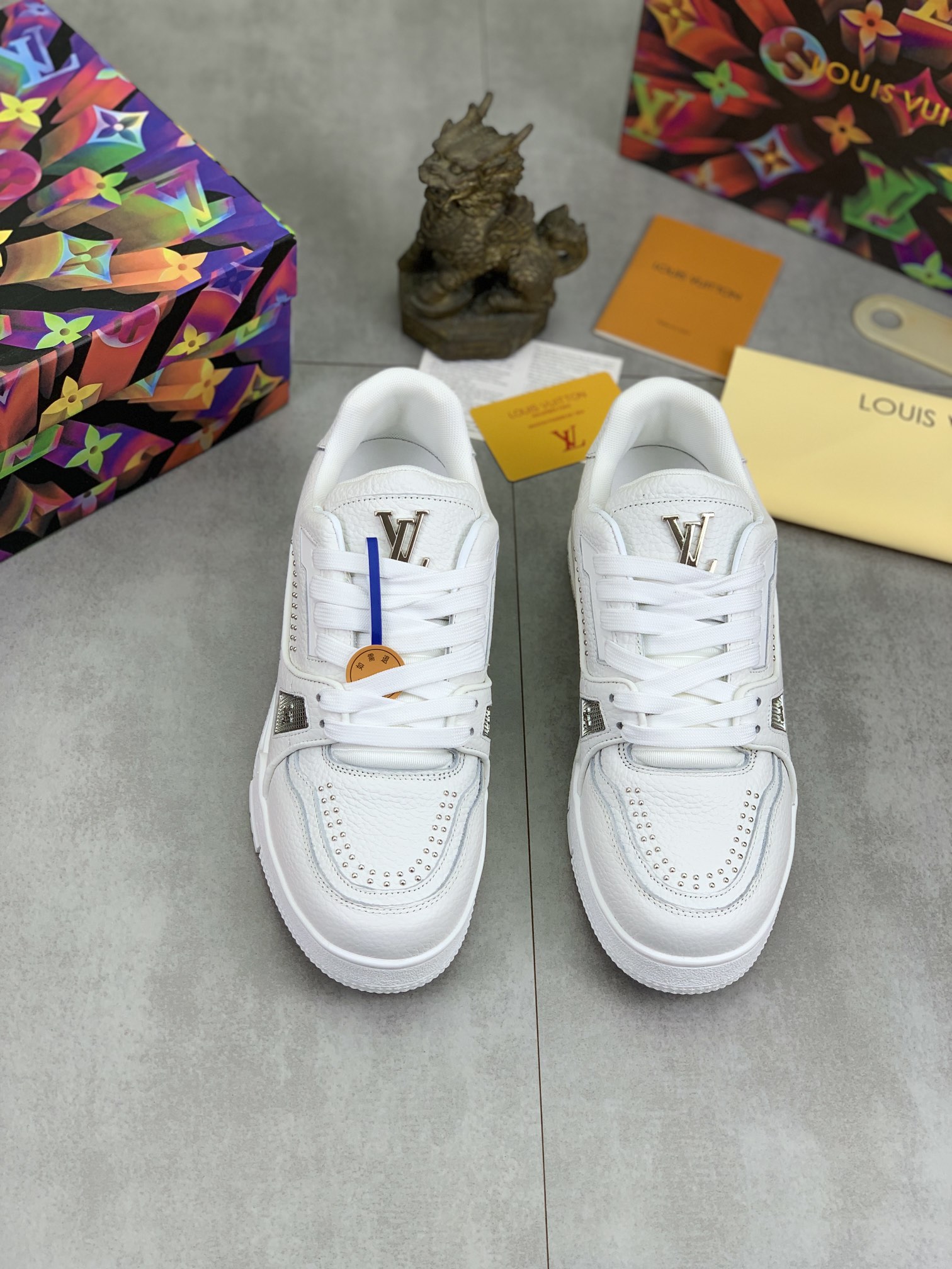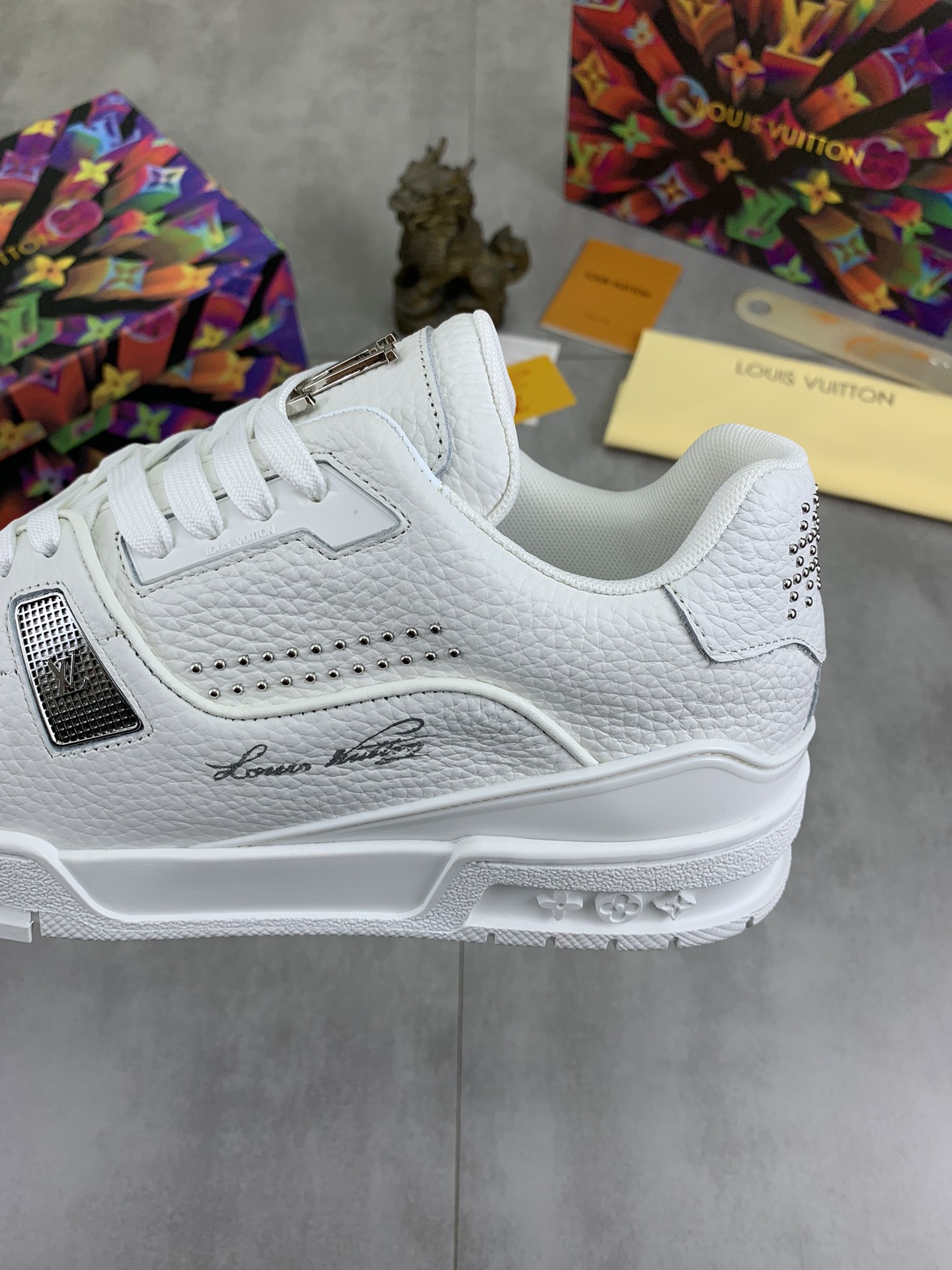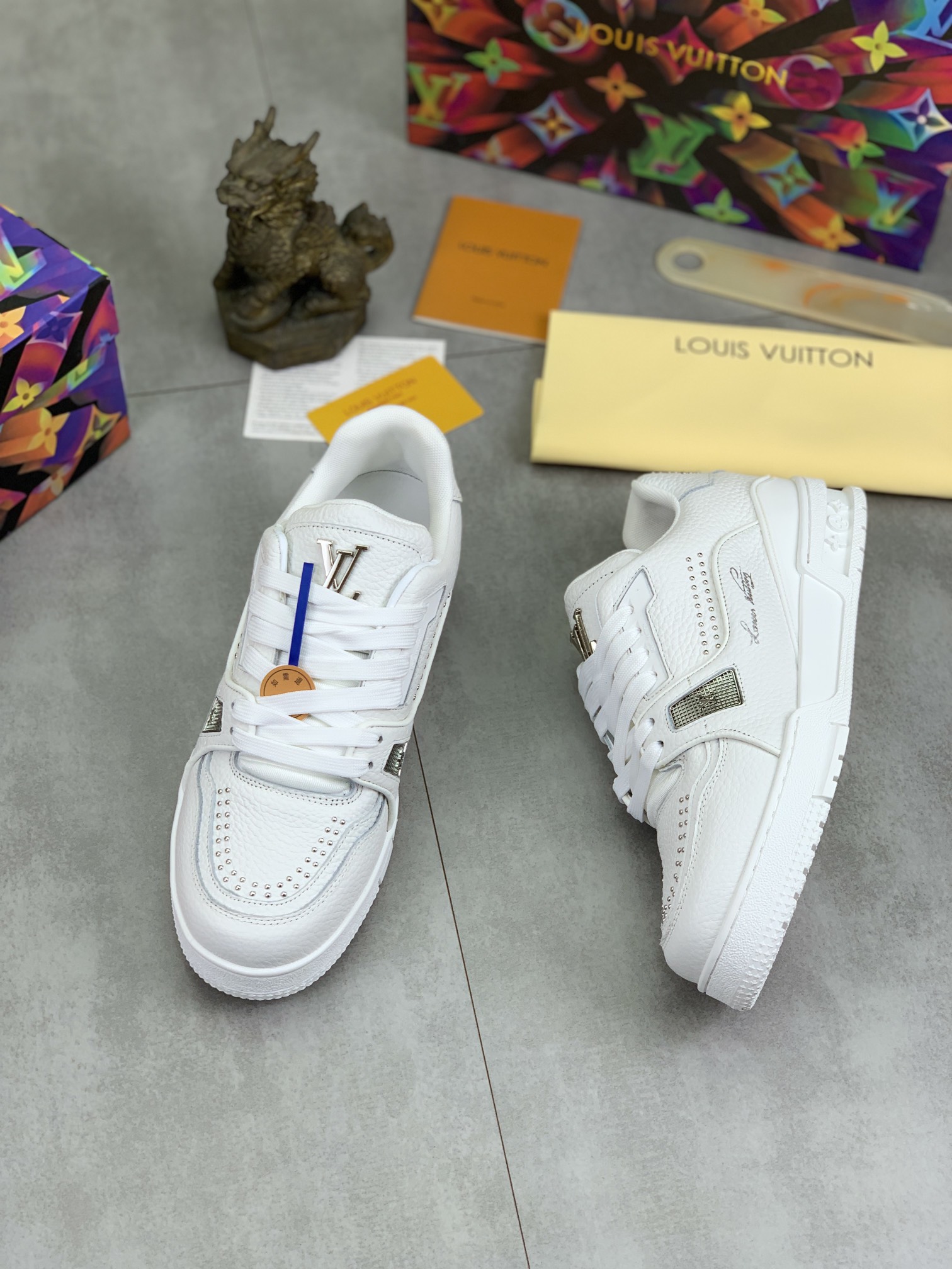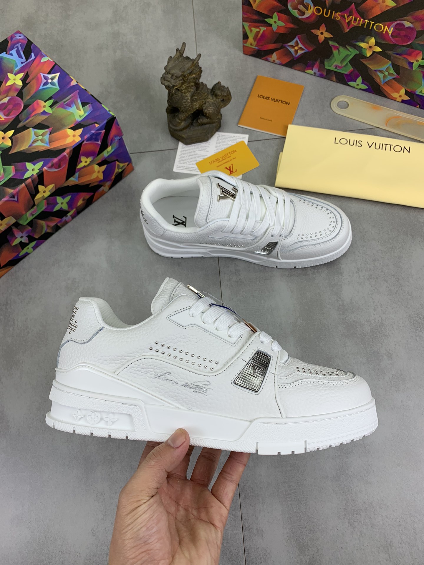 这款鞋子是AAAAA 1:1 质量 (非常棒). 使用了和原版一模一样的材料. 商标部分也保持了和路易威登/Louis Vuitton一样. 图片拍摄是实物鞋子拍摄, 您所收到的实物保证和我们图片一模一样.