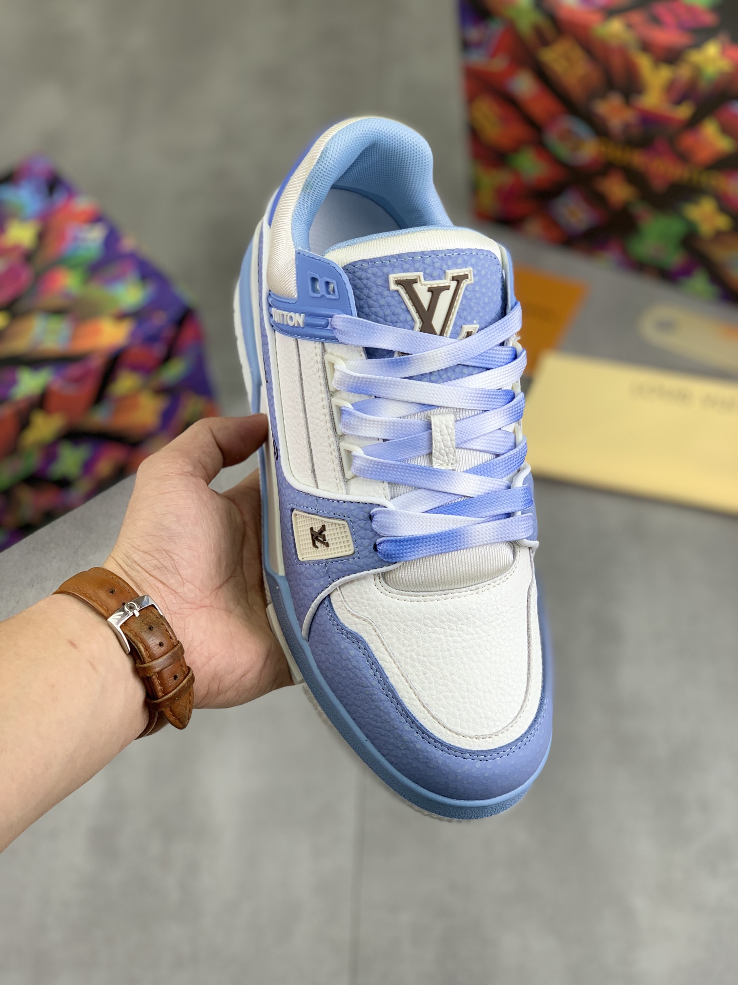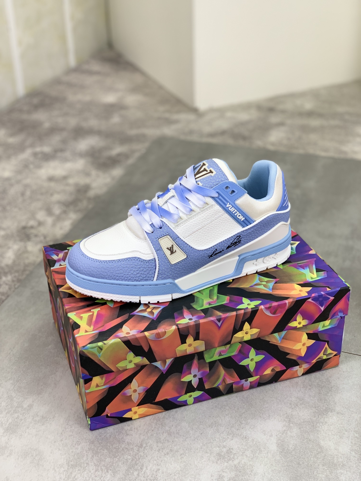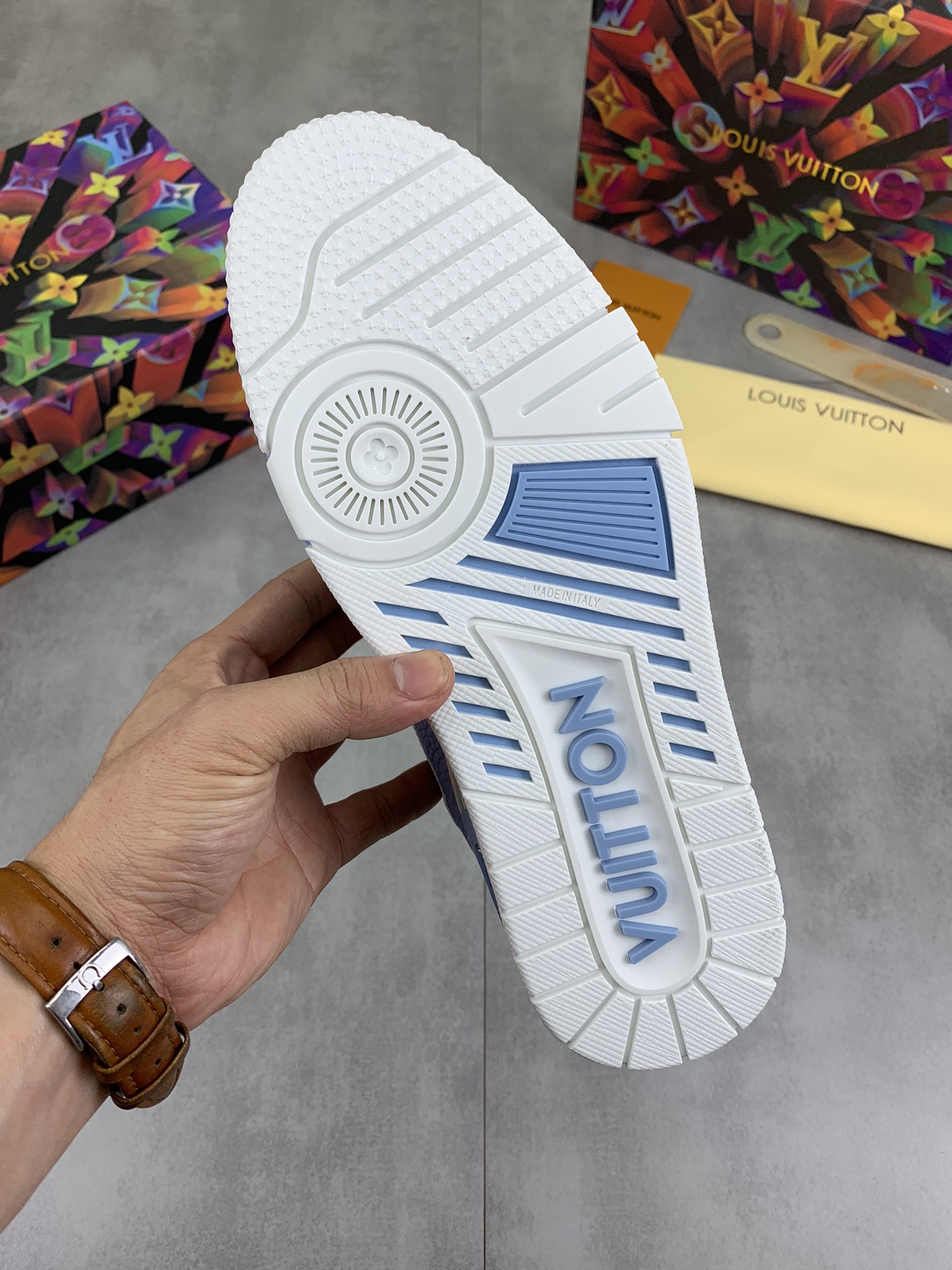 这款鞋子是AAAAA 1:1 质量 (非常棒). 使用了和原版一模一样的材料. 商标部分也保持了和路易威登/Louis Vuitton一样. 图片拍摄是实物鞋子拍摄, 您所收到的实物保证和我们图片一模一样.