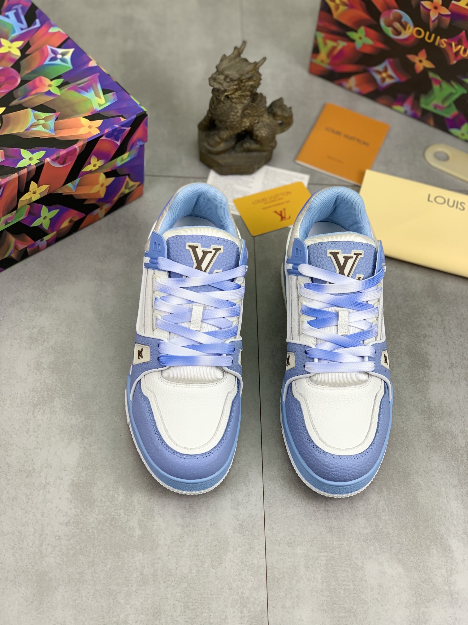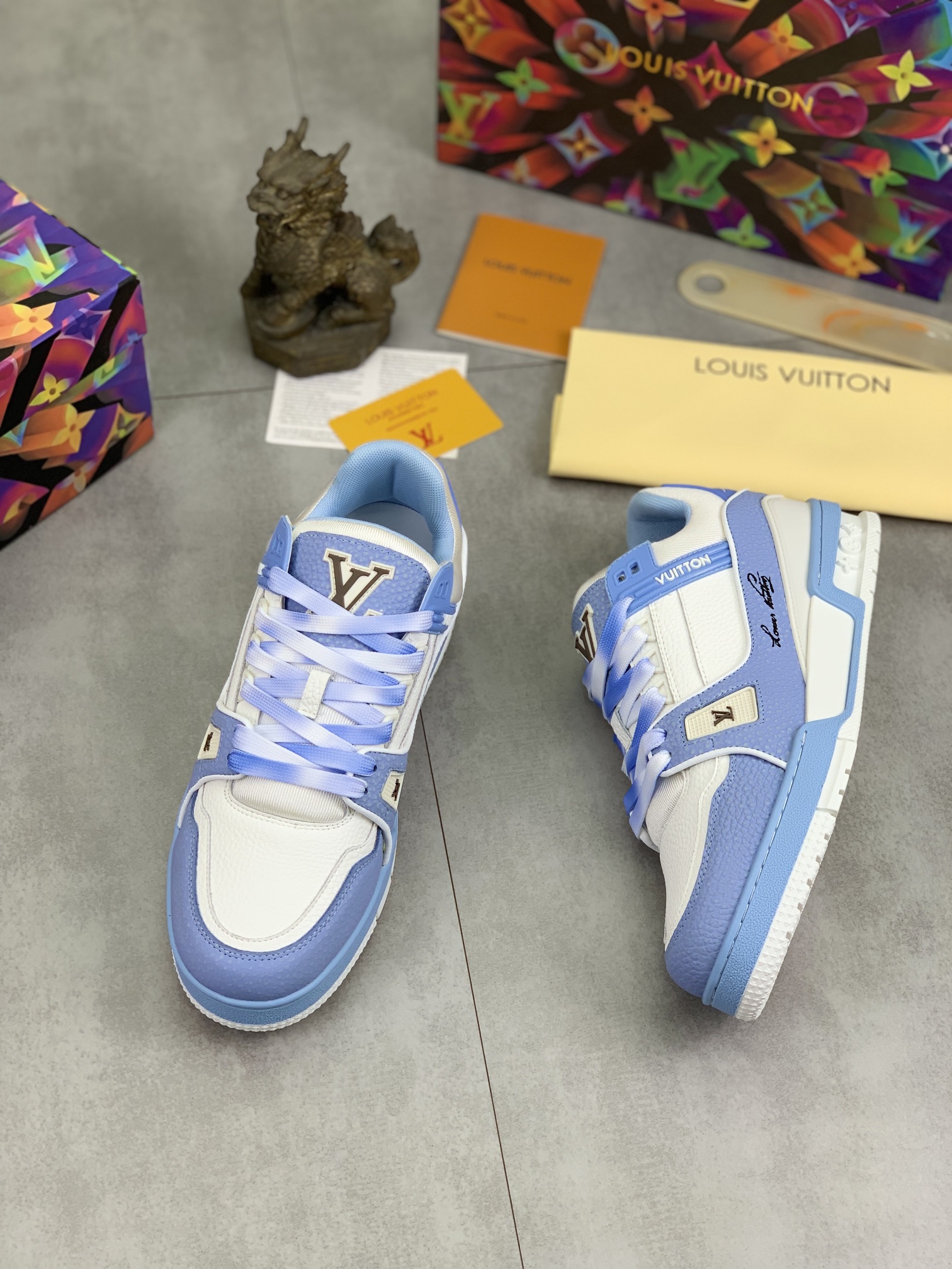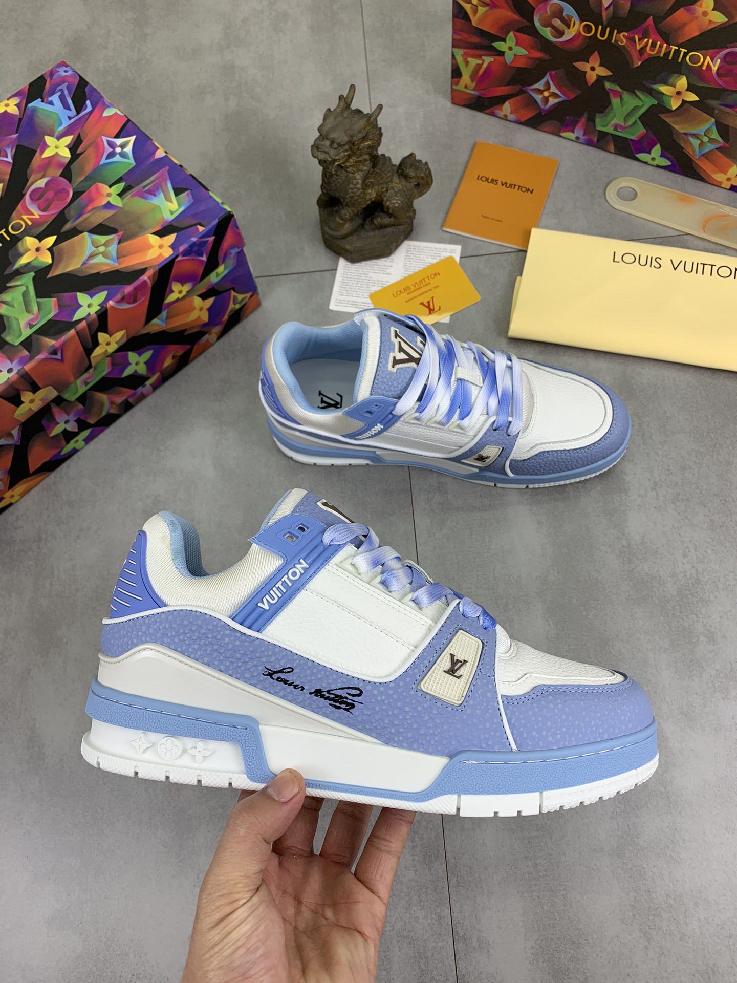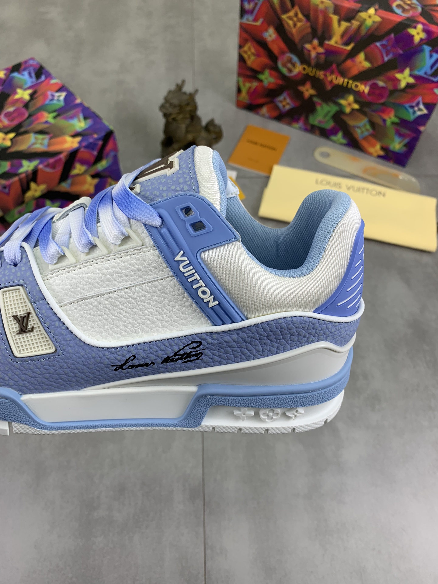 这款鞋子是AAAAA 1:1 质量 (非常棒). 使用了和原版一模一样的材料. 商标部分也保持了和路易威登/Louis Vuitton一样. 图片拍摄是实物鞋子拍摄, 您所收到的实物保证和我们图片一模一样.