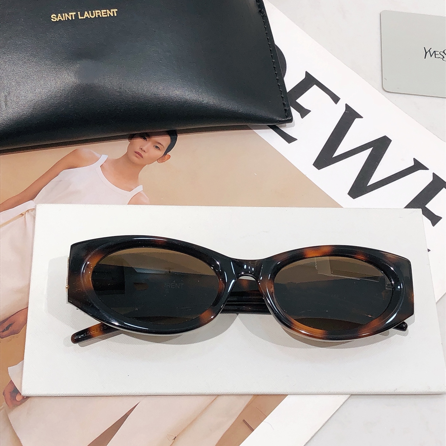 这款太阳眼镜是AAAAA 1:1 质量 (非常棒). 使用了和原版一模一样的材料. 商标部分也保持了和圣罗兰/Saint Laurent一样. 图片拍摄是实物太阳眼镜拍摄, 您所收到的实物保证和我们图片一模一样.