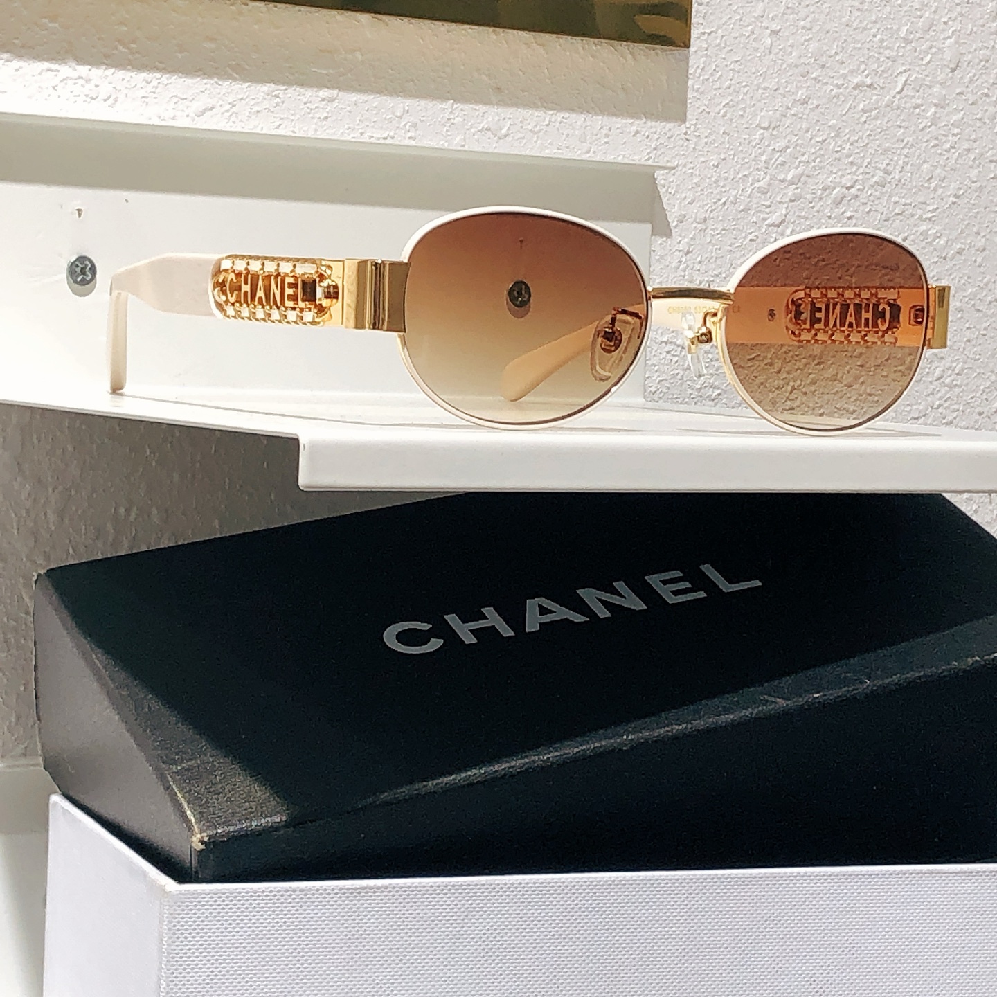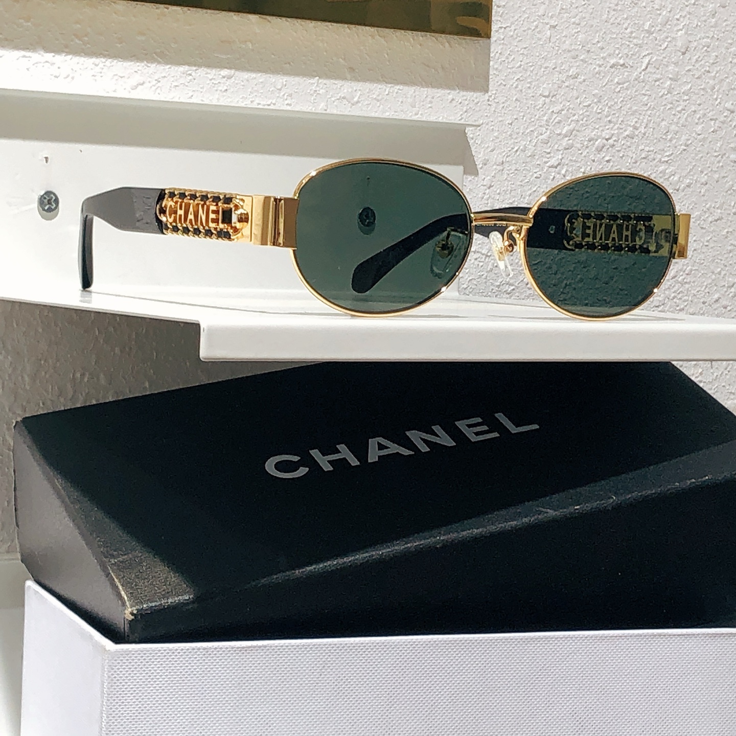 这款太阳眼镜是AAAAA 1:1 质量 (非常棒). 使用了和原版一模一样的材料. 商标部分也保持了和香奈儿/Chanel一样. 图片拍摄是实物太阳眼镜拍摄, 您所收到的实物保证和我们图片一模一样.