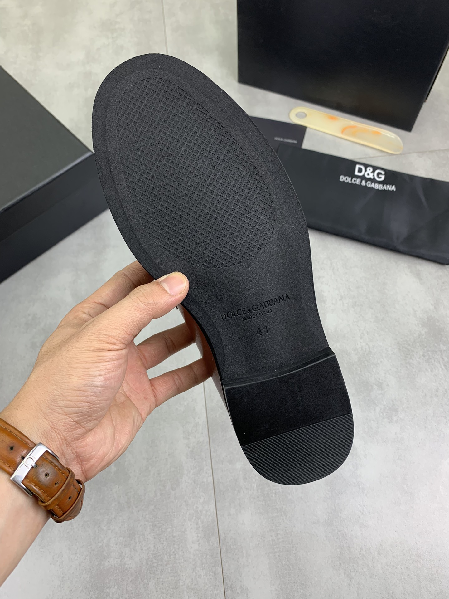 这款鞋子是AAAAA 1:1 质量 (非常棒). 使用了和原版一模一样的材料. 商标部分也保持了和杜嘉班纳/Dolce&Gabbana一样. 图片拍摄是实物鞋子拍摄, 您所收到的实物保证和我们图片一模一样.
