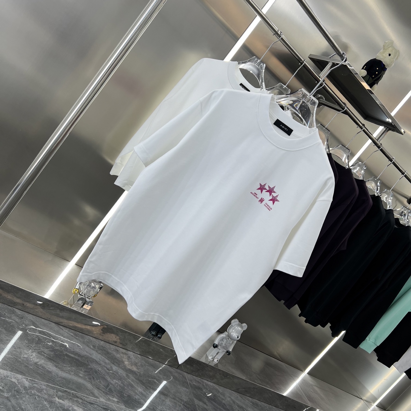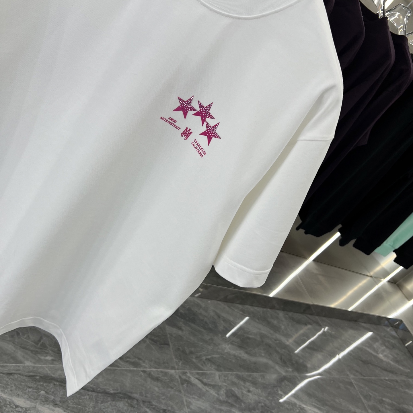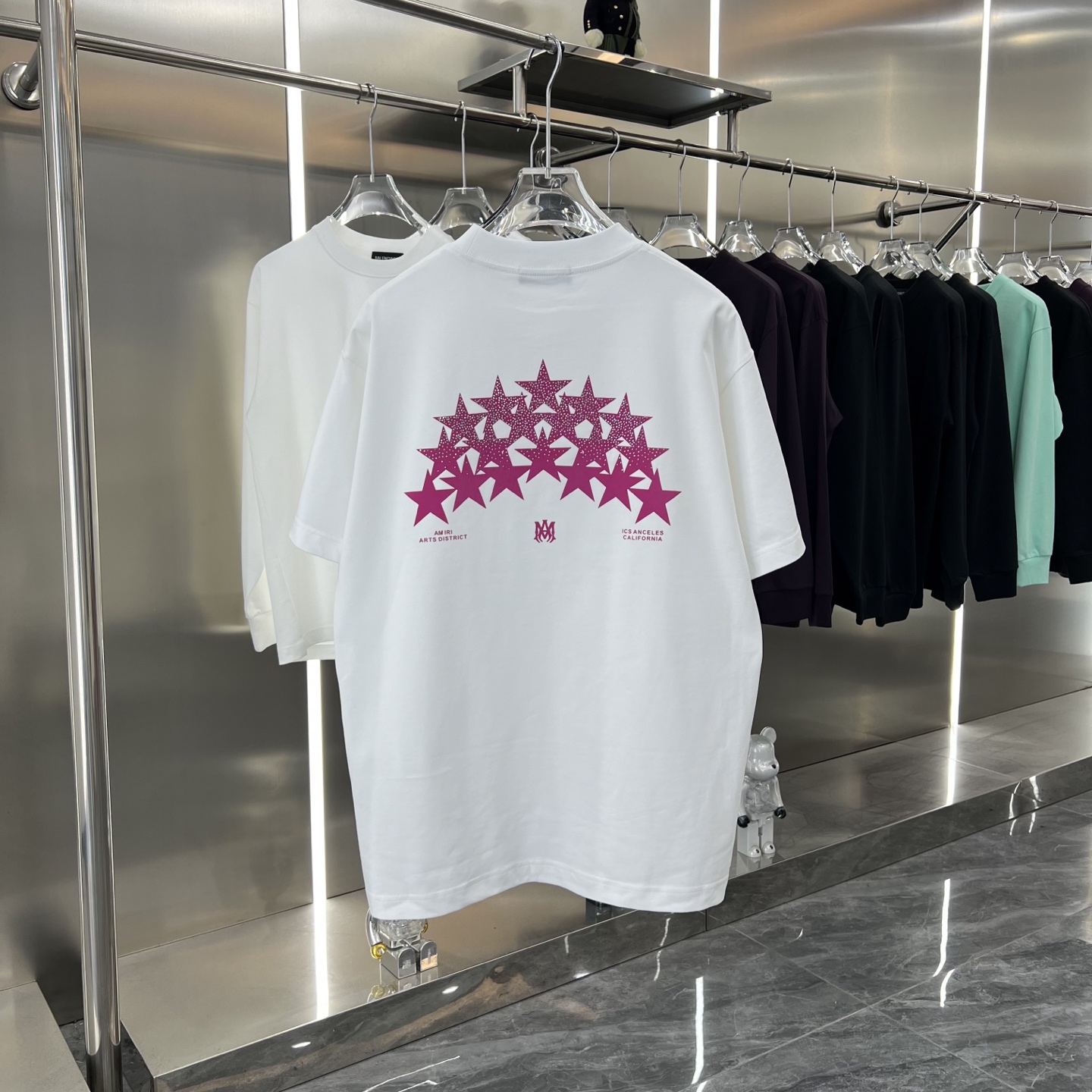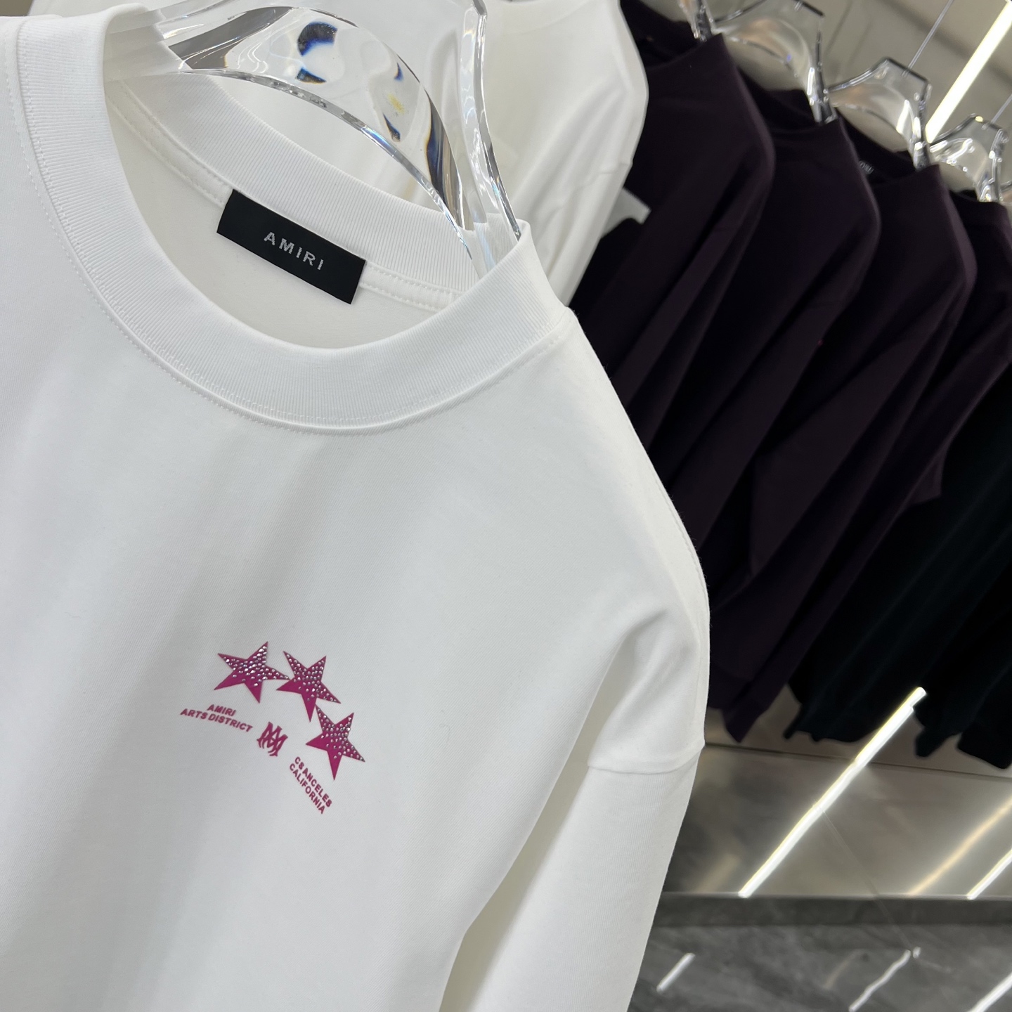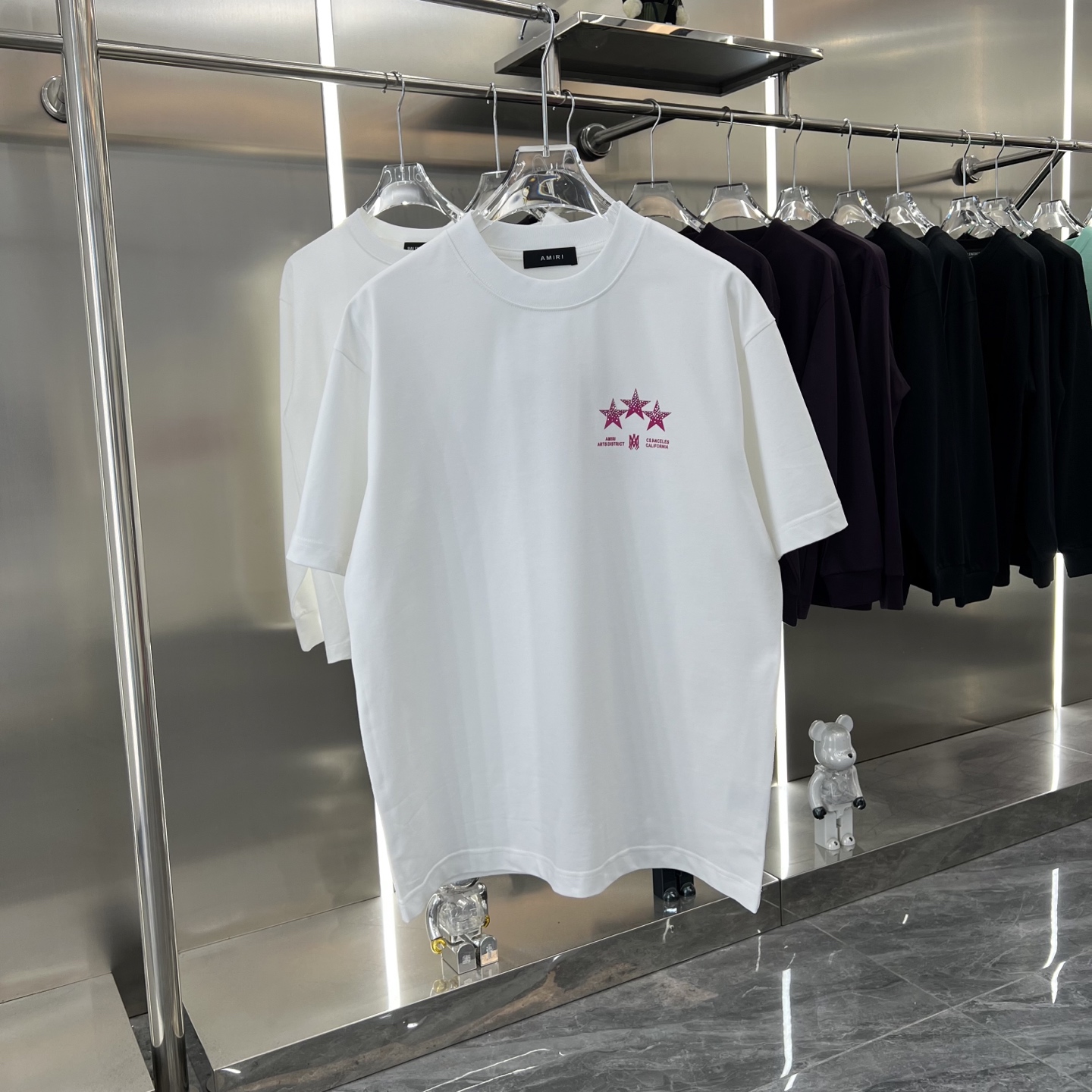 这款衣服是AAAAA 1:1 质量 (非常棒). 使用了和原版一模一样的材料. 商标部分也保持了和AMIRI一样. 图片拍摄是实物衣服拍摄, 您所收到的实物保证和我们图片一模一样.