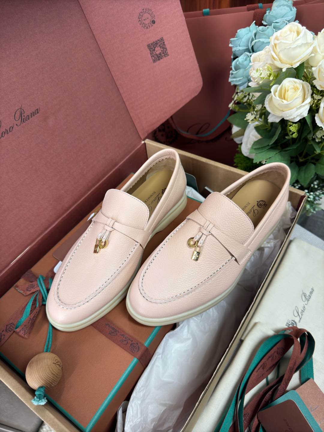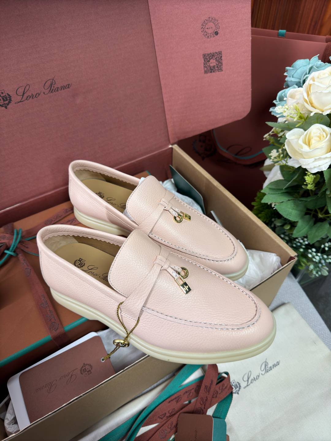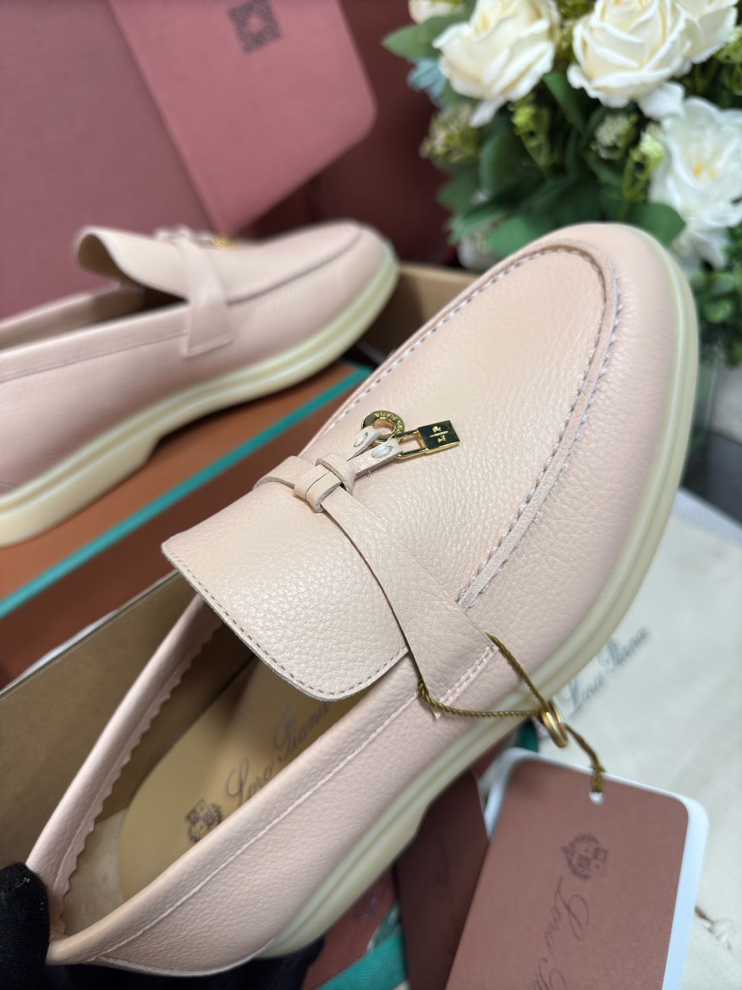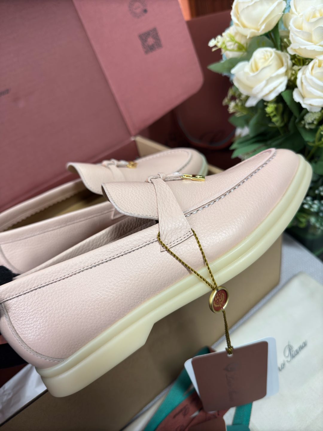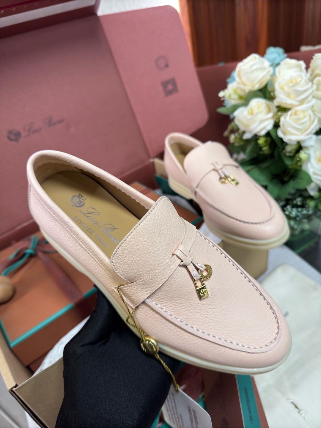 这款鞋子是AAAAA 1:1 质量 (非常棒). 使用了和原版一模一样的材料. 商标部分也保持了和洛罗皮亚纳/Loro Piana一样. 图片拍摄是实物鞋子拍摄, 您所收到的实物保证和我们图片一模一样.