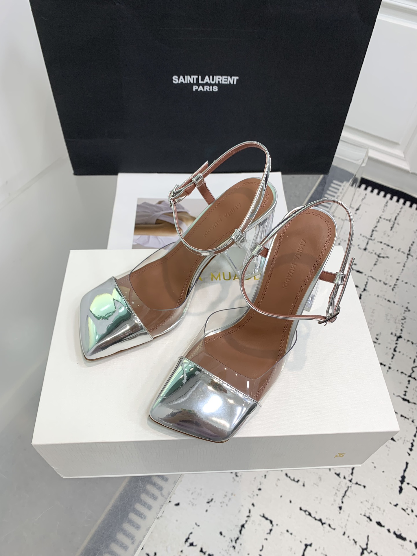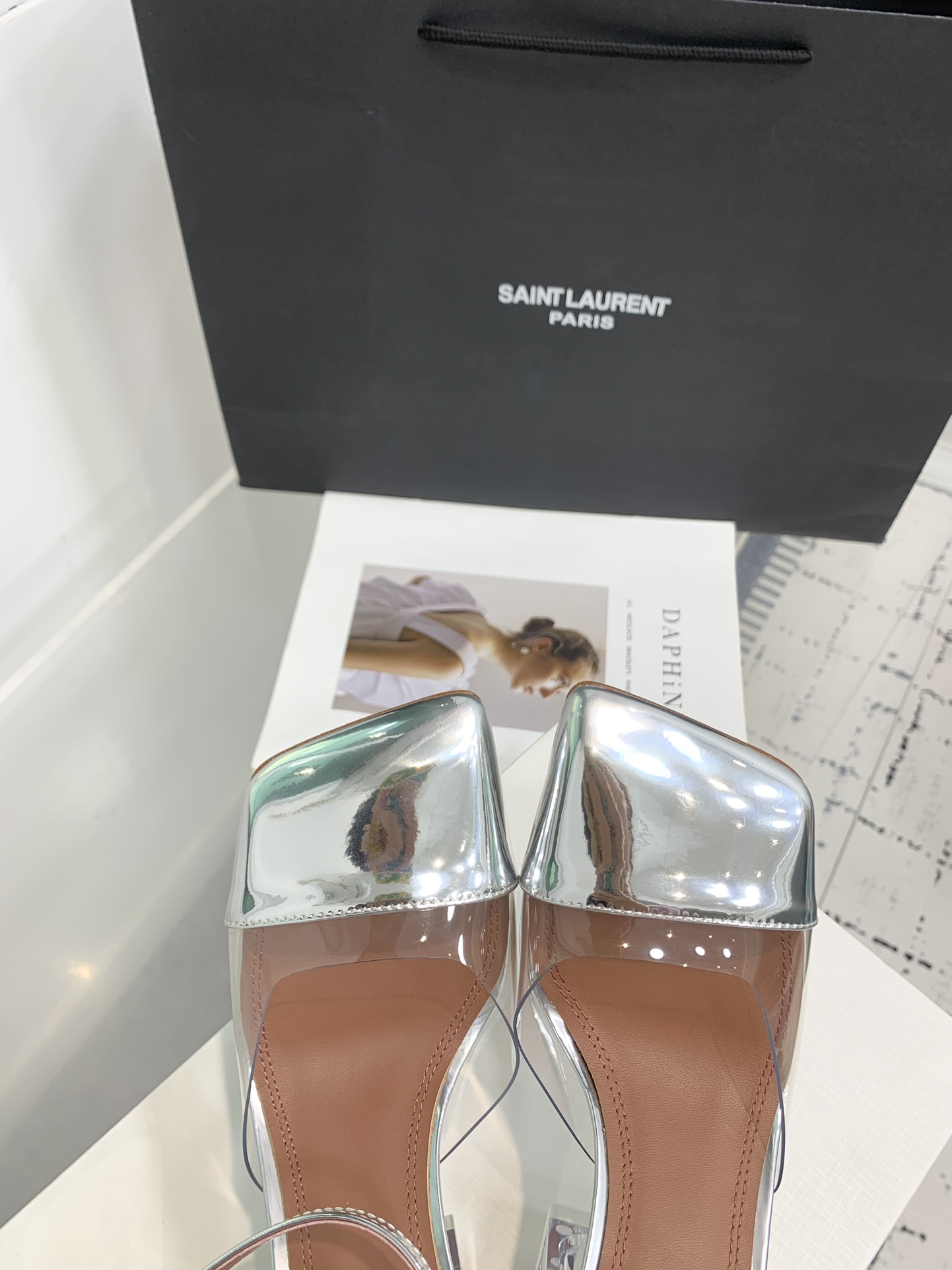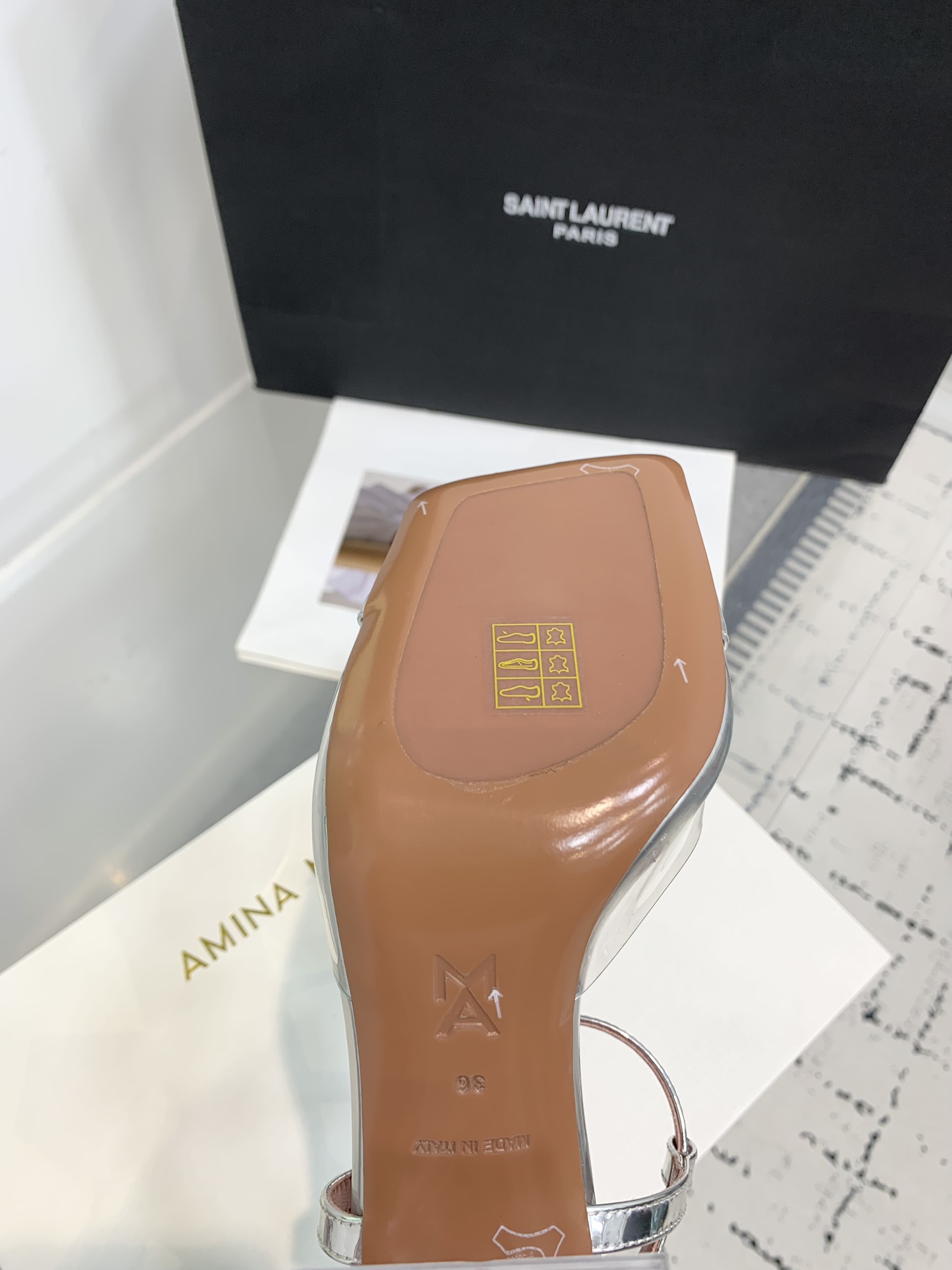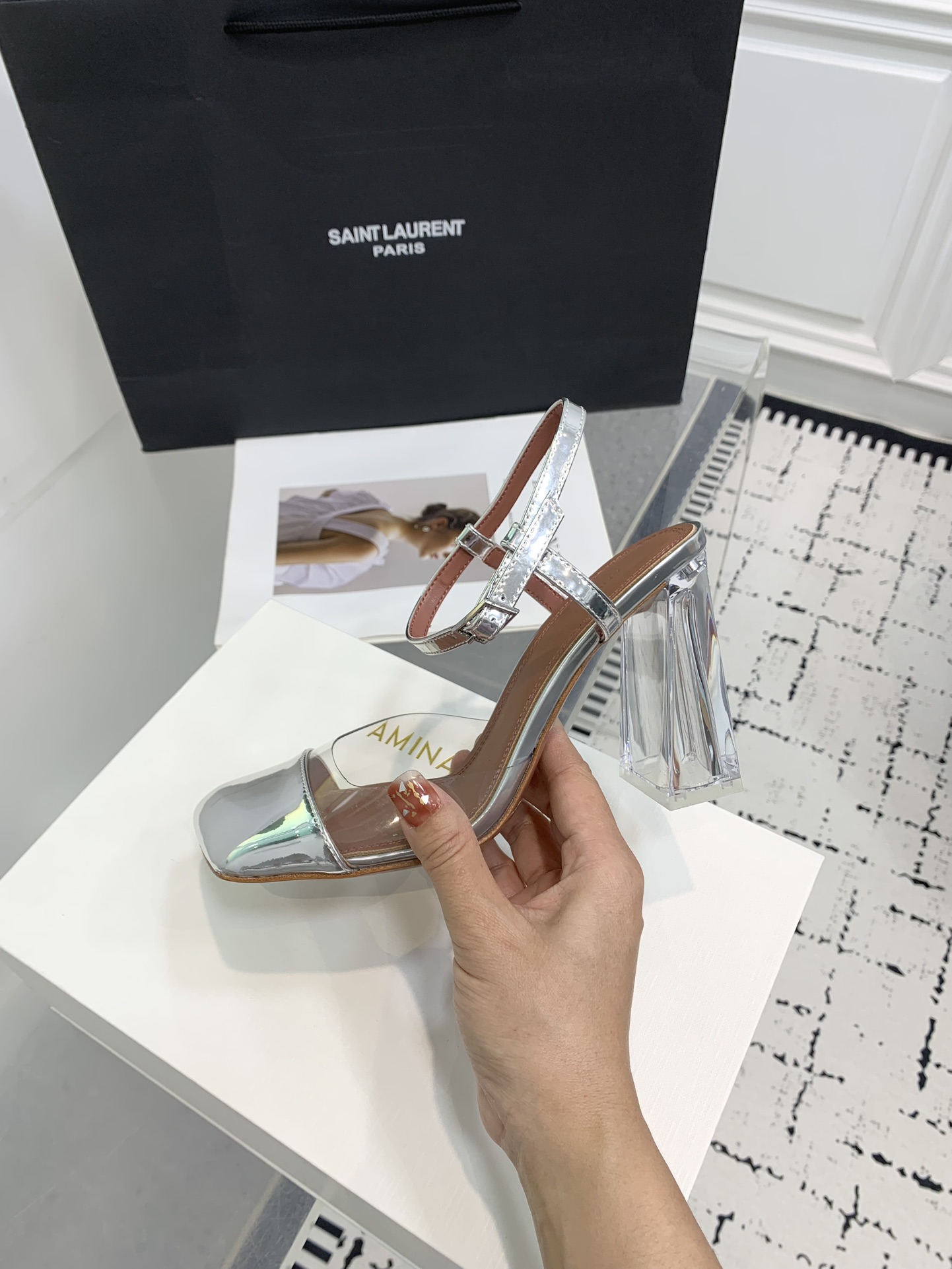 这款鞋子是AAAAA 1:1 质量 (非常棒). 使用了和原版一模一样的材料. 商标部分也保持了和Amina Muaddi一样. 图片拍摄是实物鞋子拍摄, 您所收到的实物保证和我们图片一模一样.