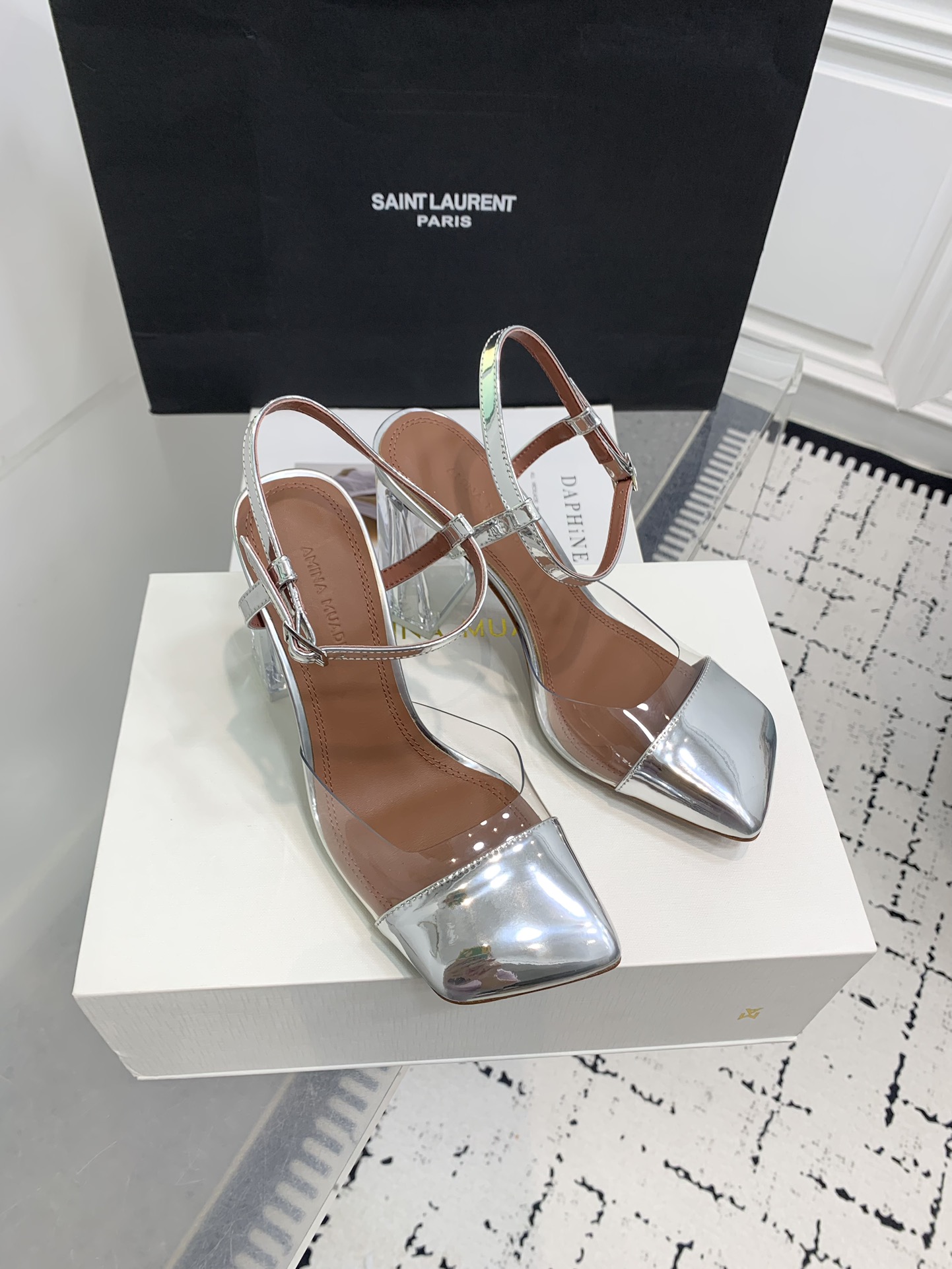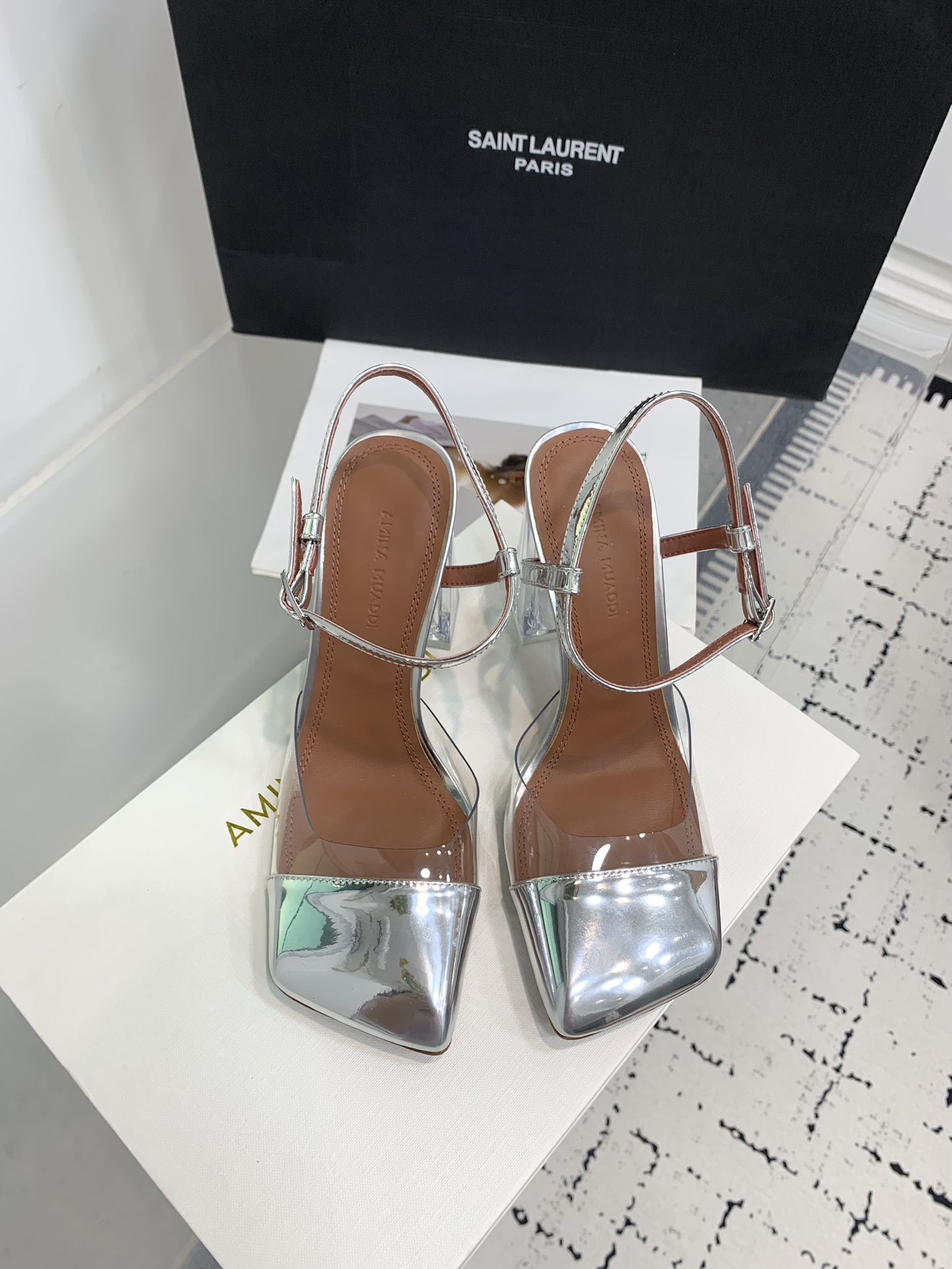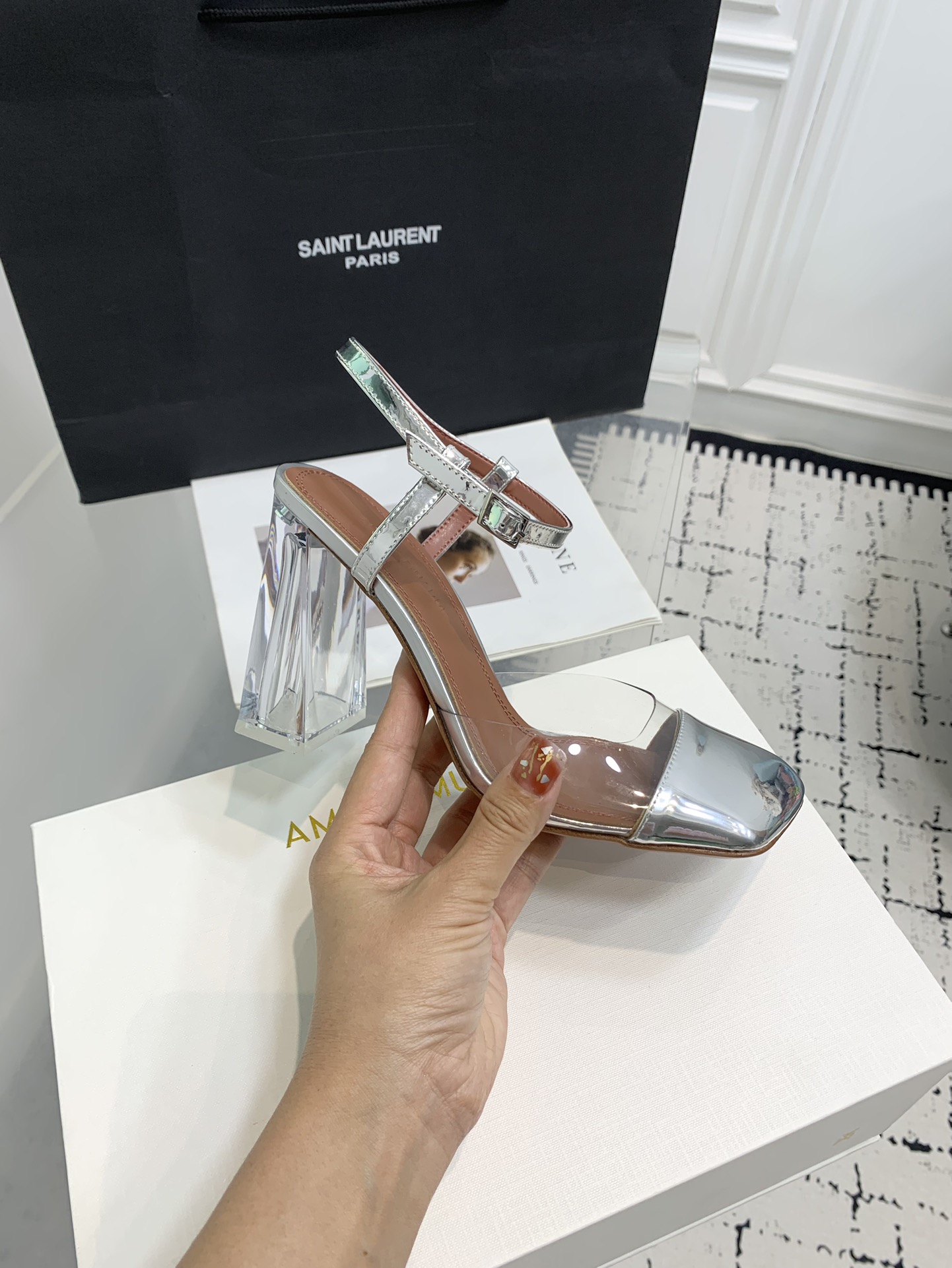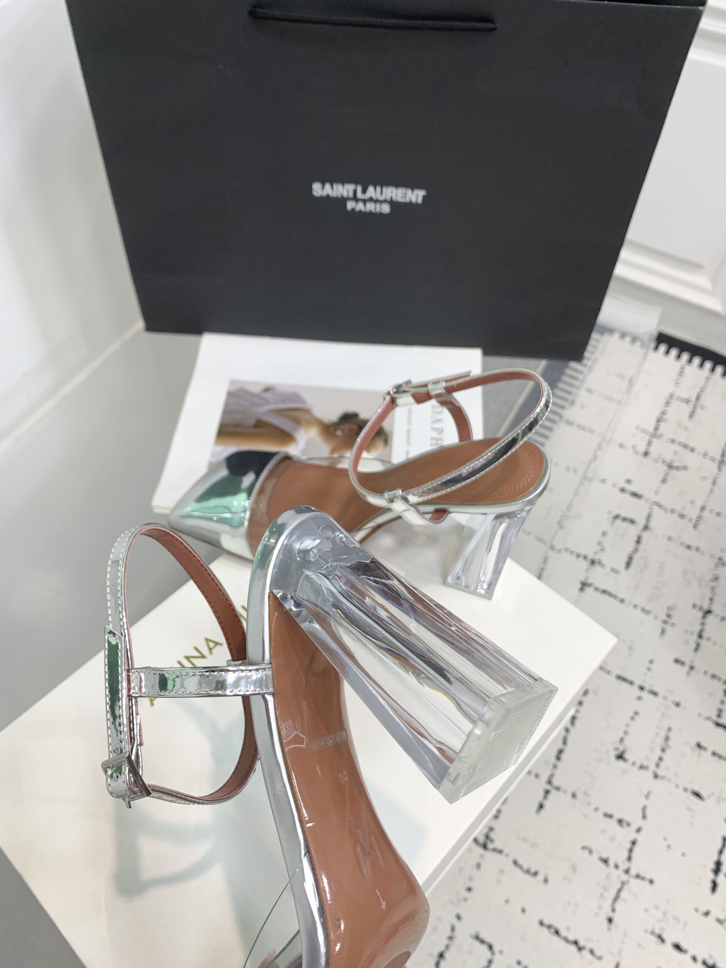 这款鞋子是AAAAA 1:1 质量 (非常棒). 使用了和原版一模一样的材料. 商标部分也保持了和Amina Muaddi一样. 图片拍摄是实物鞋子拍摄, 您所收到的实物保证和我们图片一模一样.