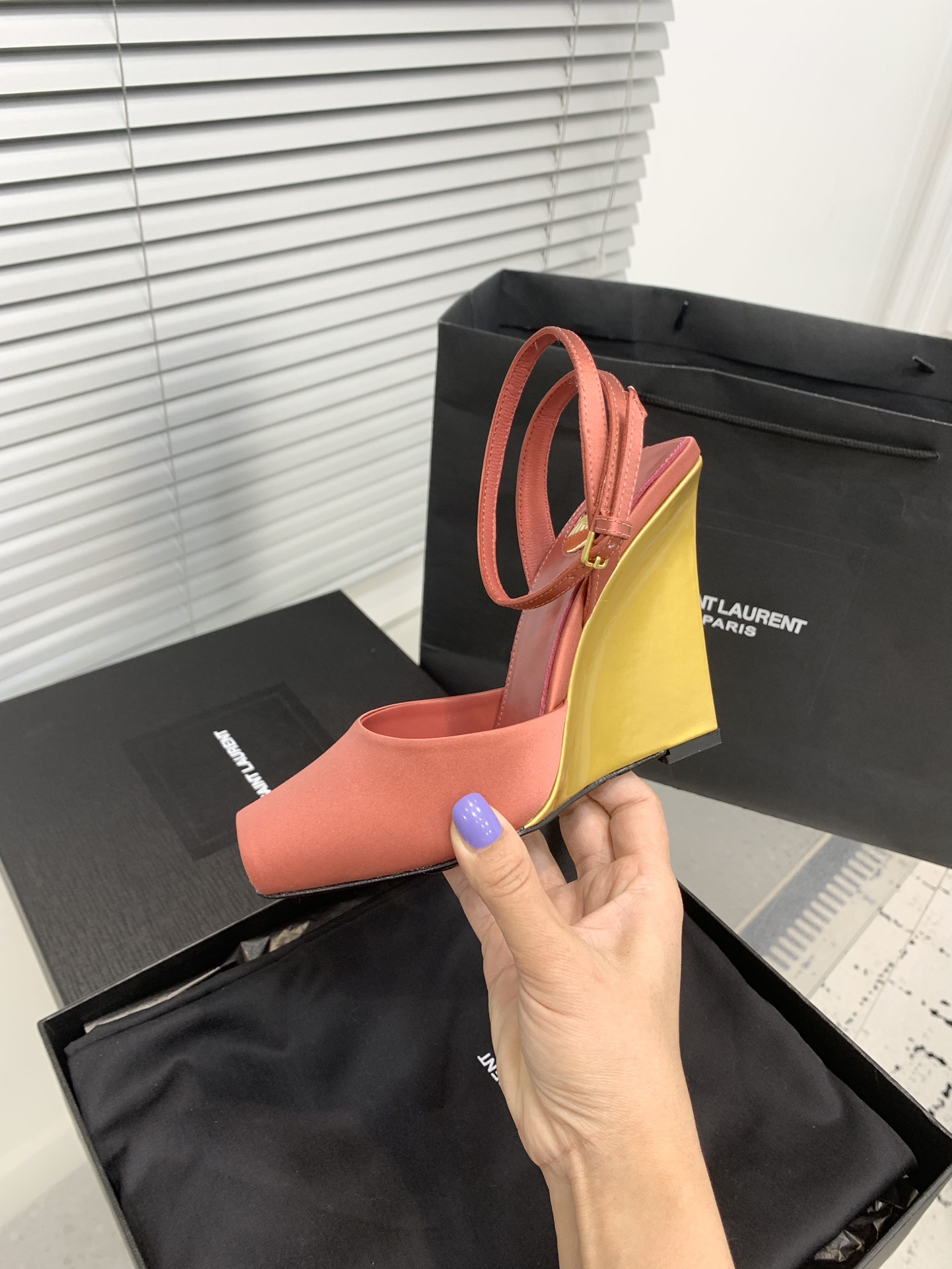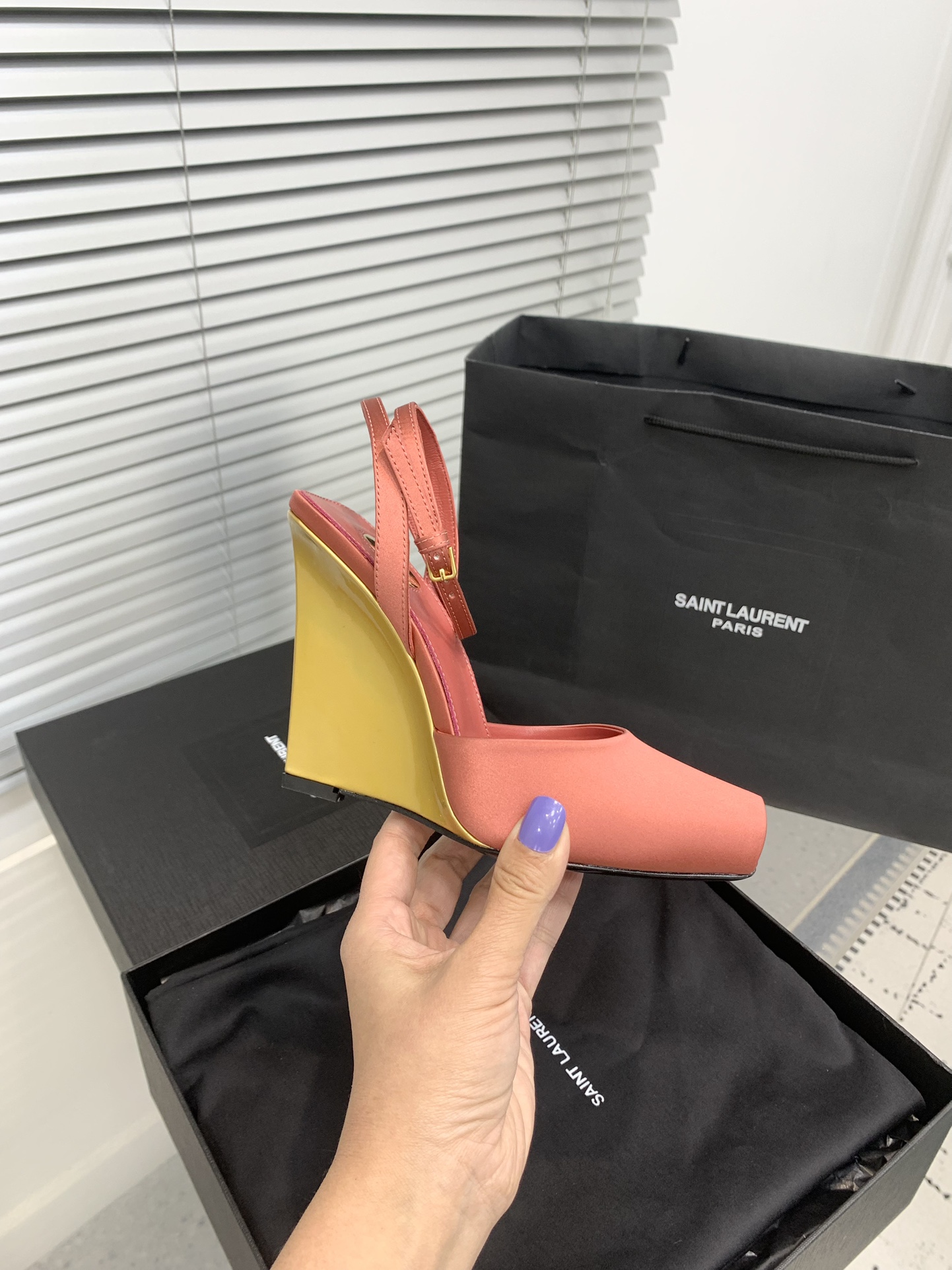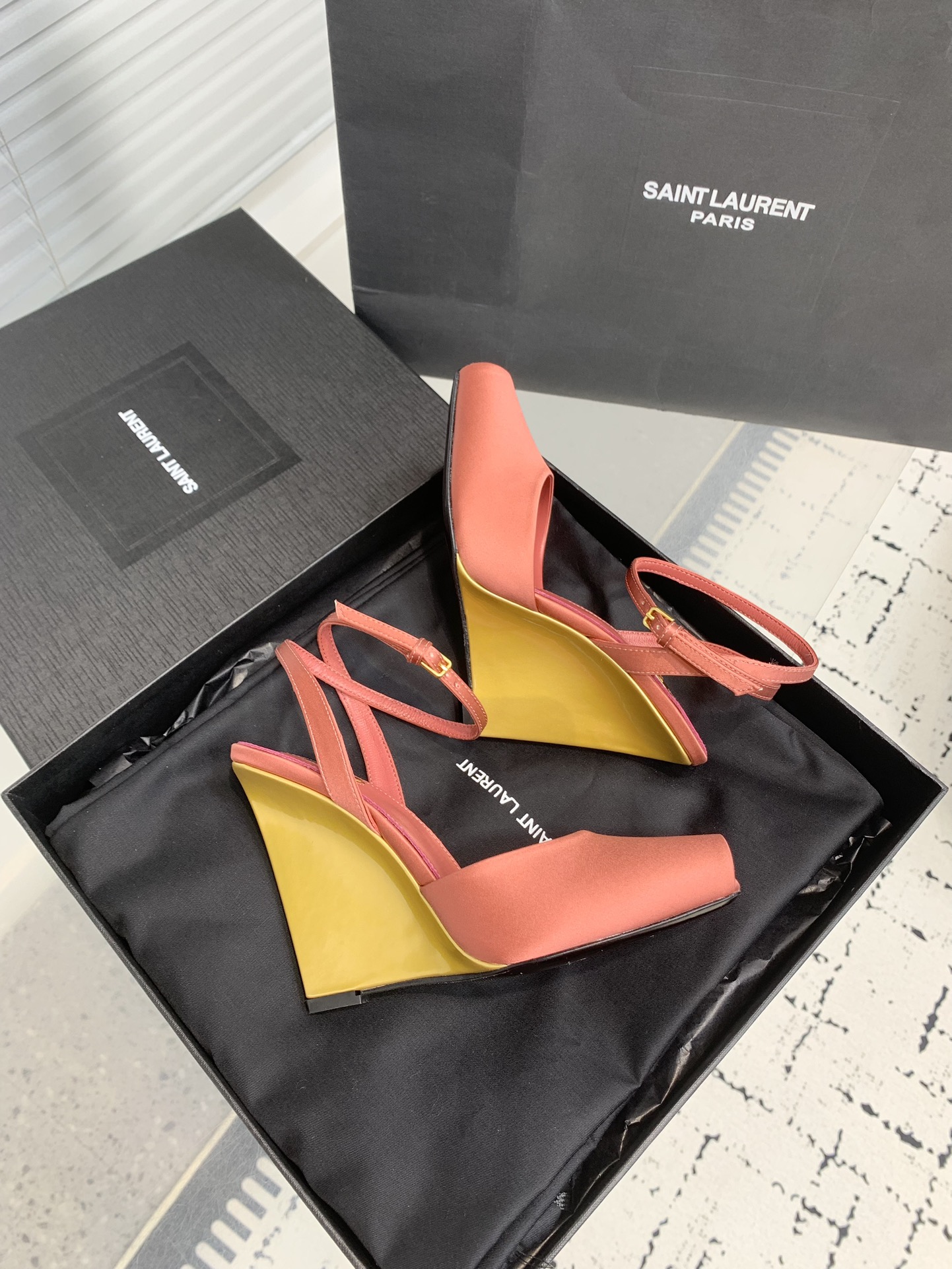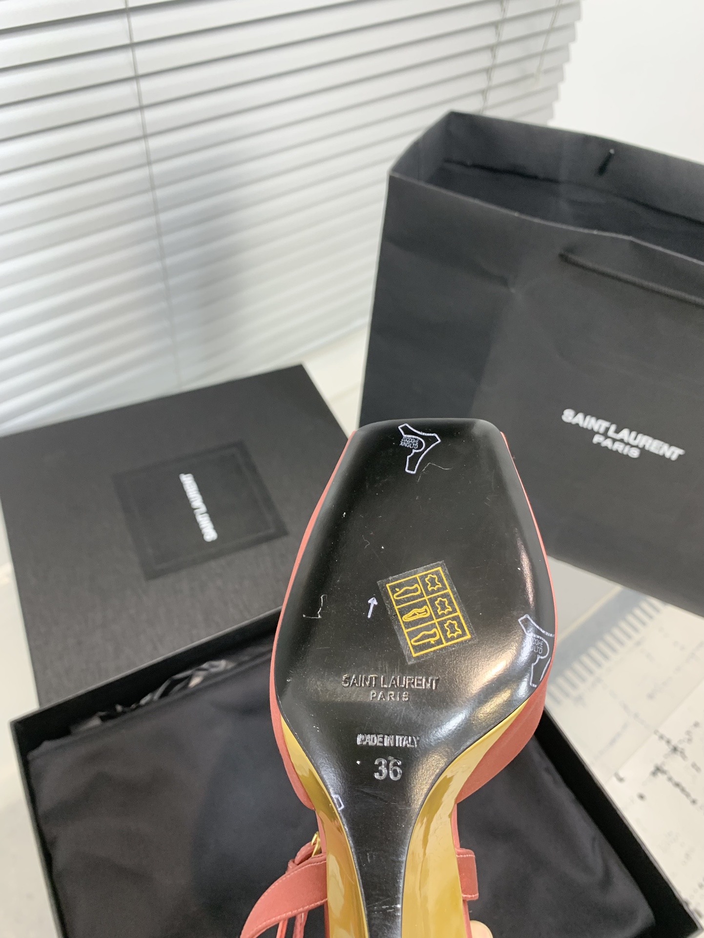 这款鞋子是AAAAA 1:1 质量 (非常棒). 使用了和原版一模一样的材料. 商标部分也保持了和圣罗兰/Saint Laurent一样. 图片拍摄是实物鞋子拍摄, 您所收到的实物保证和我们图片一模一样.