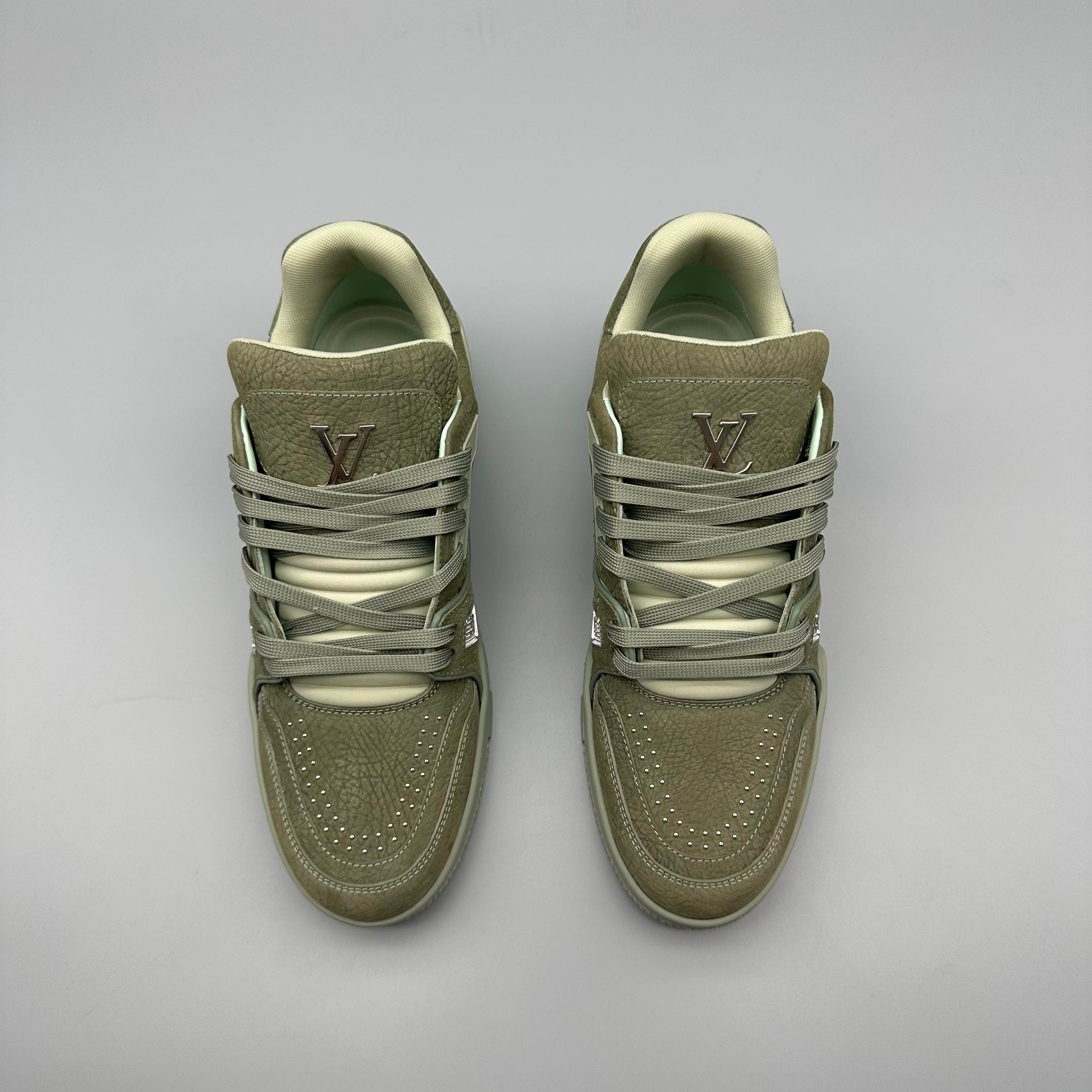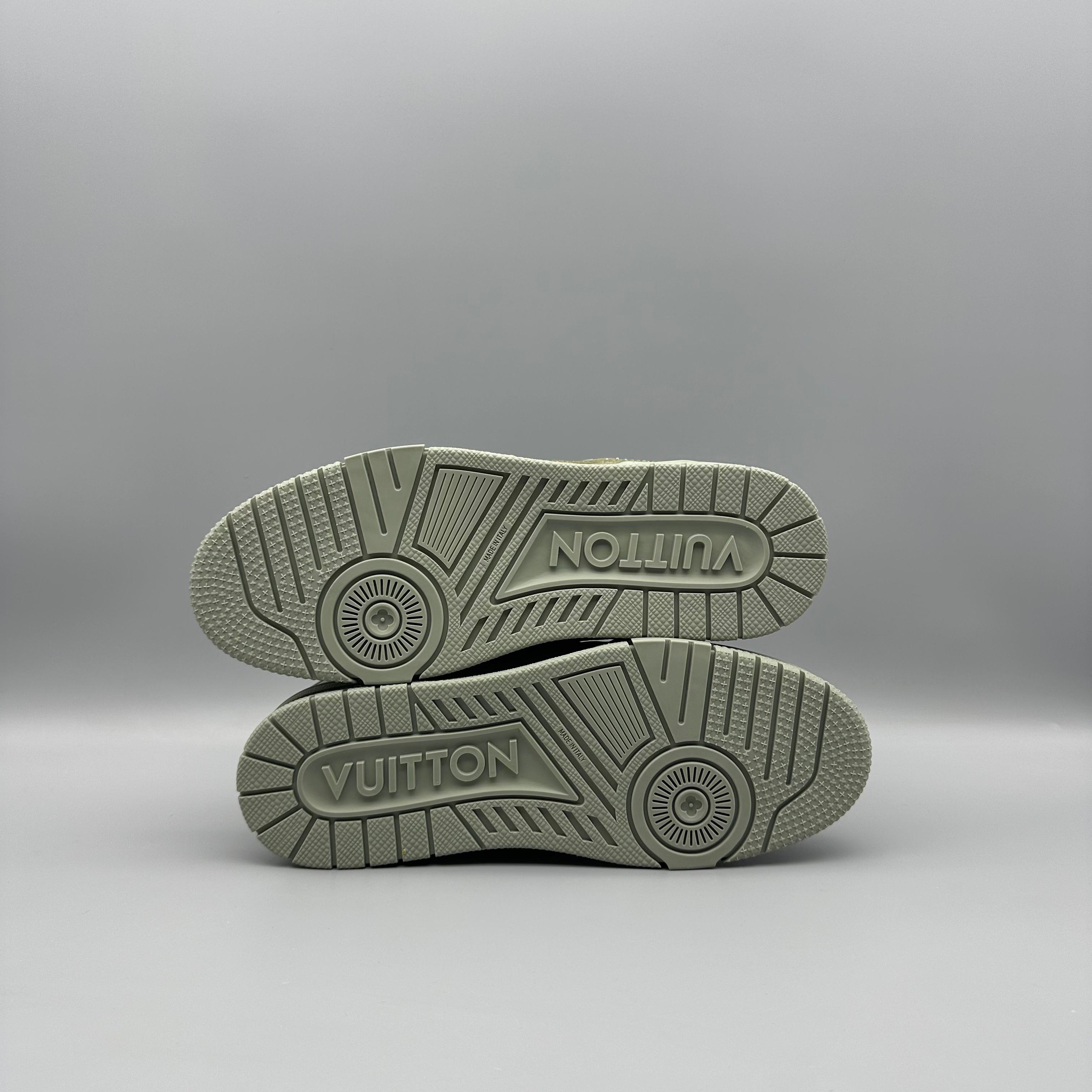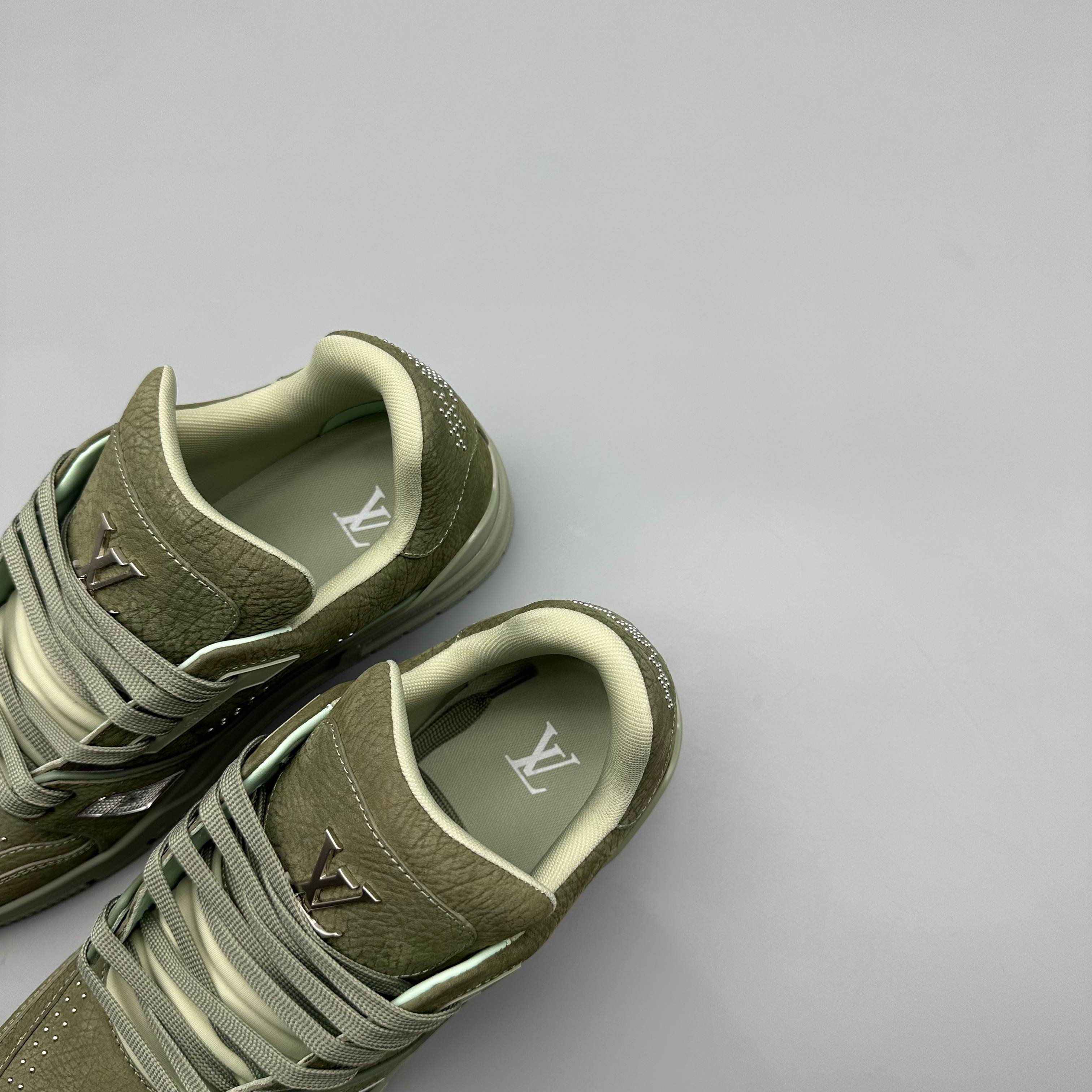 这款鞋子是AAAAA 1:1 质量 (非常棒). 使用了和原版一模一样的材料. 商标部分也保持了和路易威登/Louis Vuitton一样. 图片拍摄是实物鞋子拍摄, 您所收到的实物保证和我们图片一模一样.