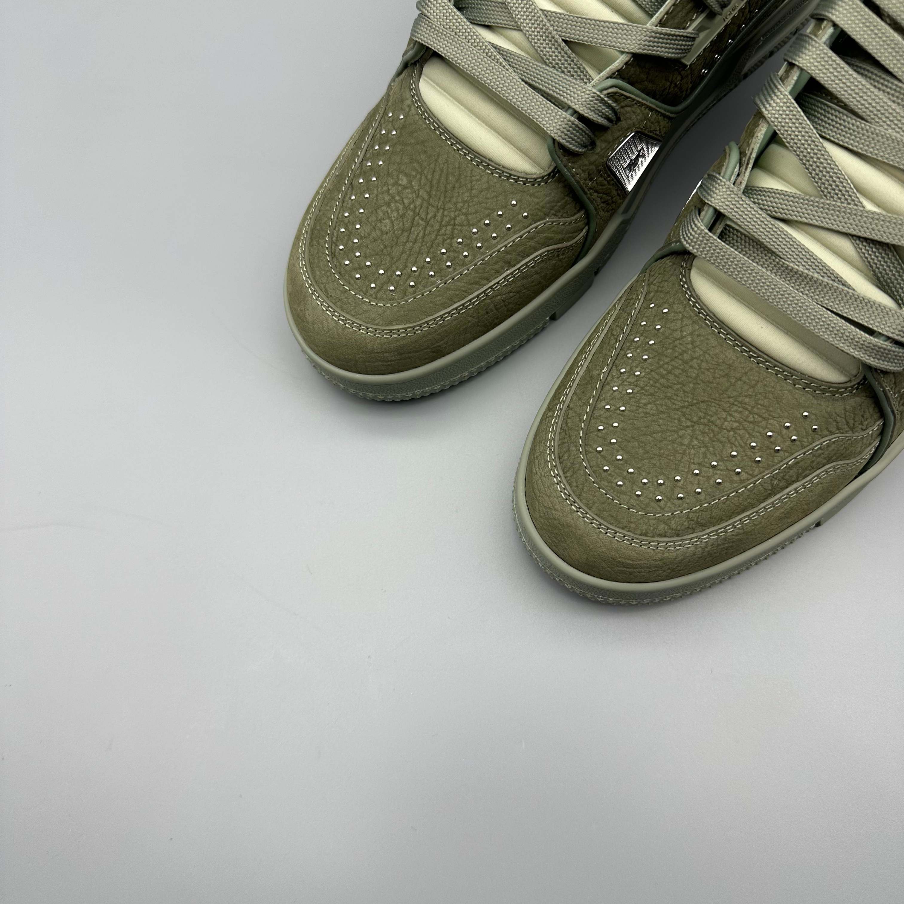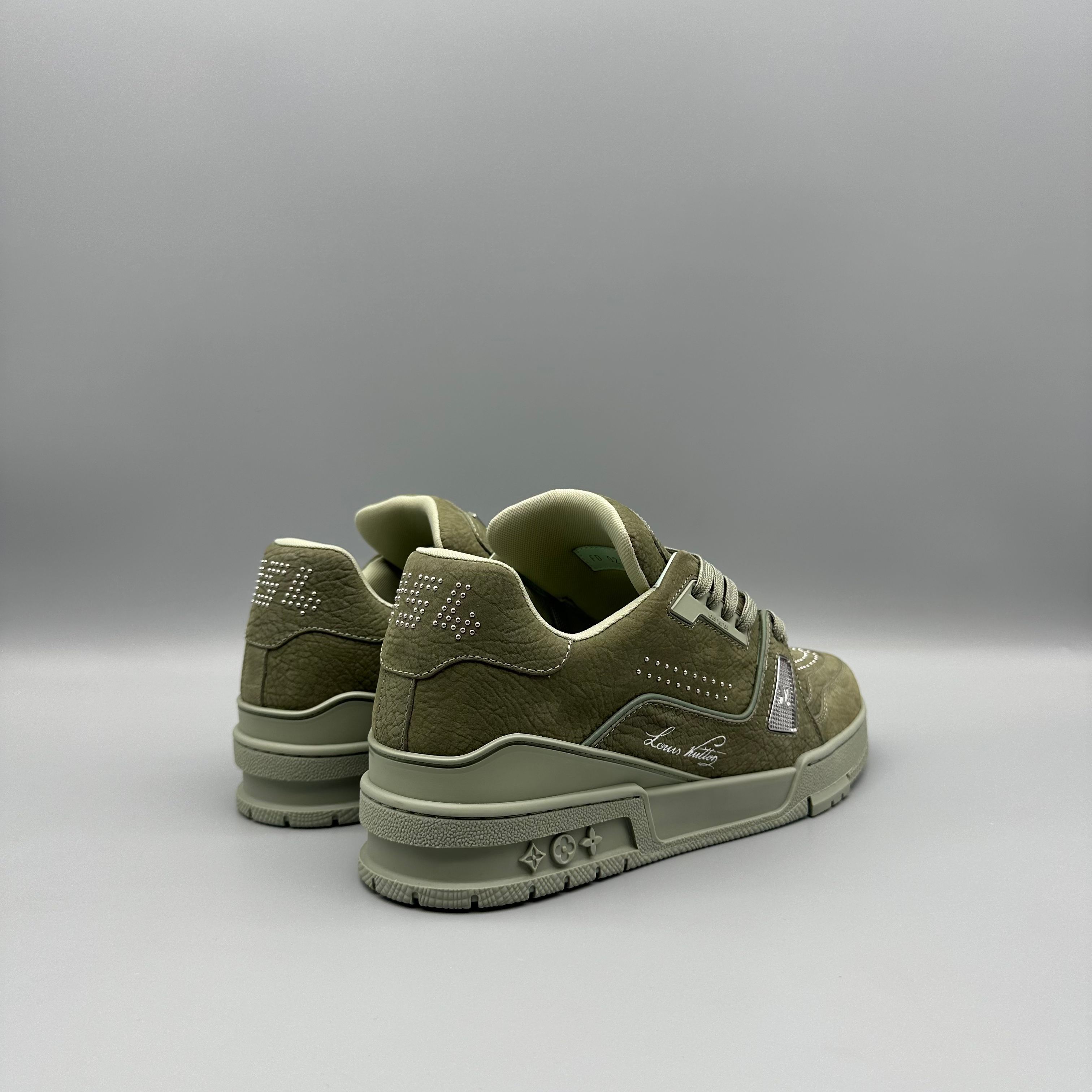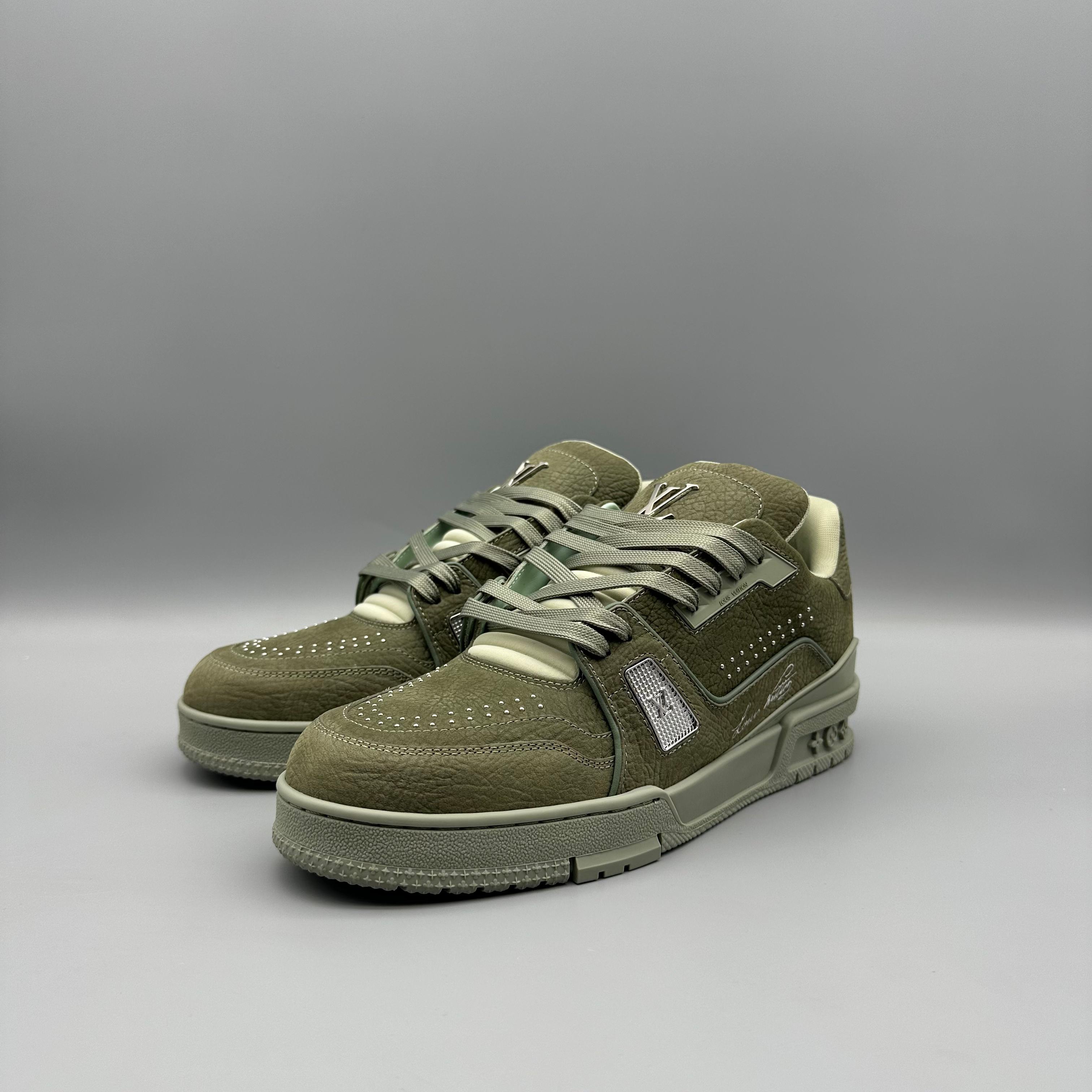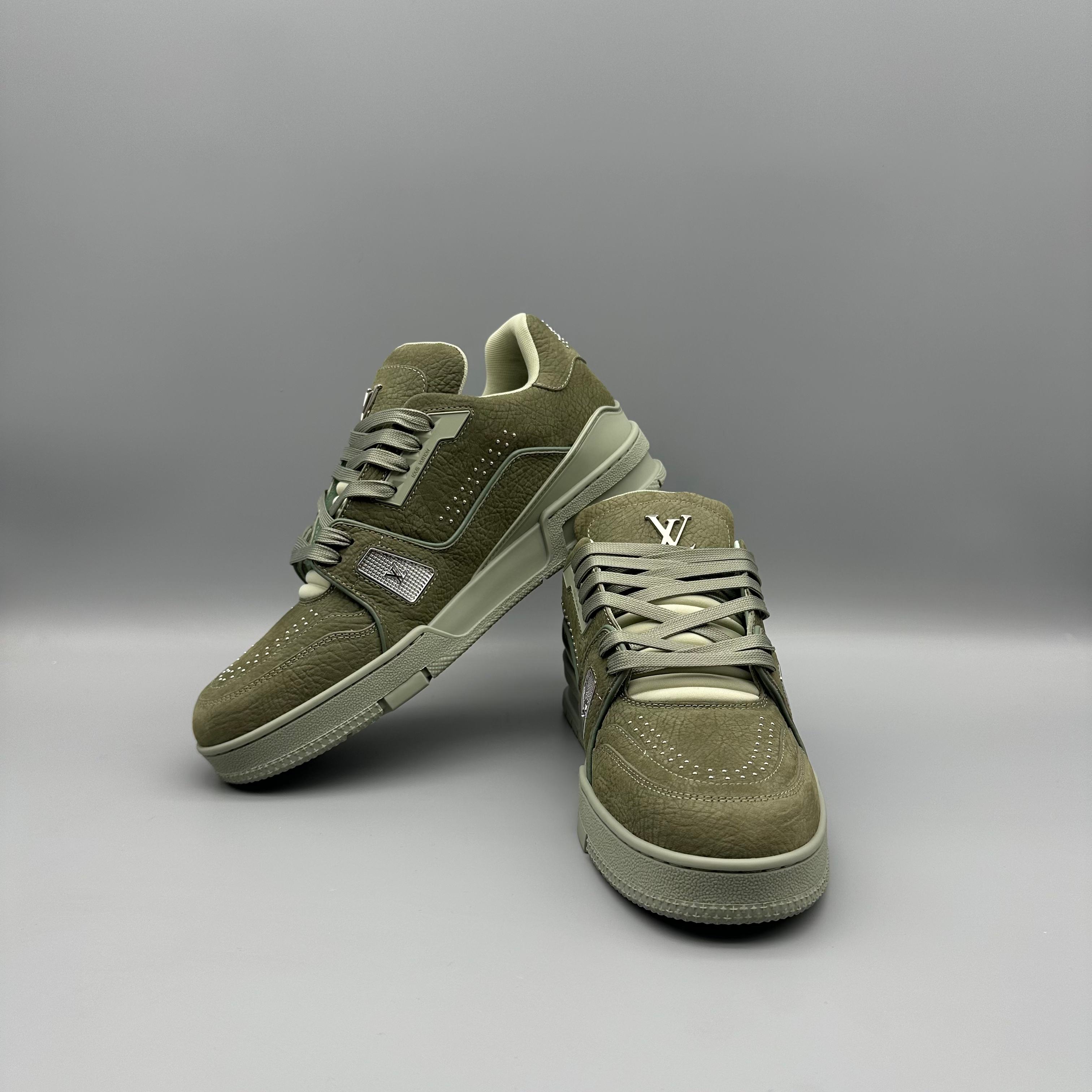 这款鞋子是AAAAA 1:1 质量 (非常棒). 使用了和原版一模一样的材料. 商标部分也保持了和路易威登/Louis Vuitton一样. 图片拍摄是实物鞋子拍摄, 您所收到的实物保证和我们图片一模一样.