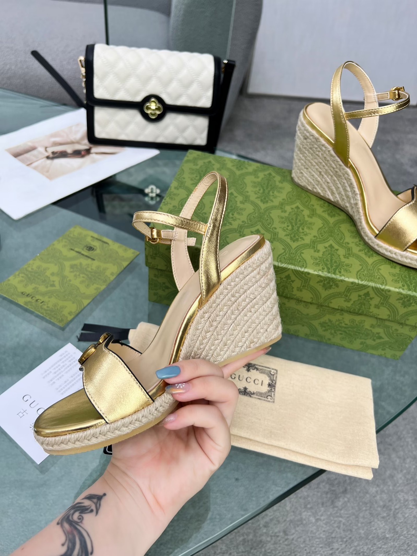 这款鞋子是AAAAA 1:1 质量 (非常棒). 使用了和原版一模一样的材料. 商标部分也保持了和古奇/Gucci一样. 图片拍摄是实物鞋子拍摄, 您所收到的实物保证和我们图片一模一样.