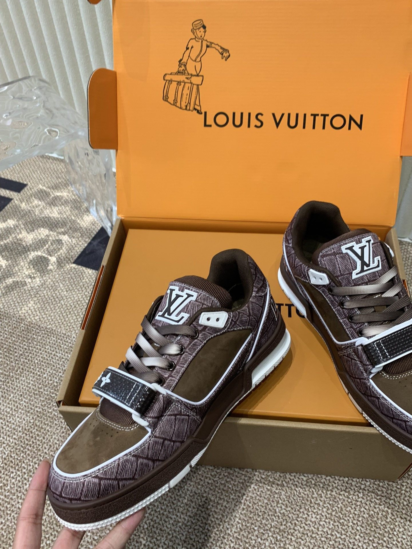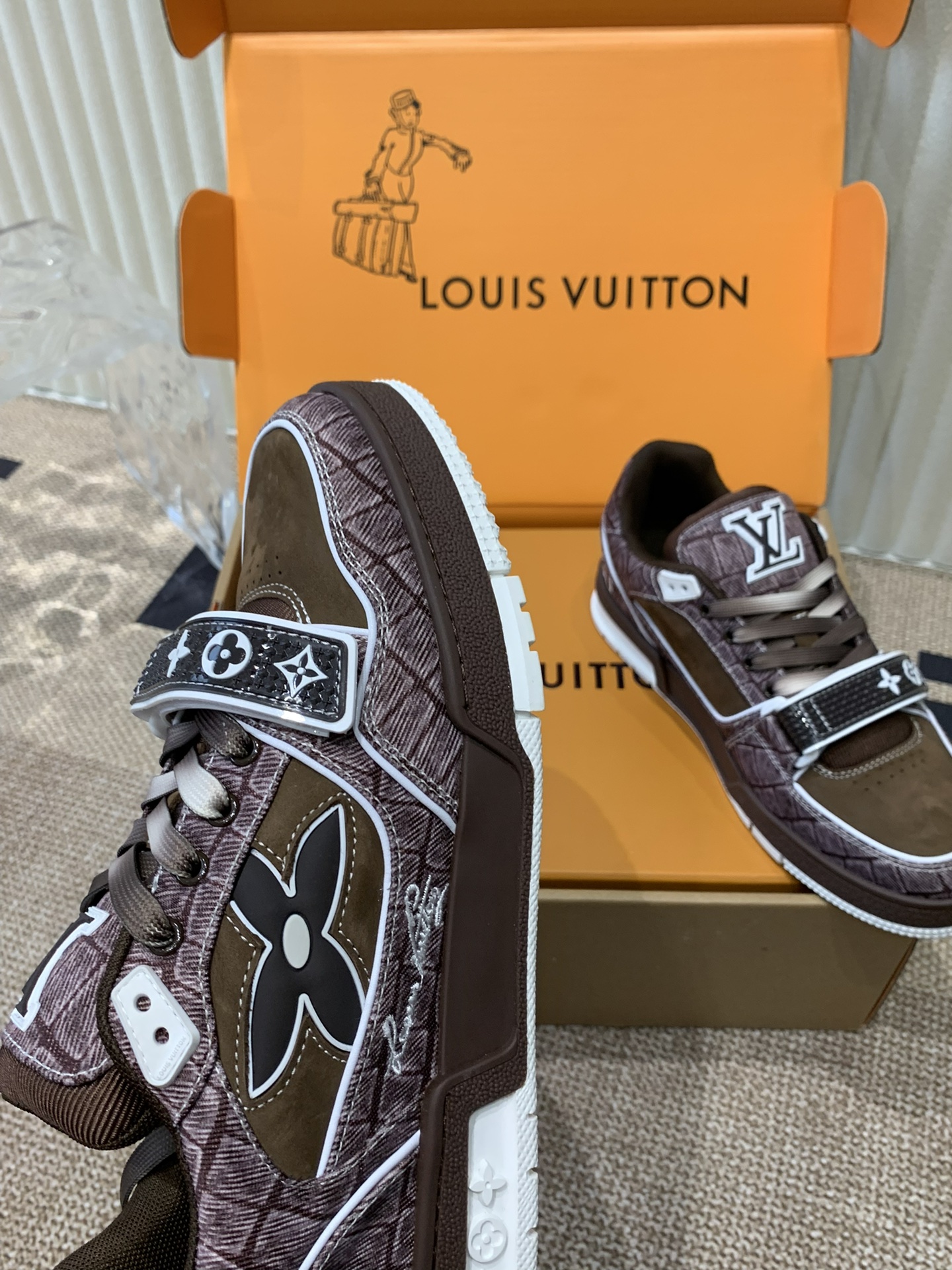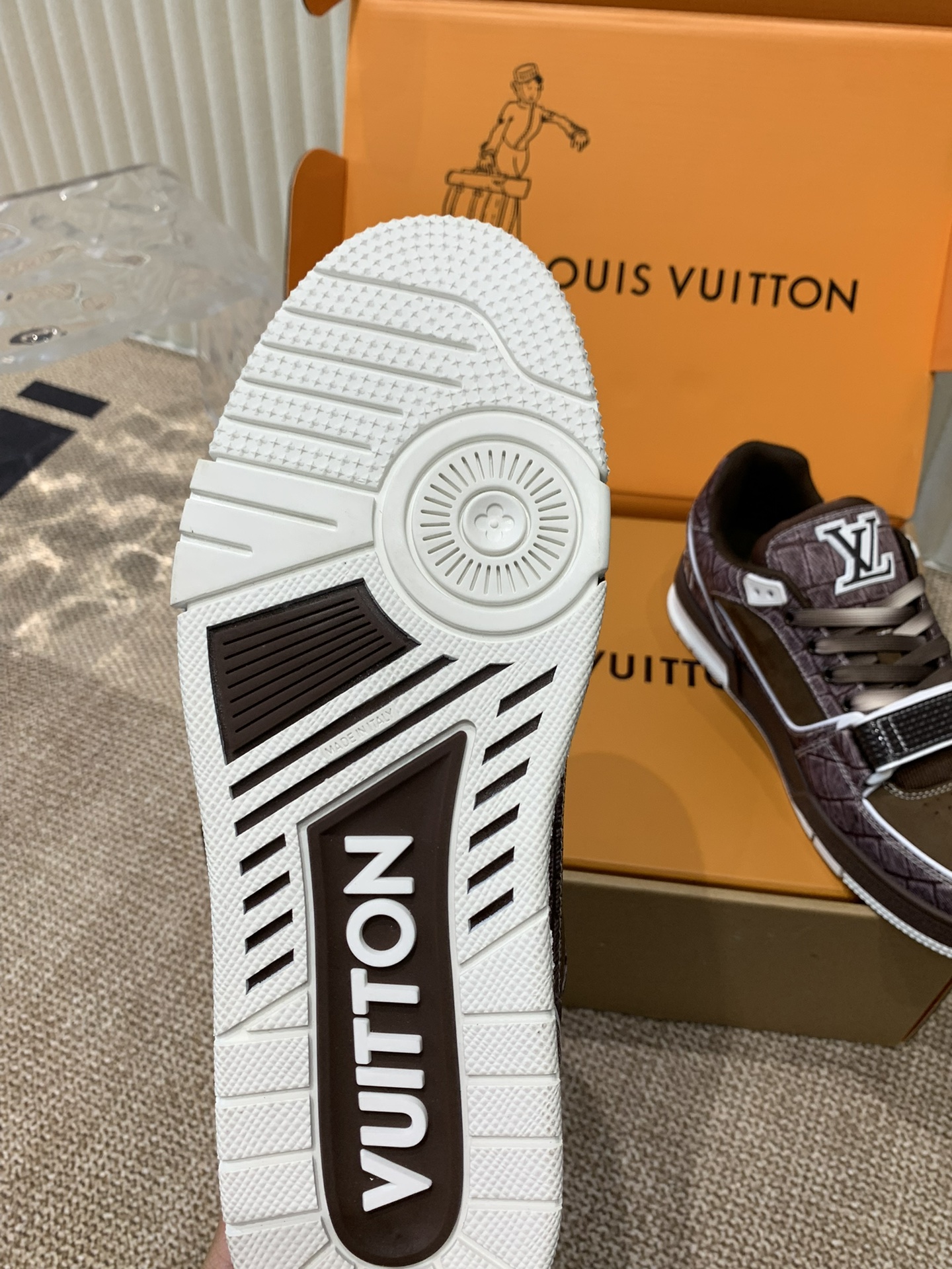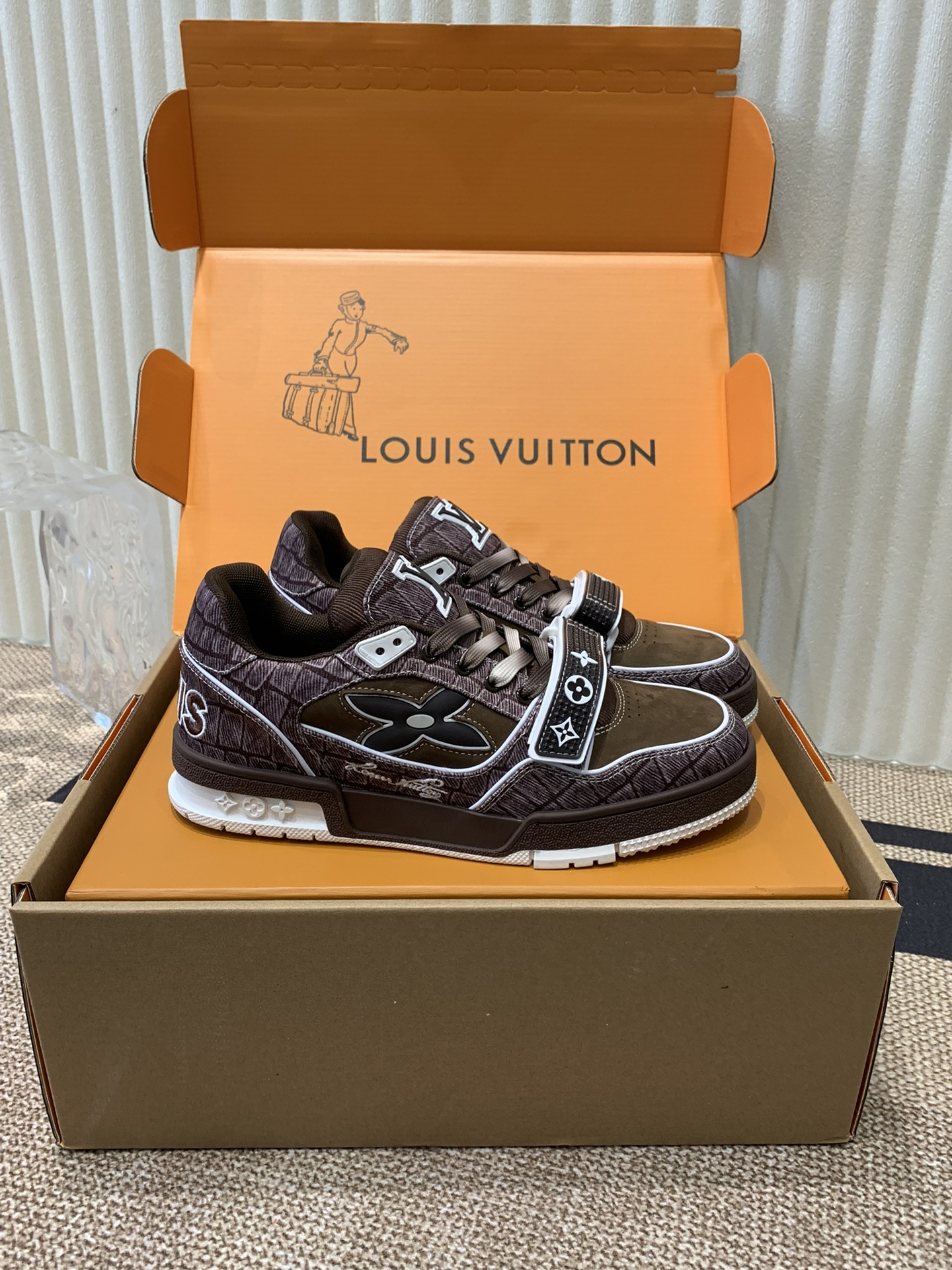 这款鞋子是AAAAA 1:1 质量 (非常棒). 使用了和原版一模一样的材料. 商标部分也保持了和路易威登/Louis Vuitton一样. 图片拍摄是实物鞋子拍摄, 您所收到的实物保证和我们图片一模一样.