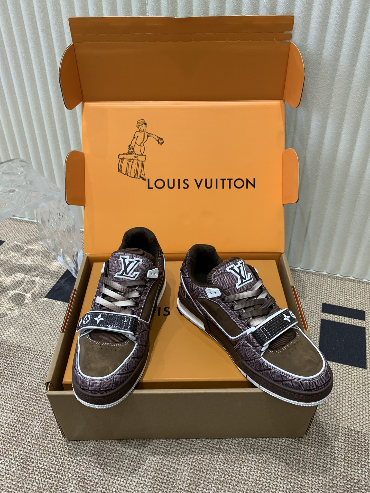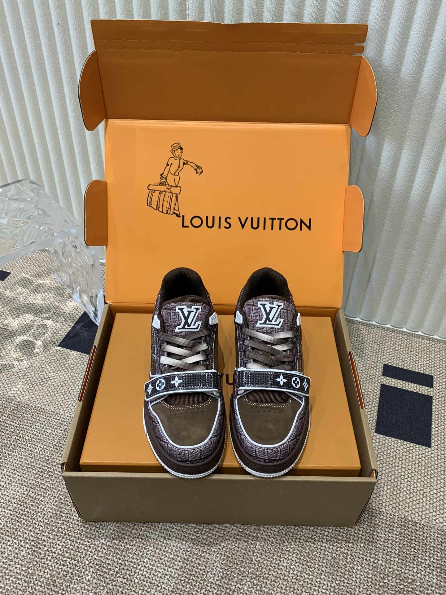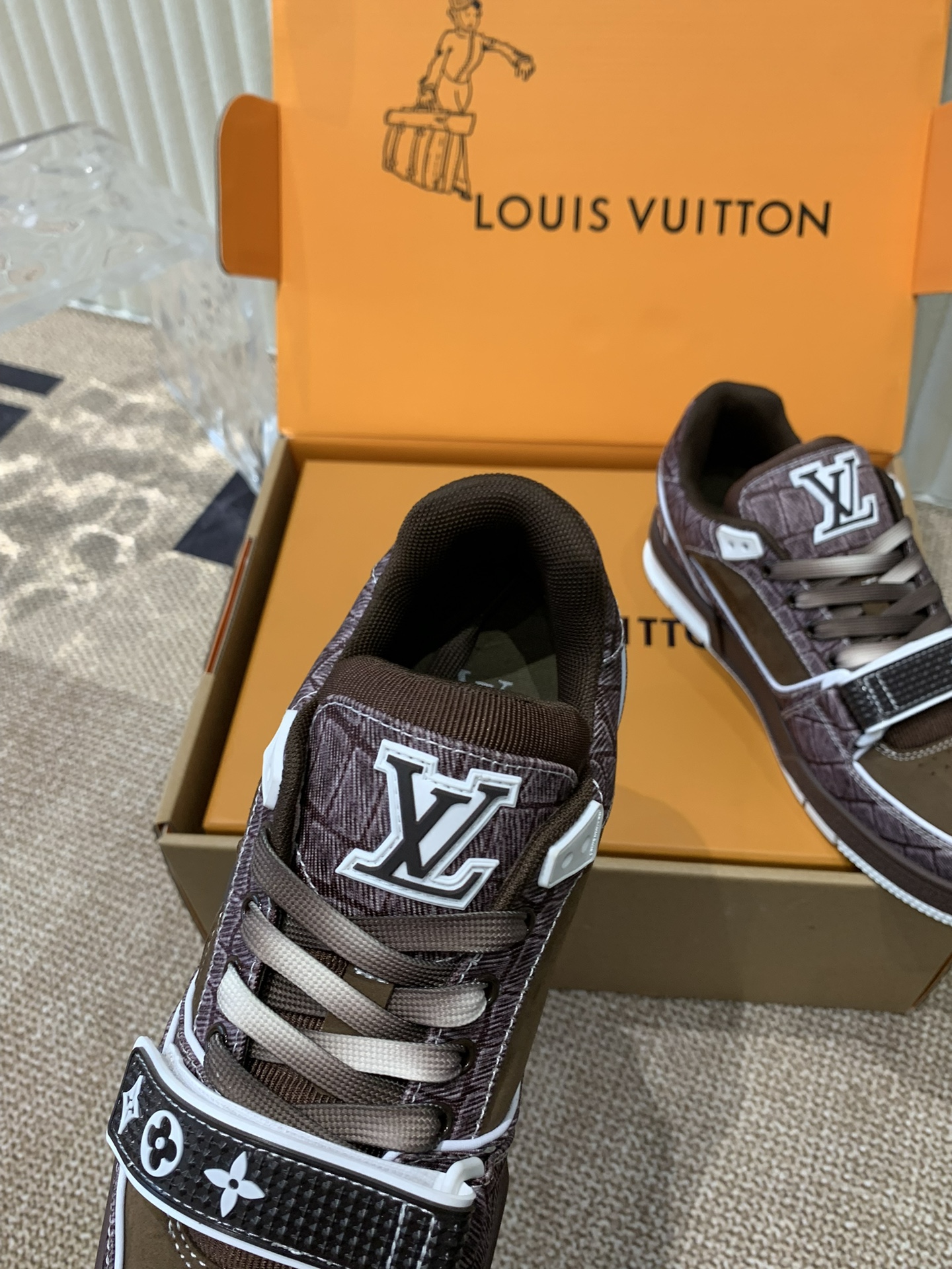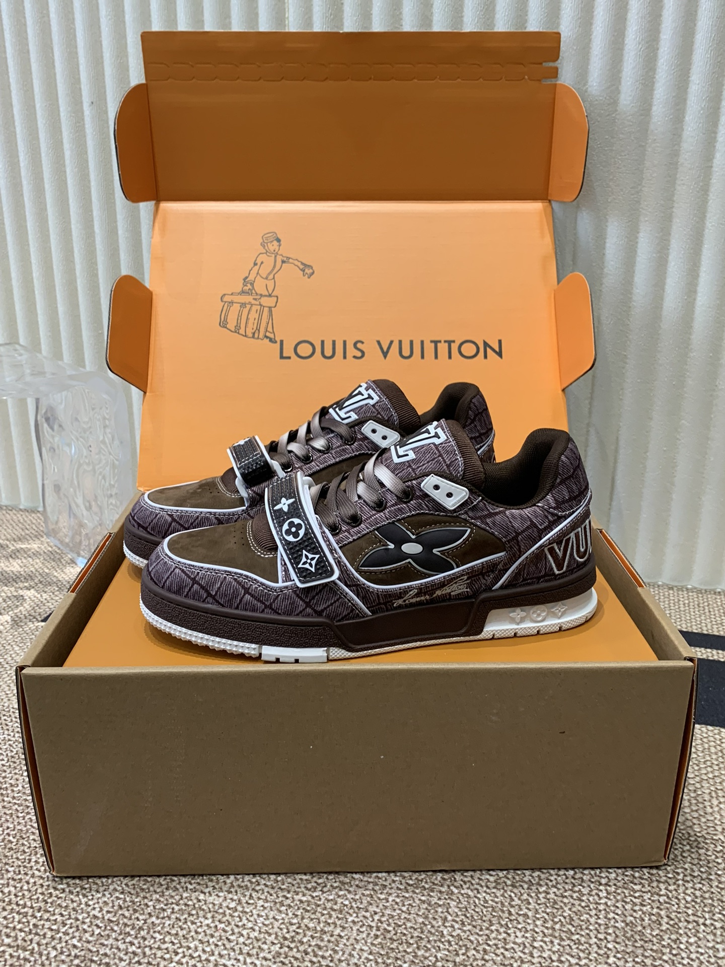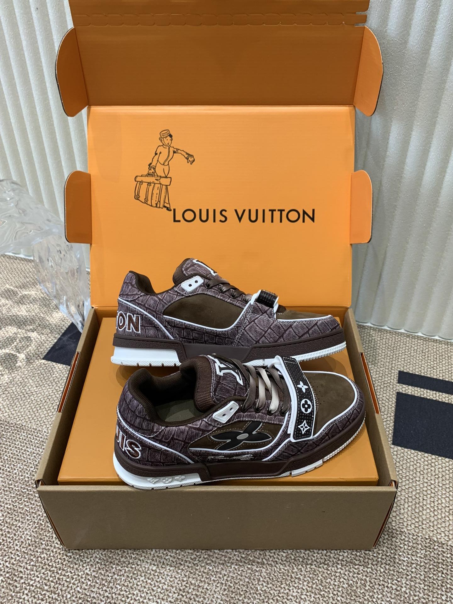 这款鞋子是AAAAA 1:1 质量 (非常棒). 使用了和原版一模一样的材料. 商标部分也保持了和路易威登/Louis Vuitton一样. 图片拍摄是实物鞋子拍摄, 您所收到的实物保证和我们图片一模一样.